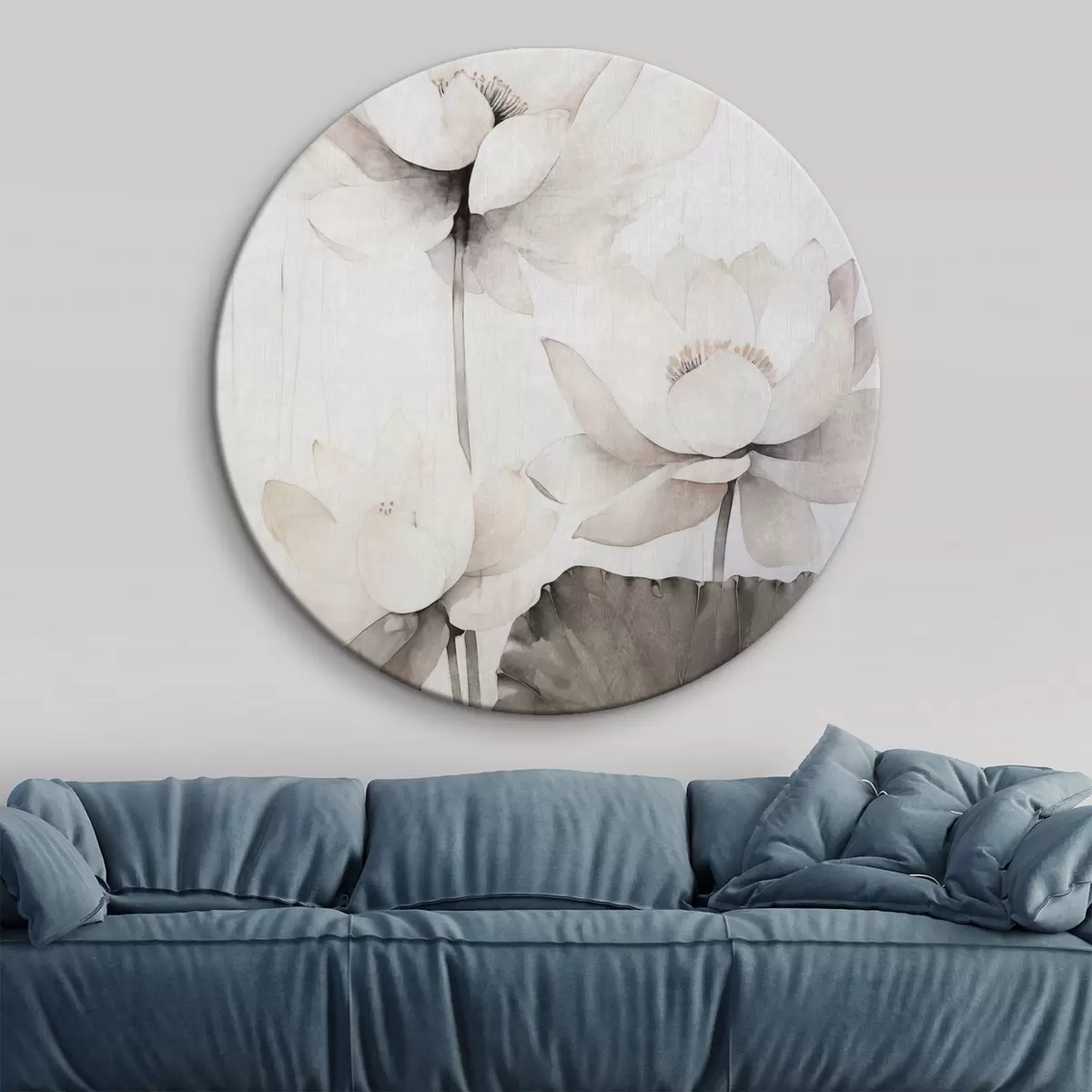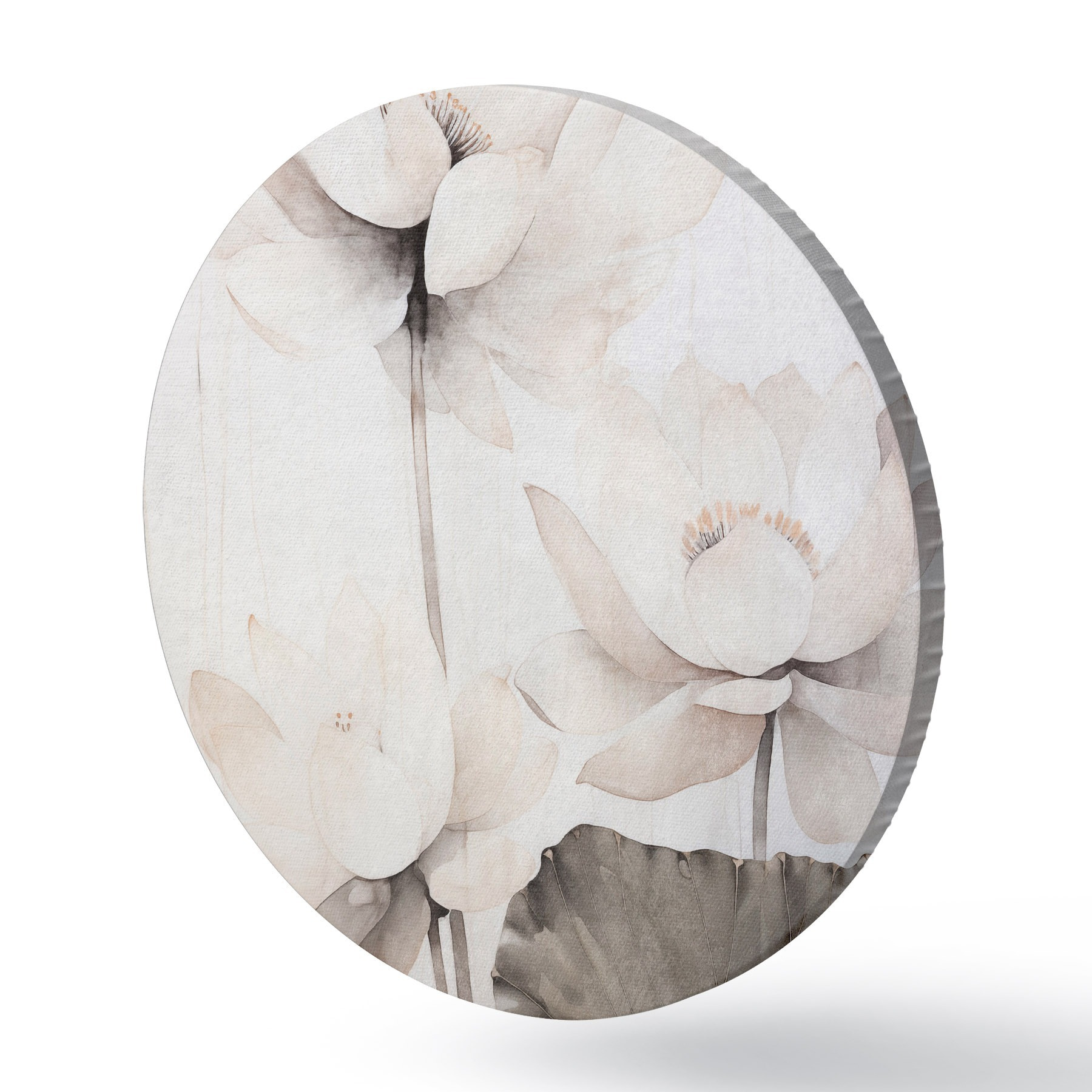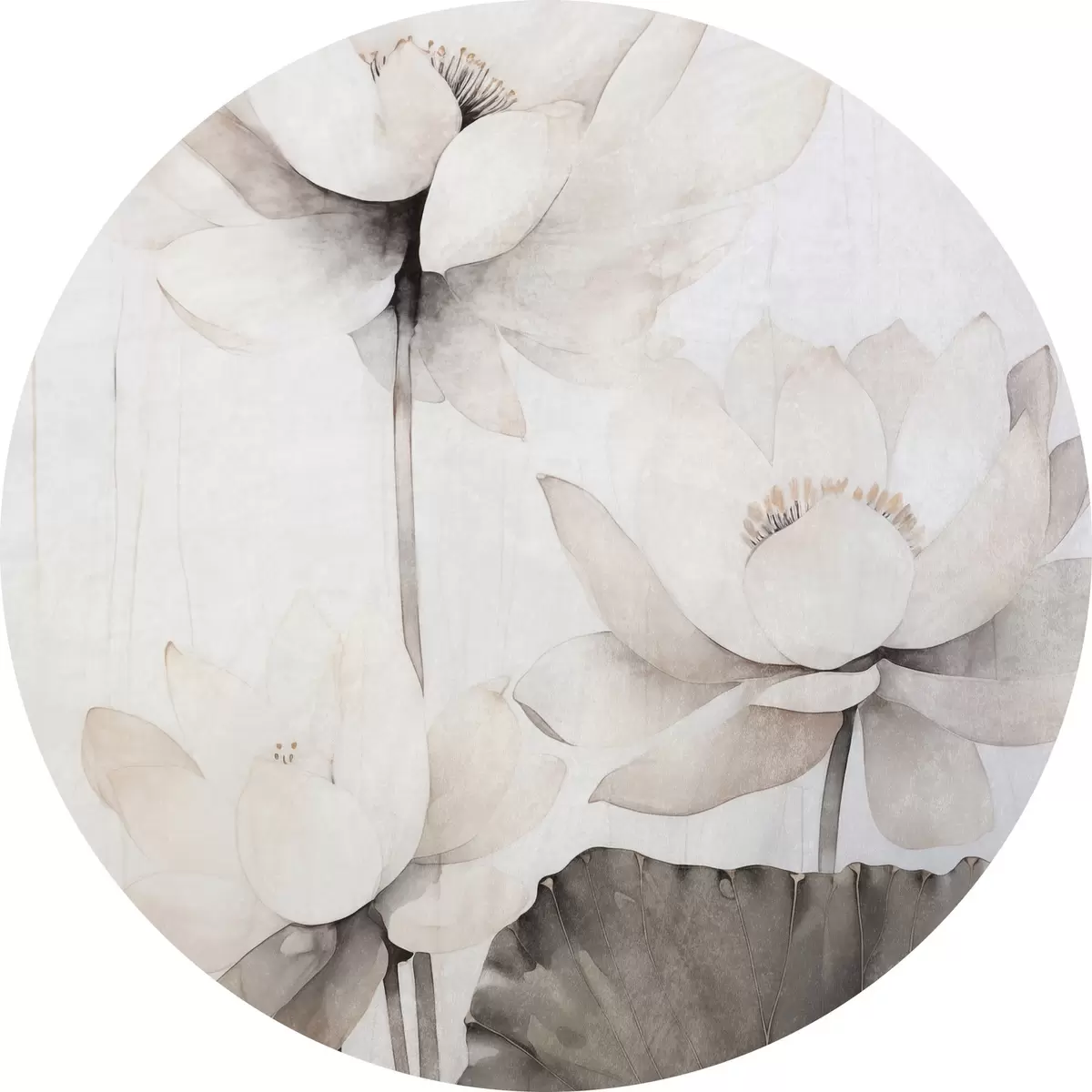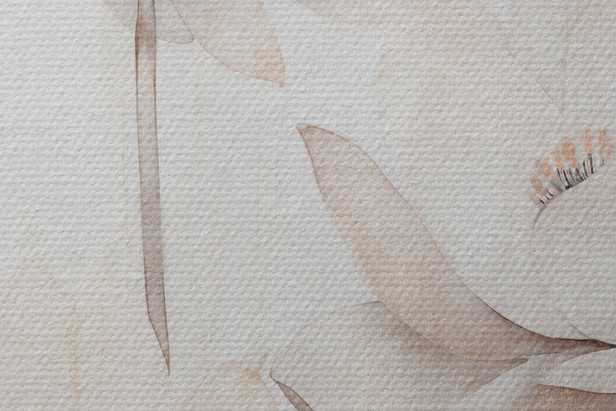 Pilt Valged tekstuuriga lootoseõied tumedate lehtedega, hele taust, minimalistlik disain Nr r45936
