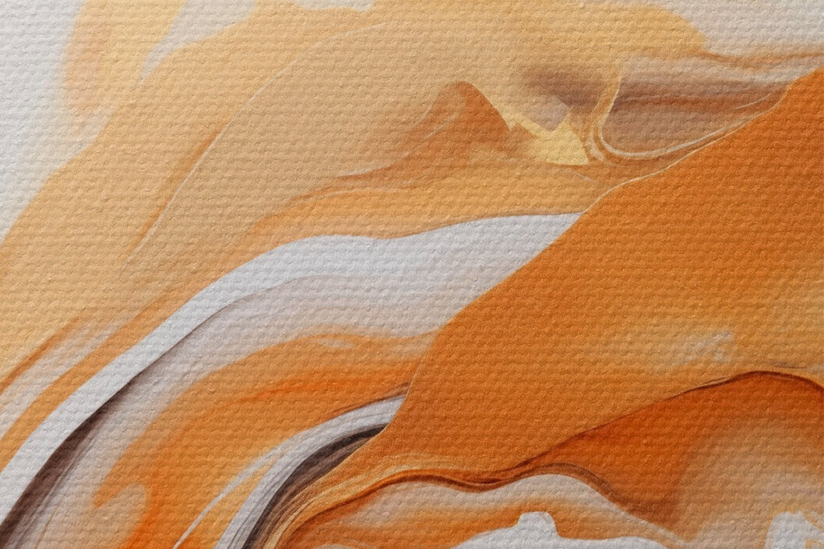 Pilt Abstraktne maal, mis imiteerib voolavaid kujundeid valge, oranži ja pruuni toonides, minimalistlik Nr r45938