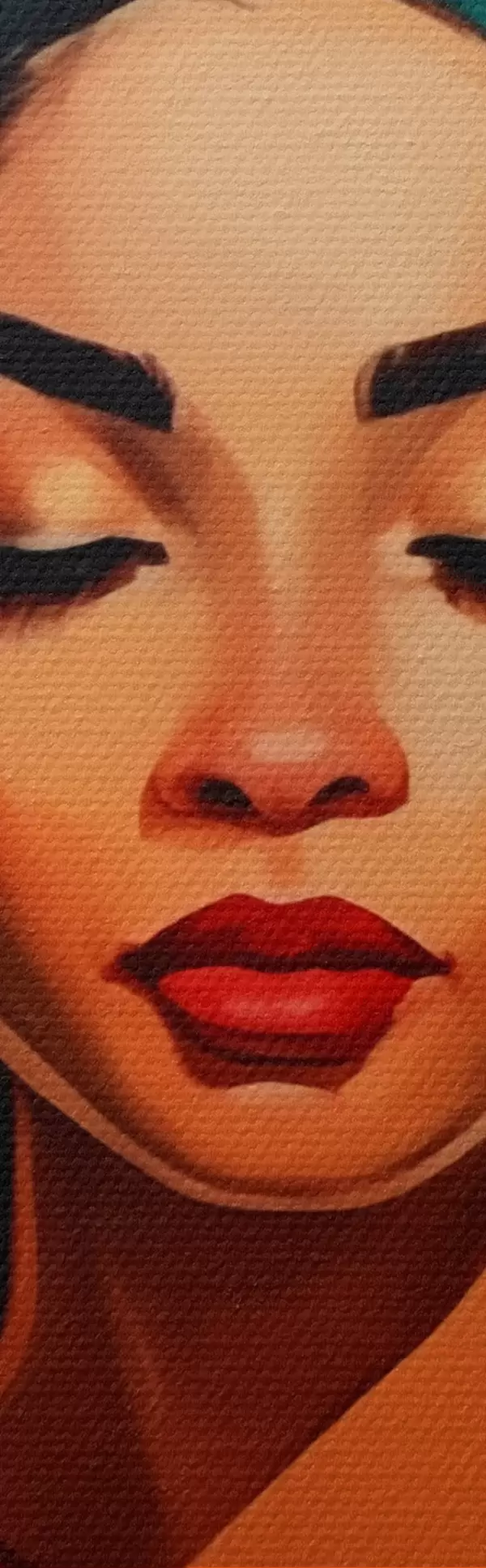 Selle lõuendi peenike niidipunus meenutab professionaalse kunstniku lõuendi pinda.