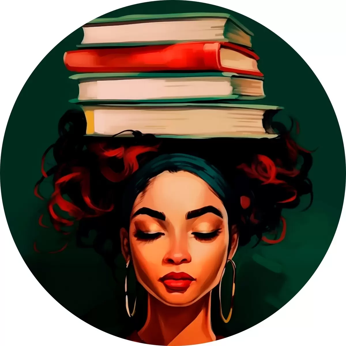 Pilt Naine raamatutega peas Nr r45952