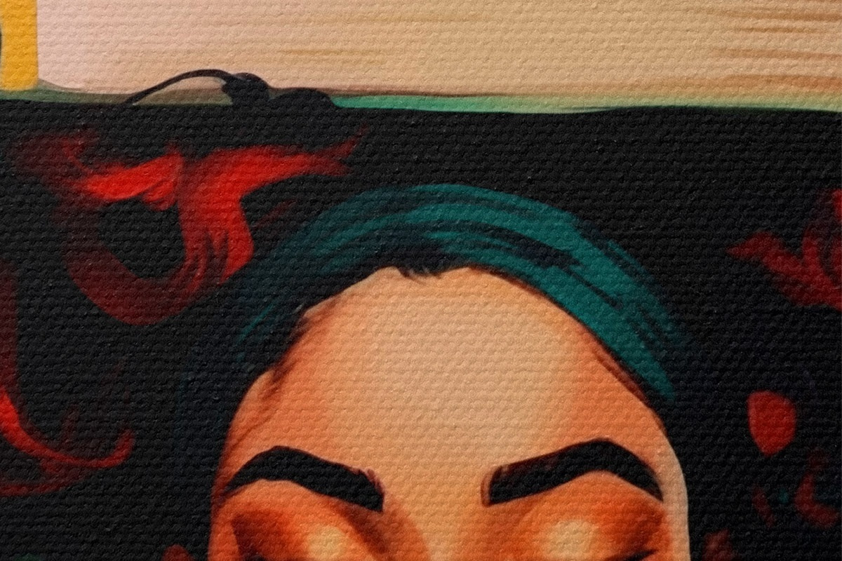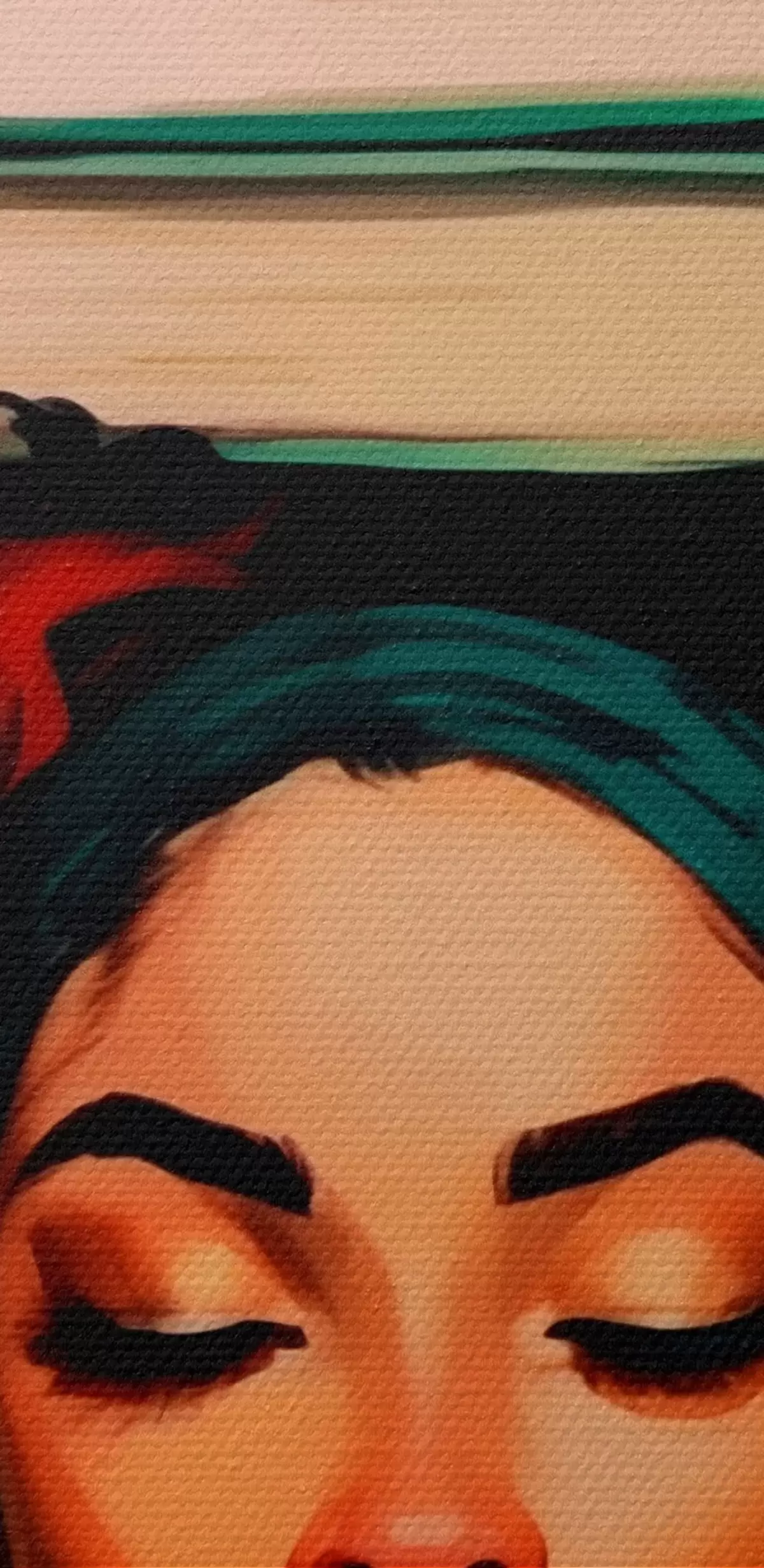 Selle lõuendi peenike niidipunus meenutab professionaalse kunstniku lõuendi pinda.