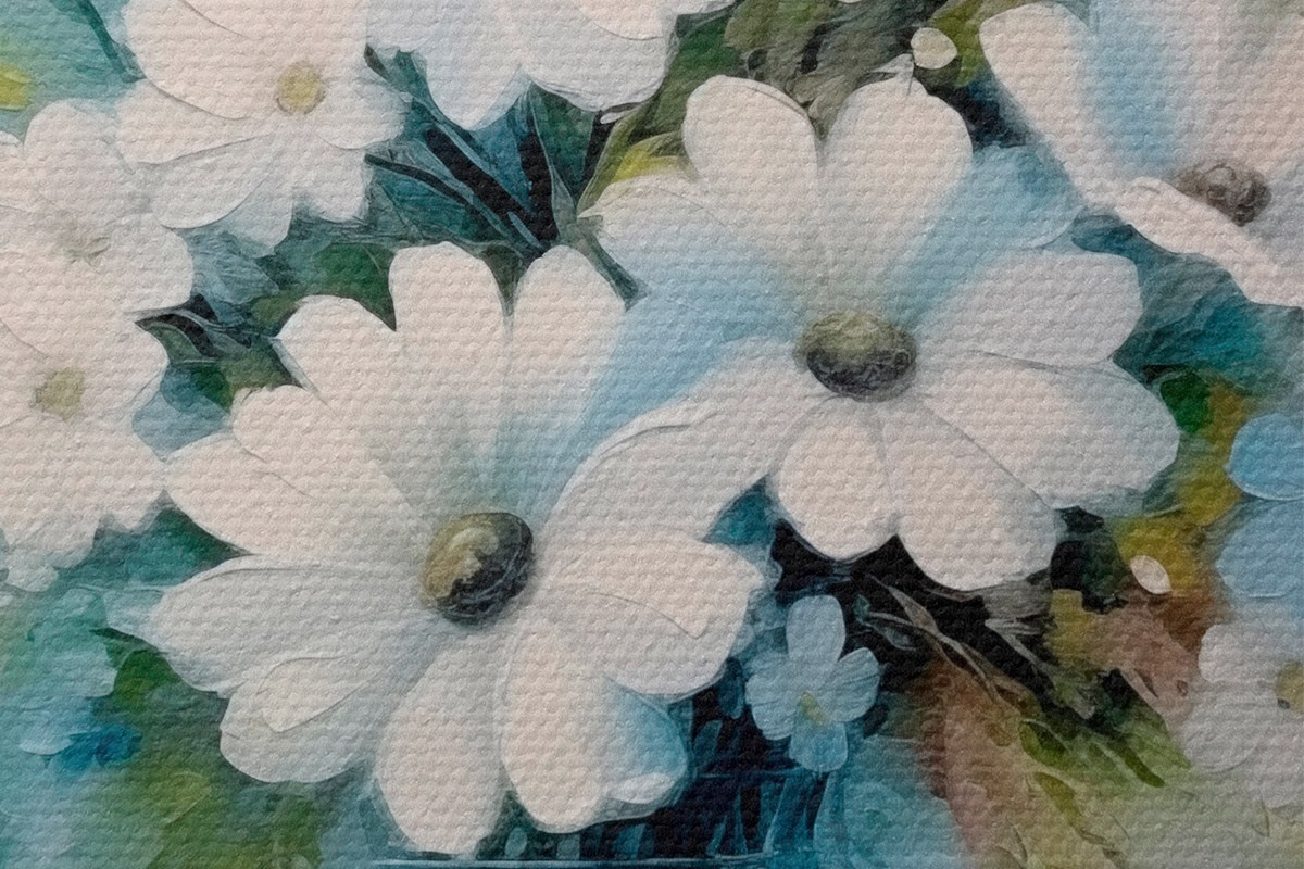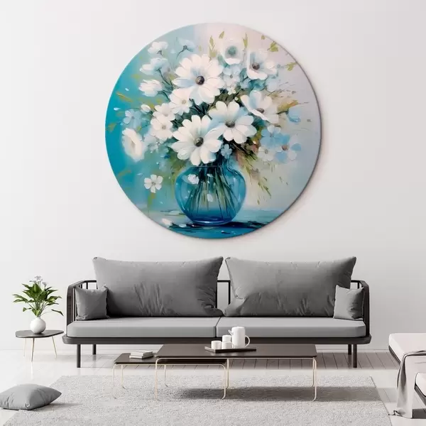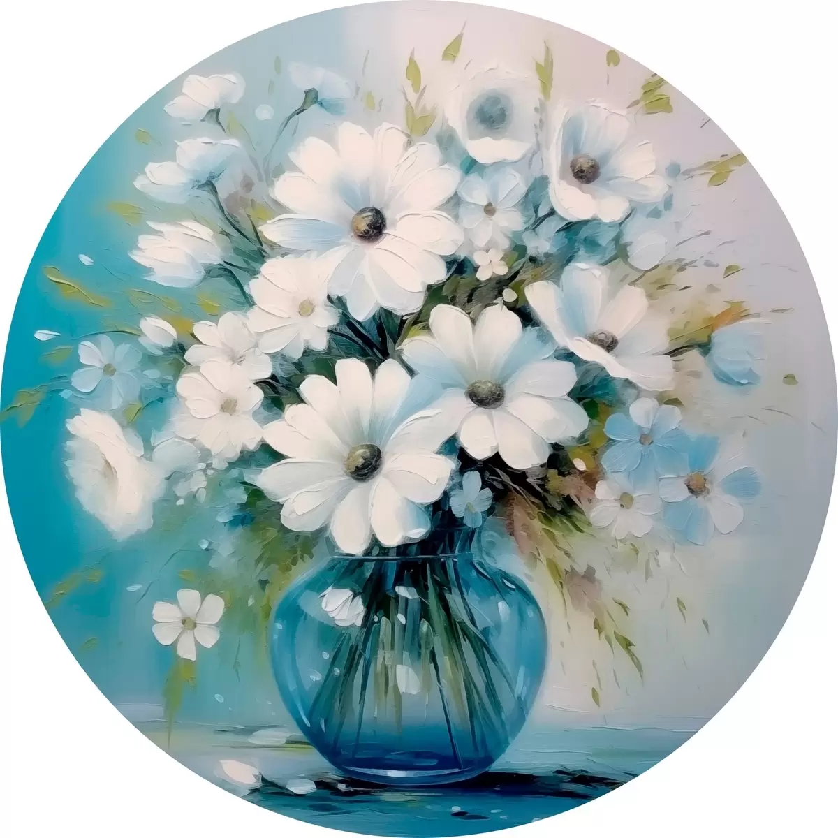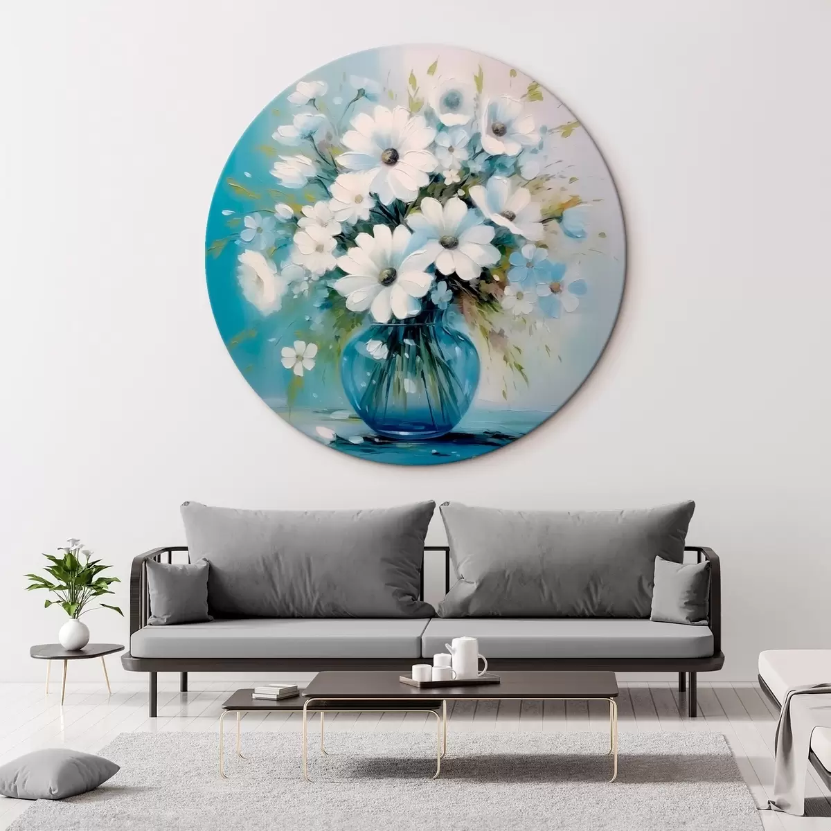 Pilt Sinises vaasis olev kimp margariite Nr r45959