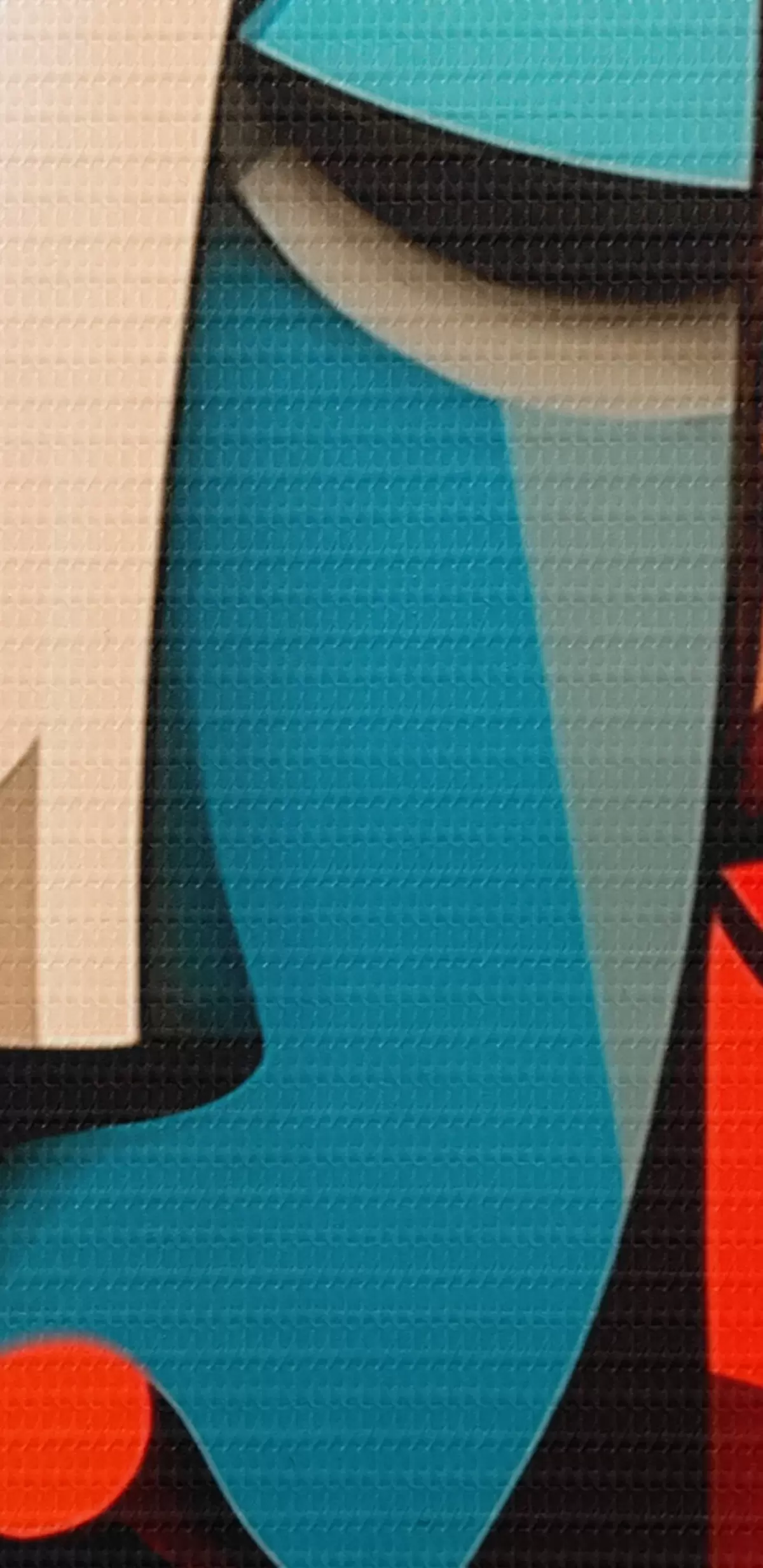 Selle lõuendi peenike niidipunus meenutab professionaalse kunstniku lõuendi pinda.
