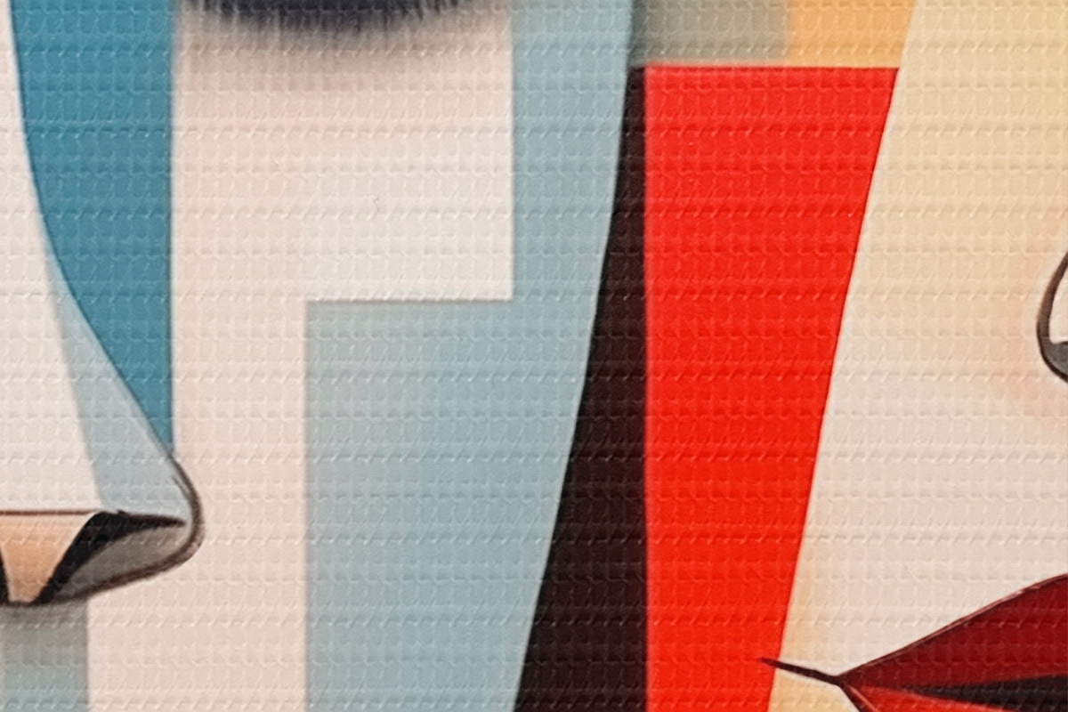 Selle lõuendi peenike niidipunus meenutab professionaalse kunstniku lõuendi pinda.