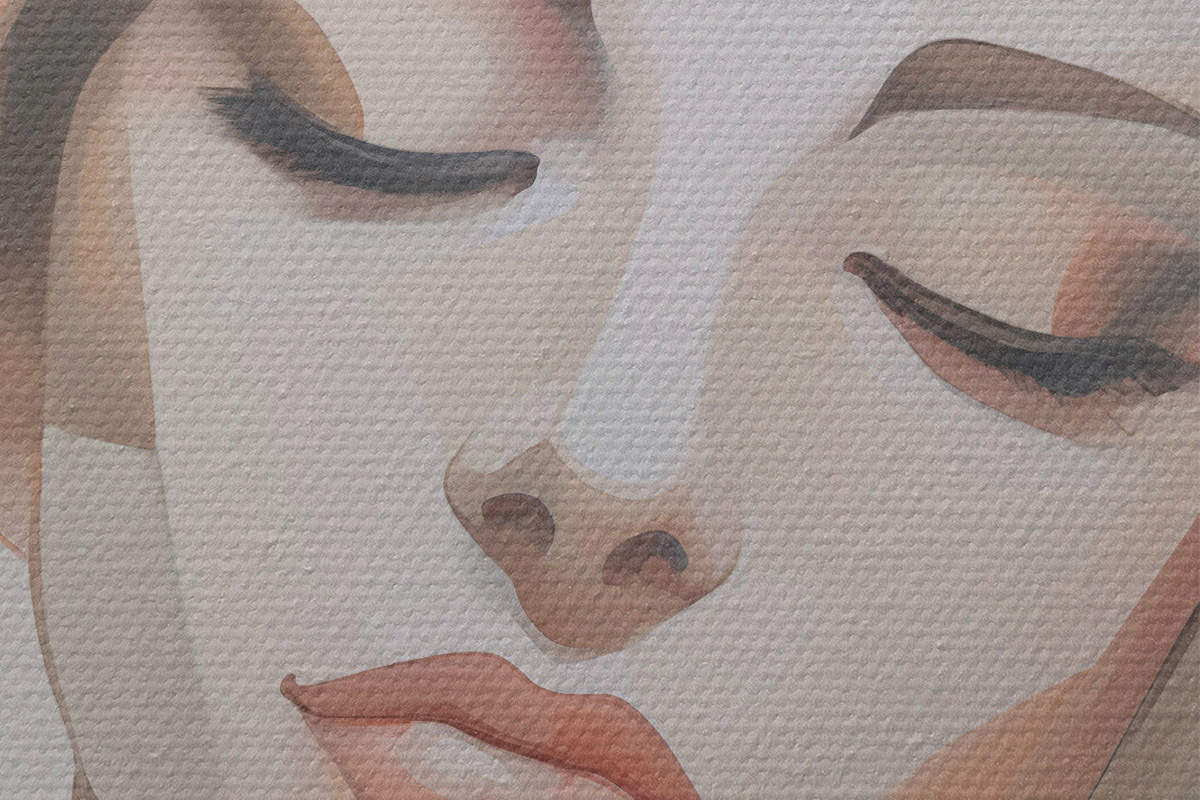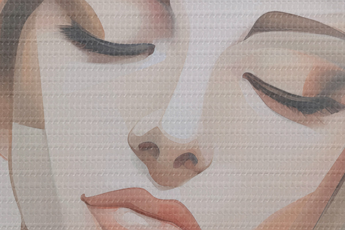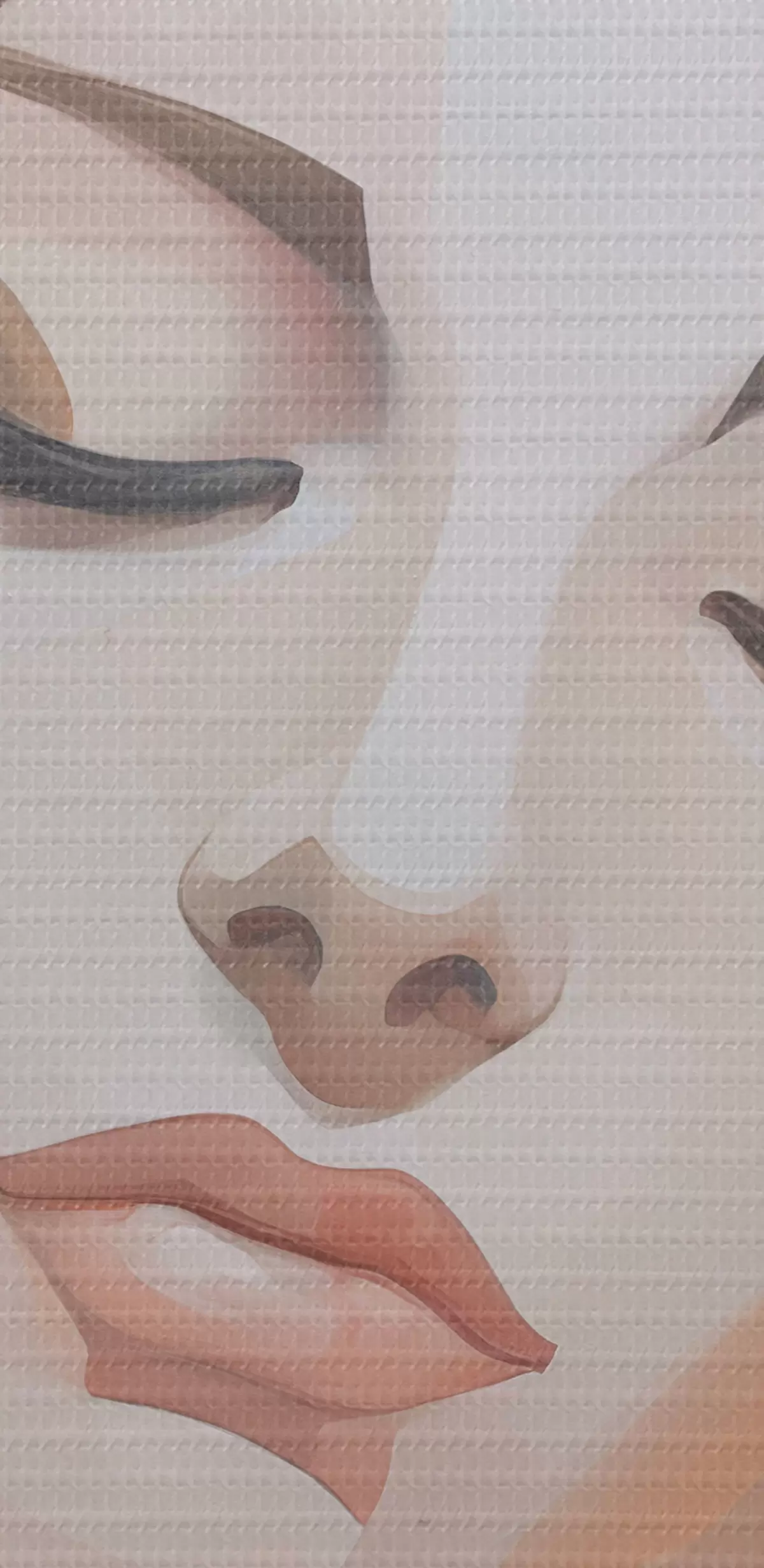 Selle lõuendi peenike niidipunus meenutab professionaalse kunstniku lõuendi pinda.