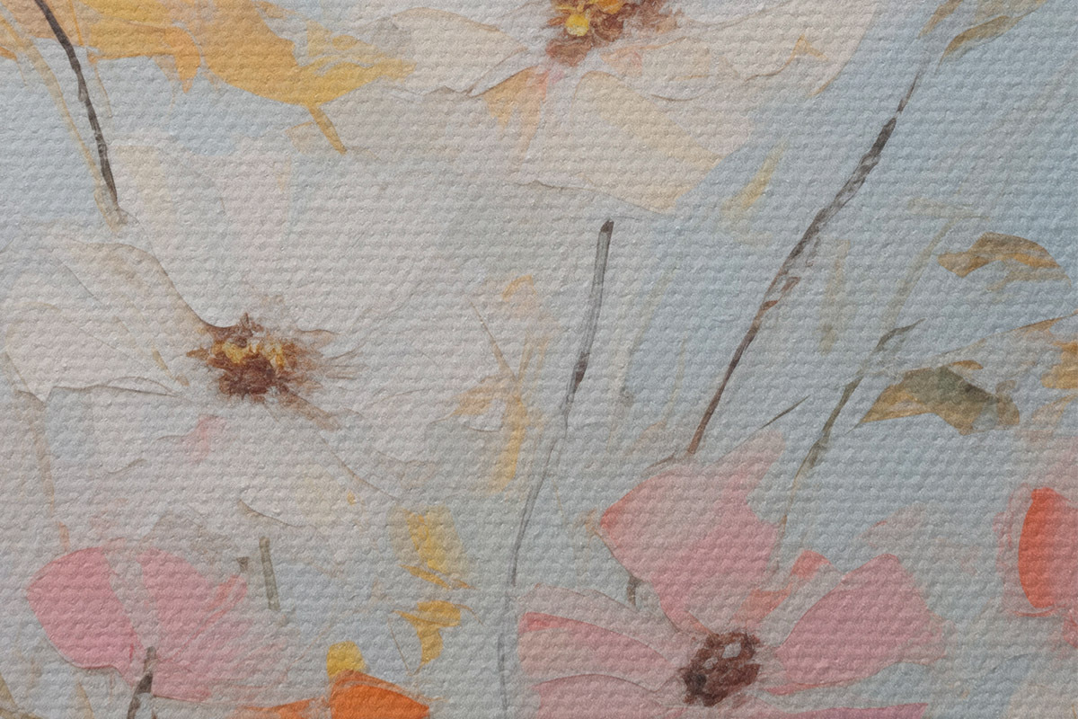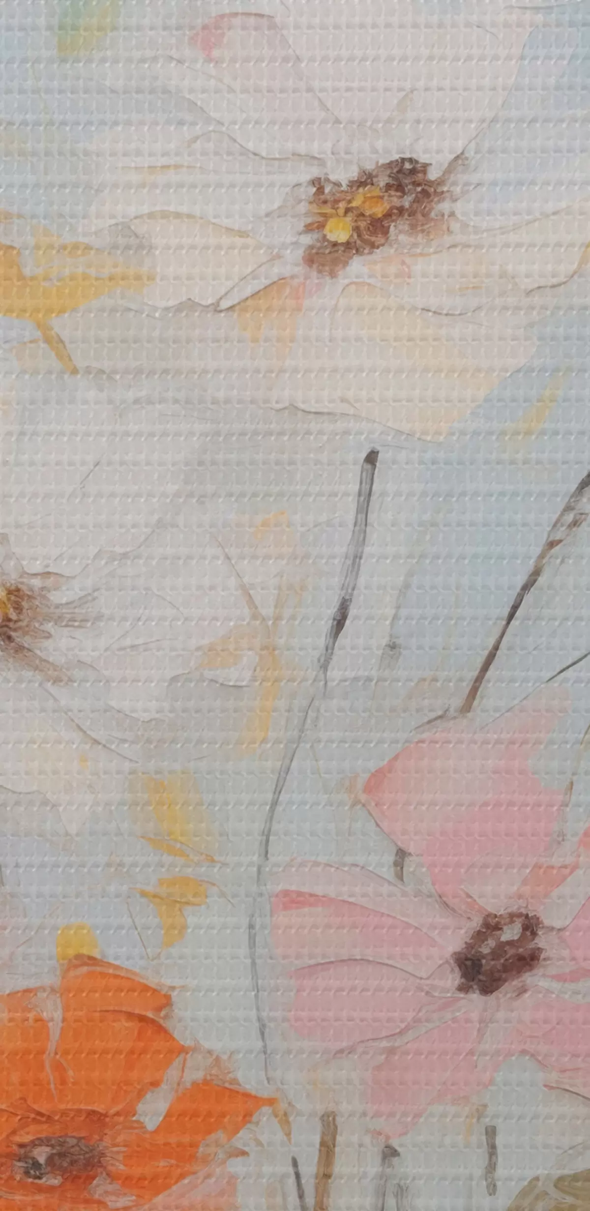 Selle lõuendi peenike niidipunus meenutab professionaalse kunstniku lõuendi pinda.