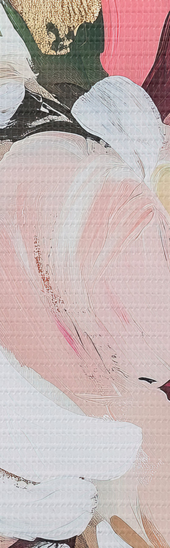 Selle lõuendi peenike niidipunus meenutab professionaalse kunstniku lõuendi pinda.