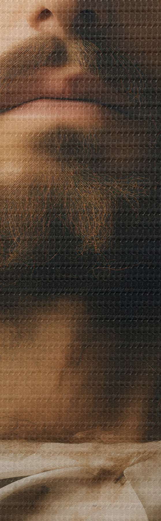Selle lõuendi peenike niidipunus meenutab professionaalse kunstniku lõuendi pinda.
