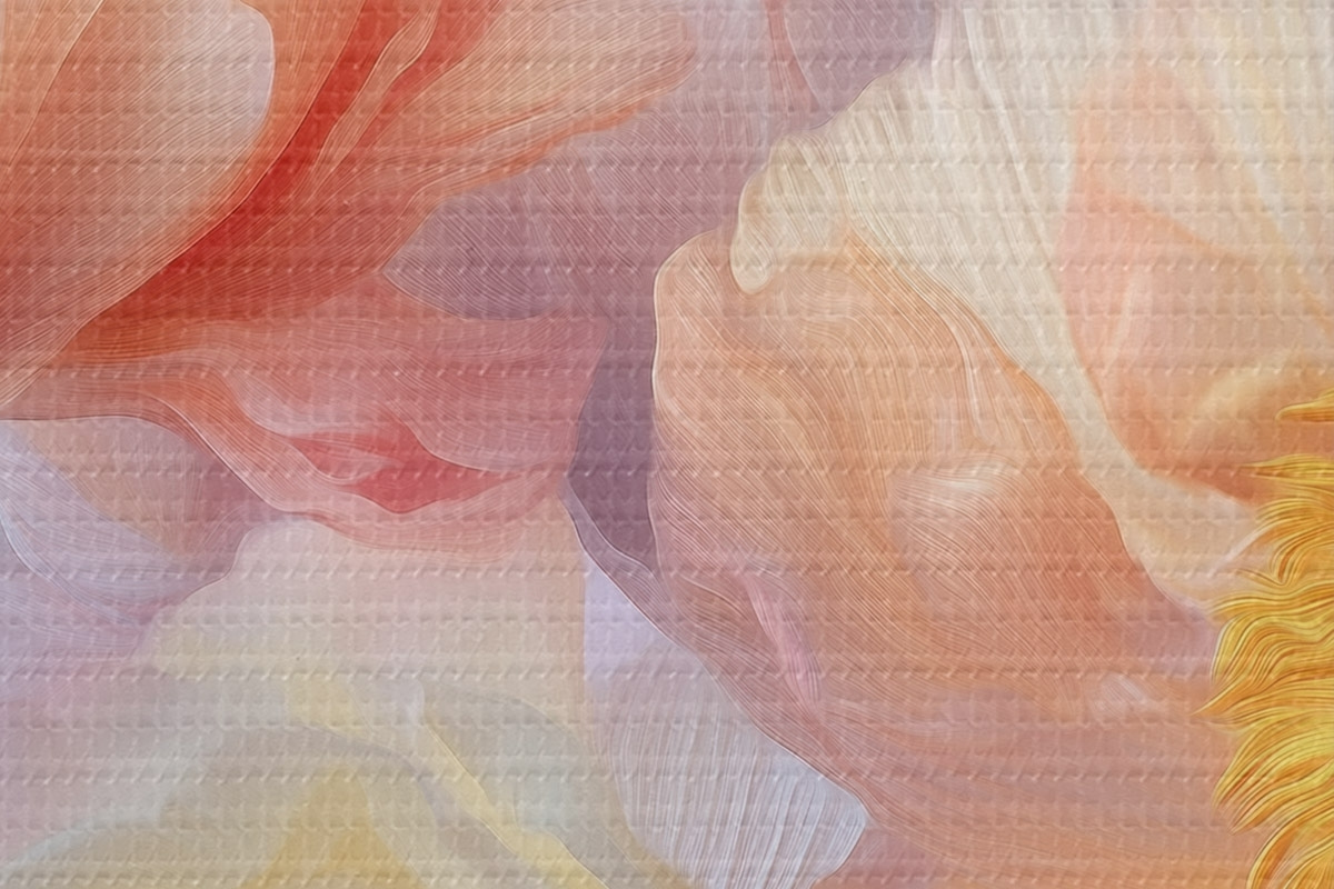 Selle lõuendi peenike niidipunus meenutab professionaalse kunstniku lõuendi pinda.