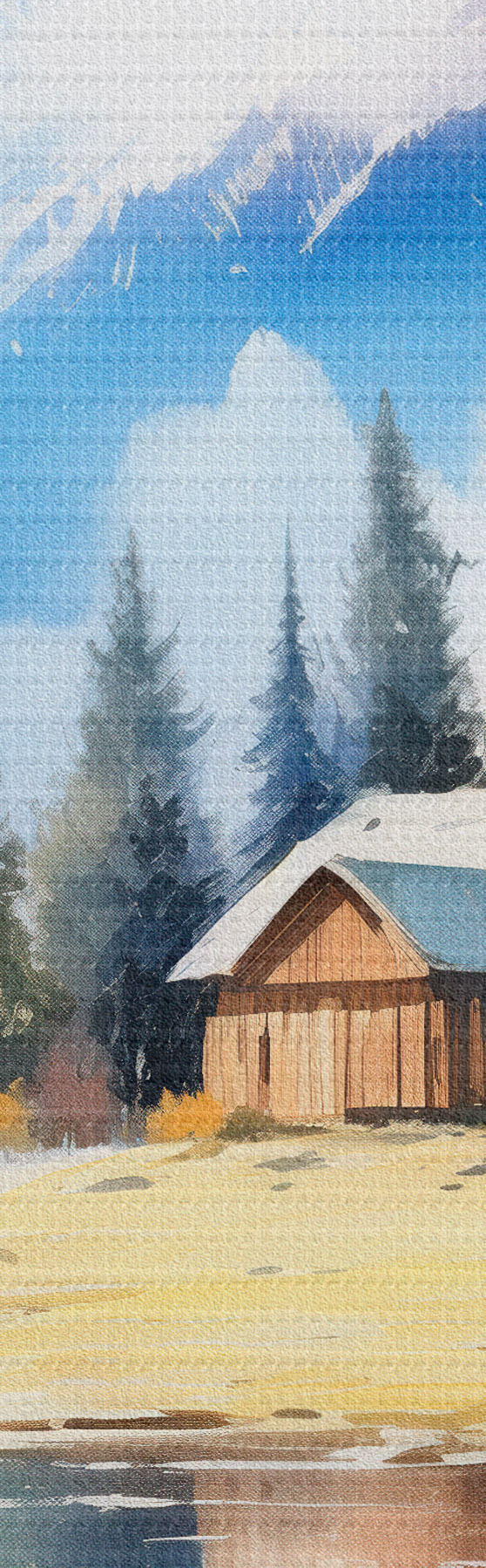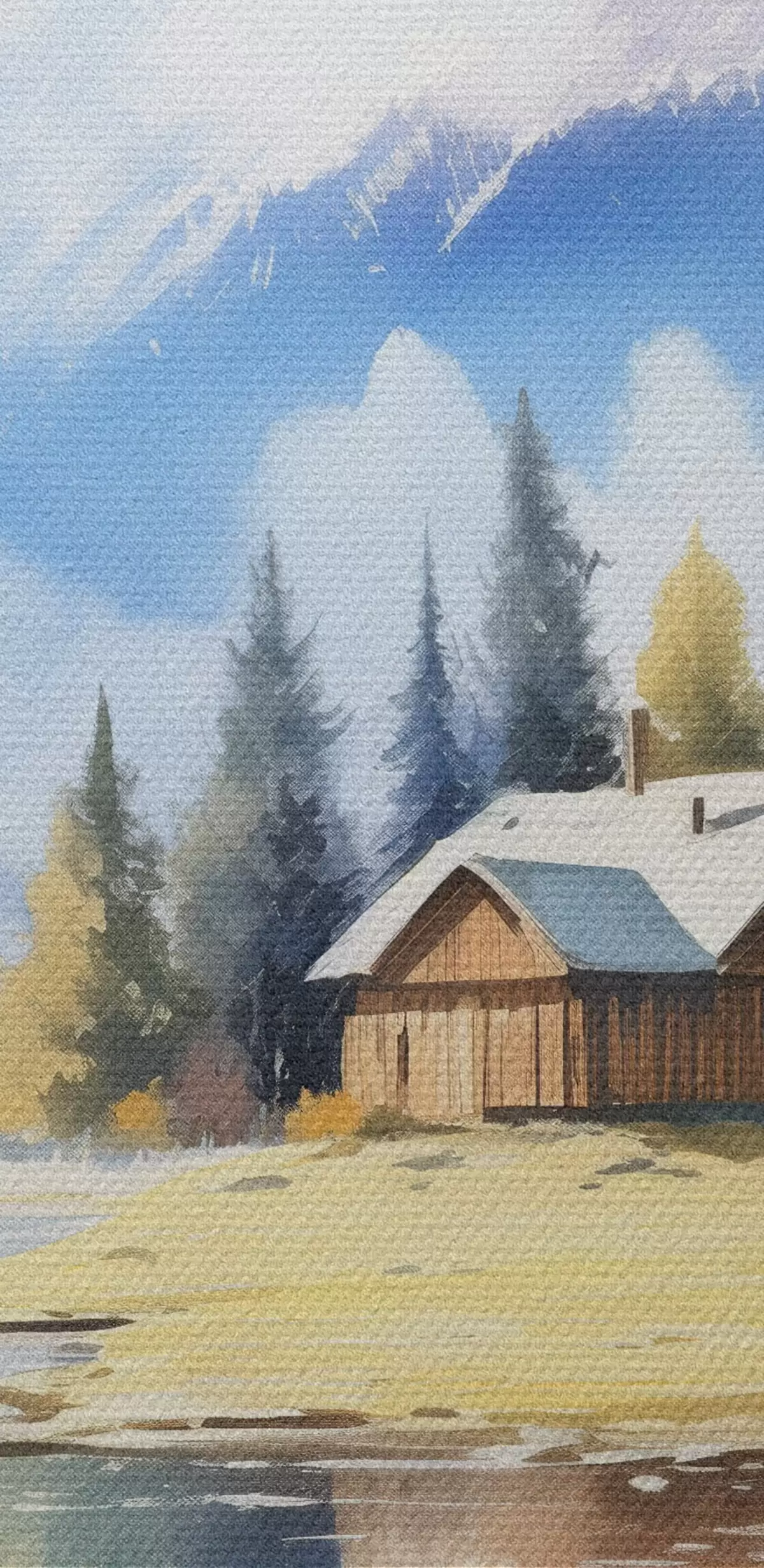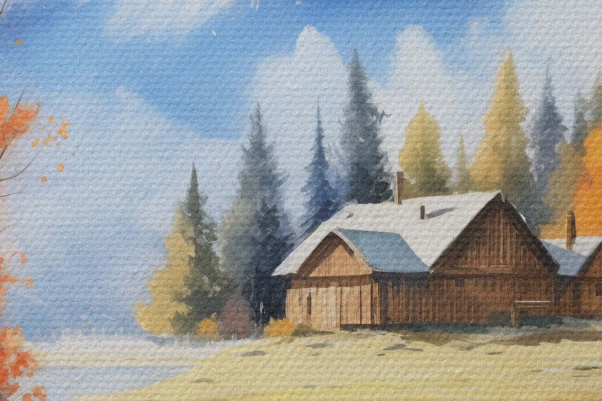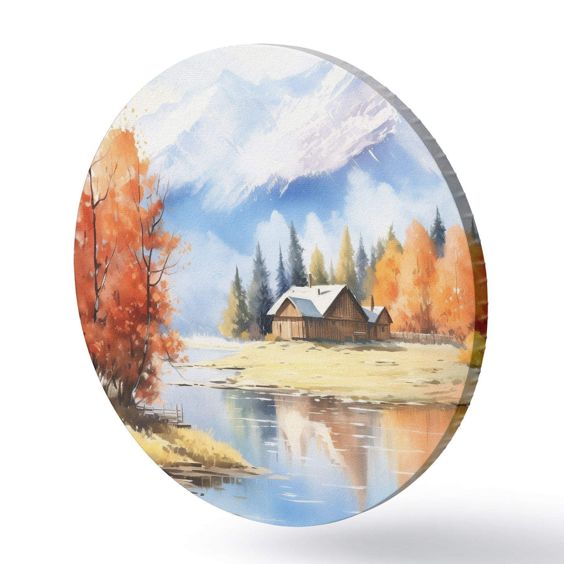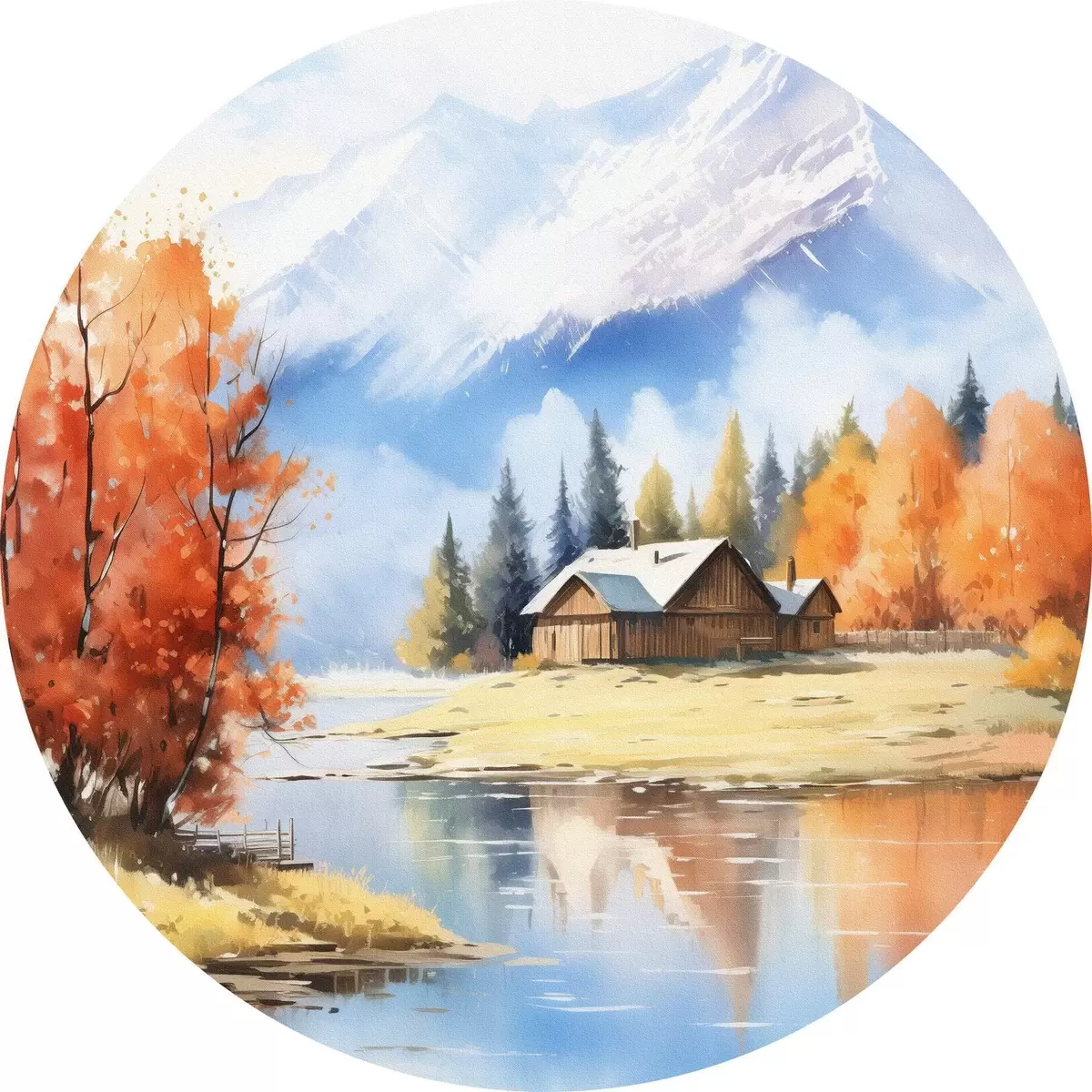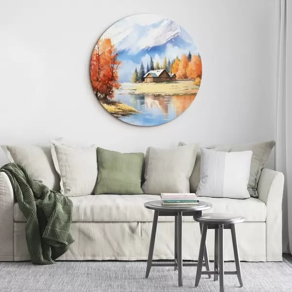 Pilt Sügisene maastik järve ääres koos majaga ja mägedega Nr r46184