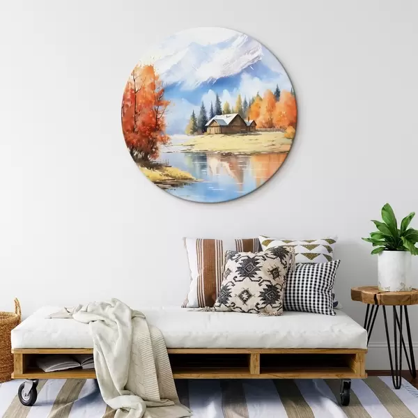 Pilt Sügisene maastik järve ääres koos majaga ja mägedega Nr r46184