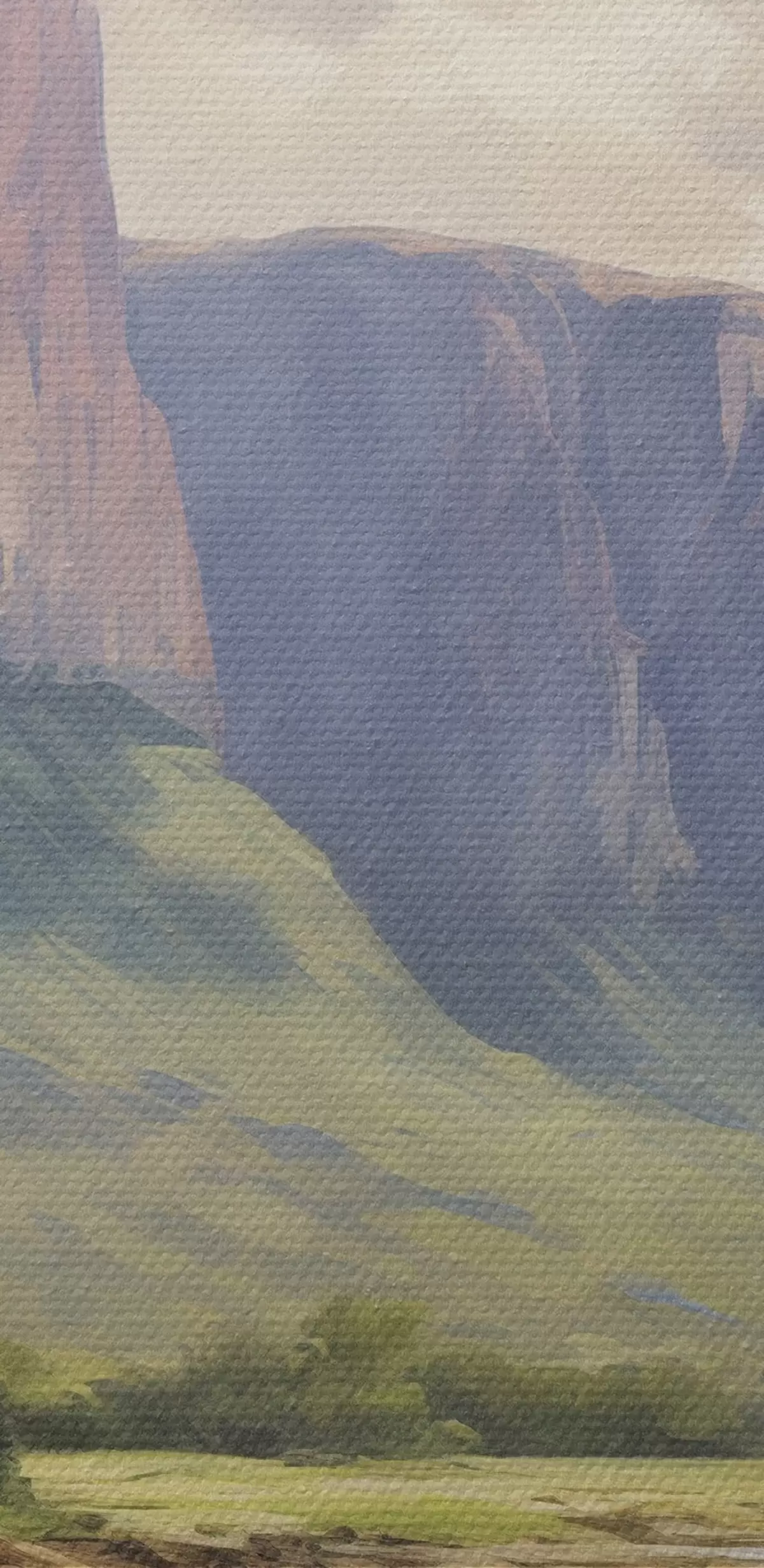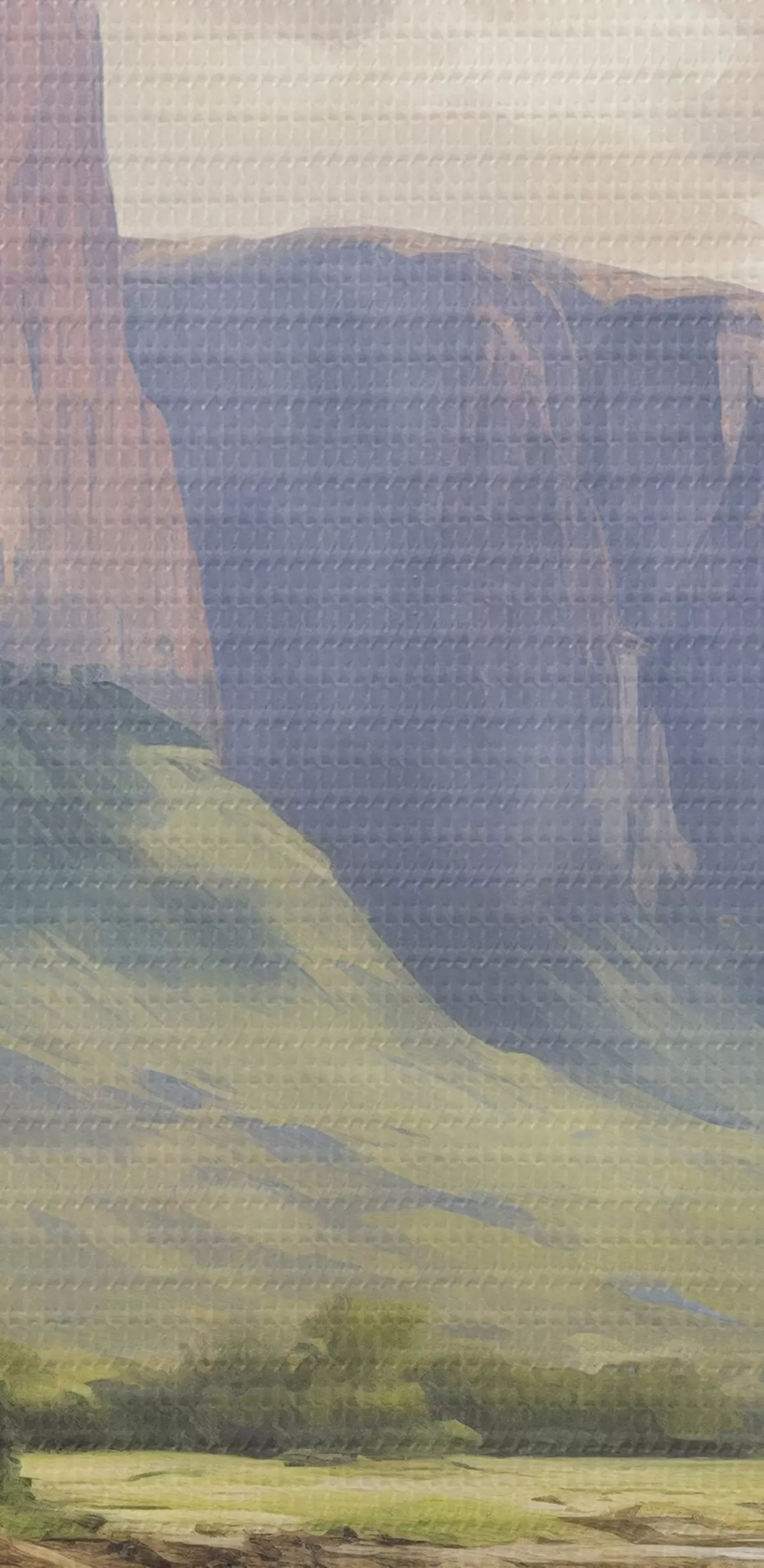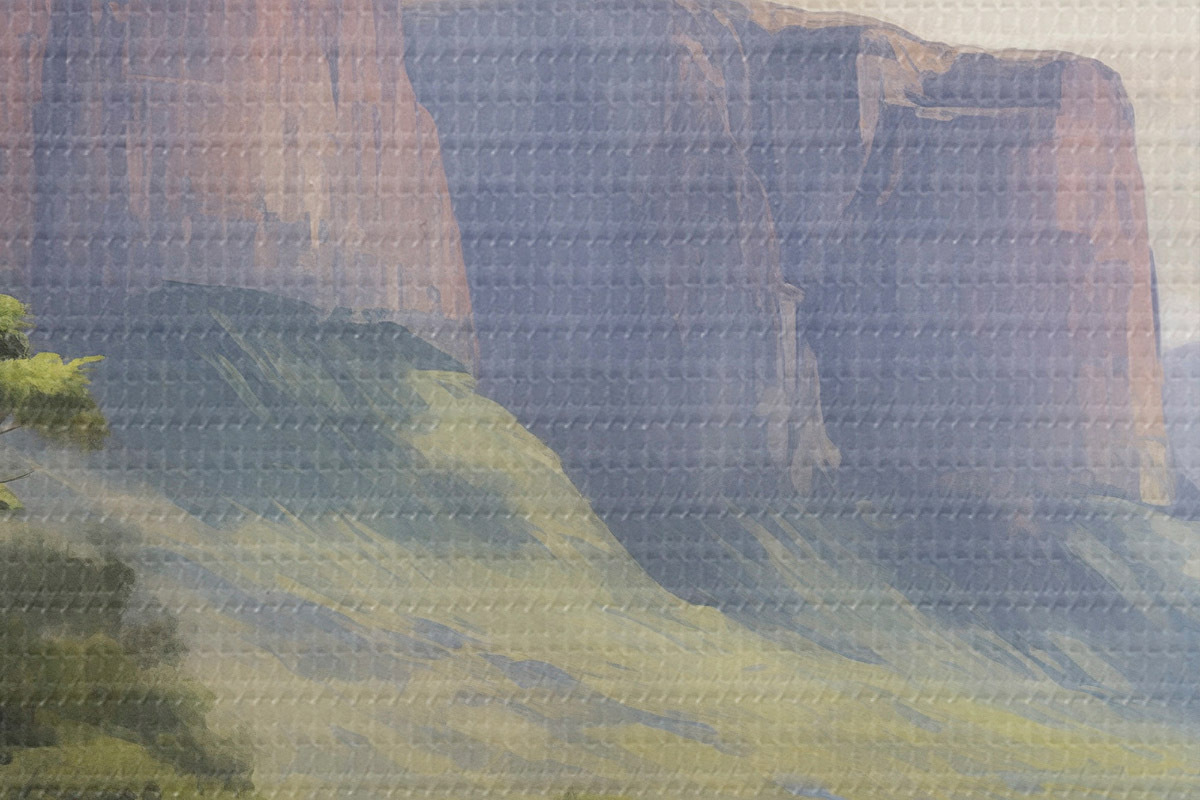Selle lõuendi peenike niidipunus meenutab professionaalse kunstniku lõuendi pinda.