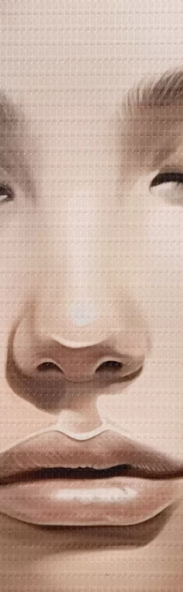 Selle lõuendi peenike niidipunus meenutab professionaalse kunstniku lõuendi pinda.