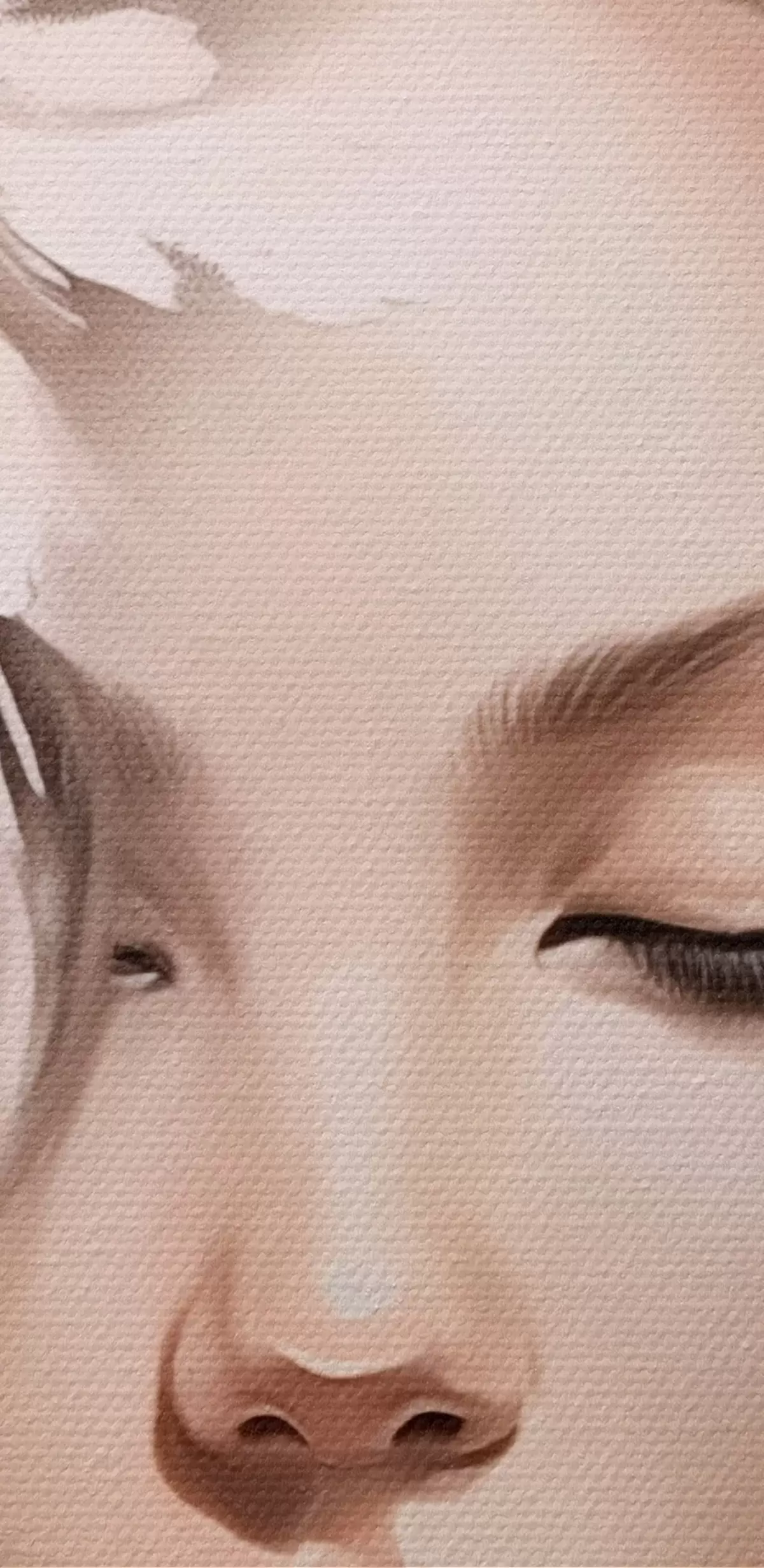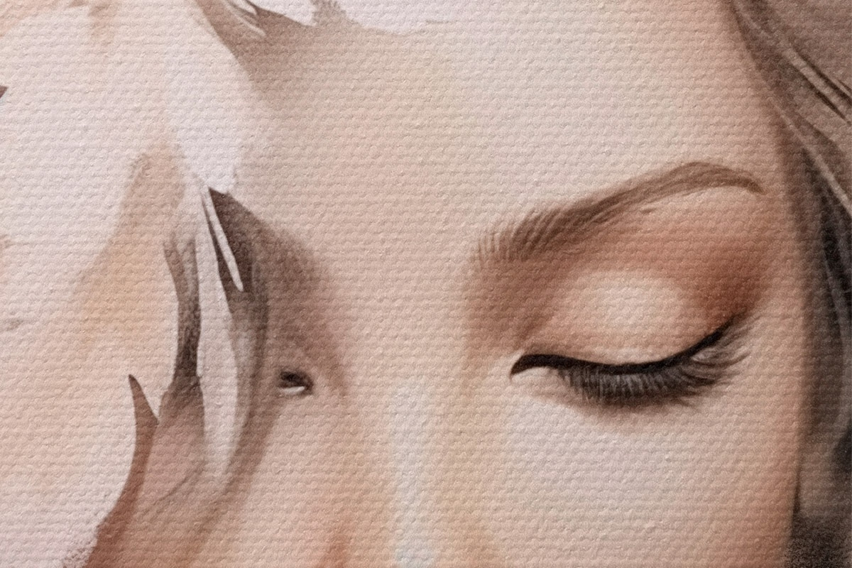 Selle lõuendi peenike niidipunus meenutab professionaalse kunstniku lõuendi pinda.