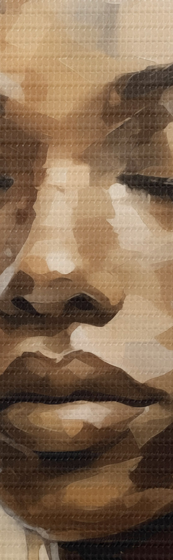 Selle lõuendi peenike niidipunus meenutab professionaalse kunstniku lõuendi pinda.