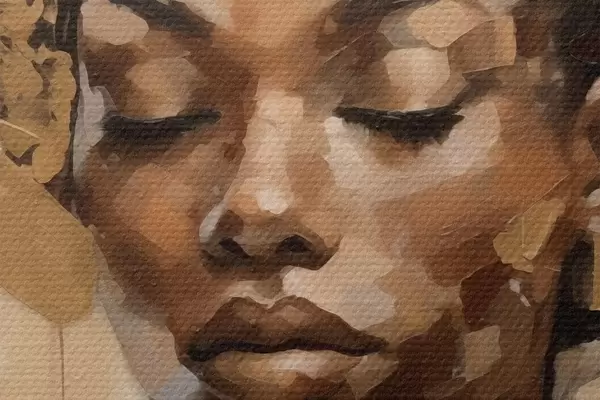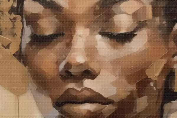 Selle lõuendi peenike niidipunus meenutab professionaalse kunstniku lõuendi pinda.