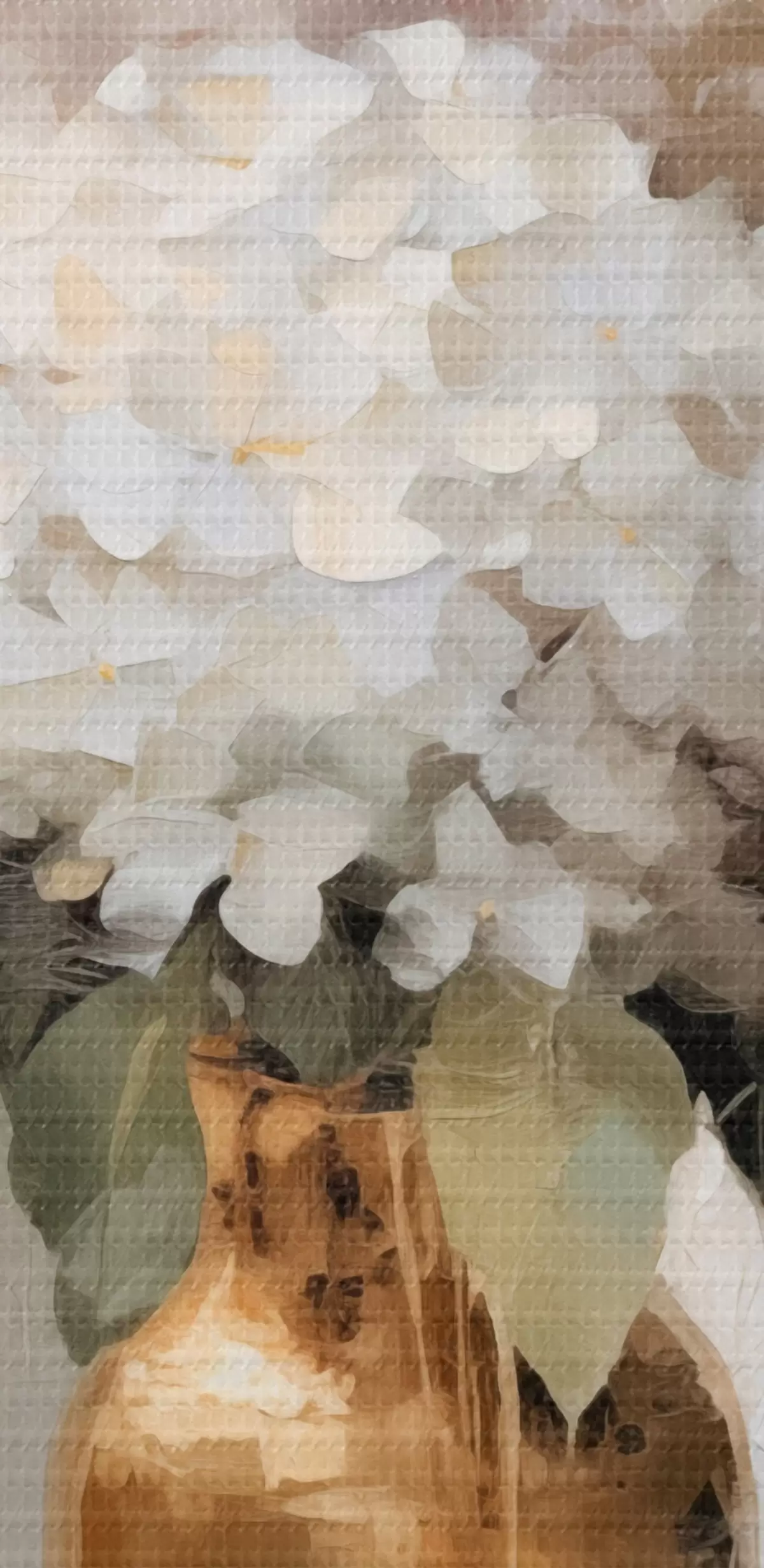 Selle lõuendi peenike niidipunus meenutab professionaalse kunstniku lõuendi pinda.