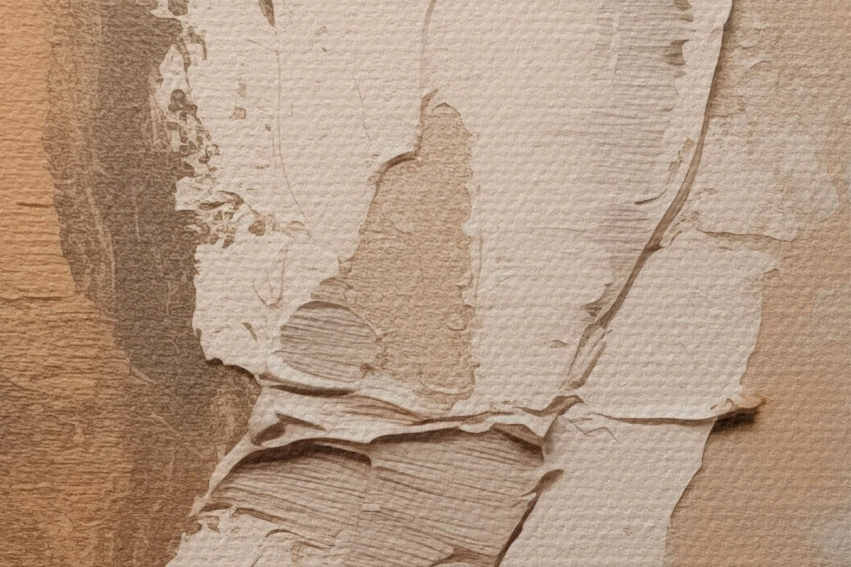 Pilt Abstraktne maal paksude pintslitõmmetega, beežide ja pruunide toonidega, tekstuurse pinnaga, neutraalsete värvidega Nr r46272