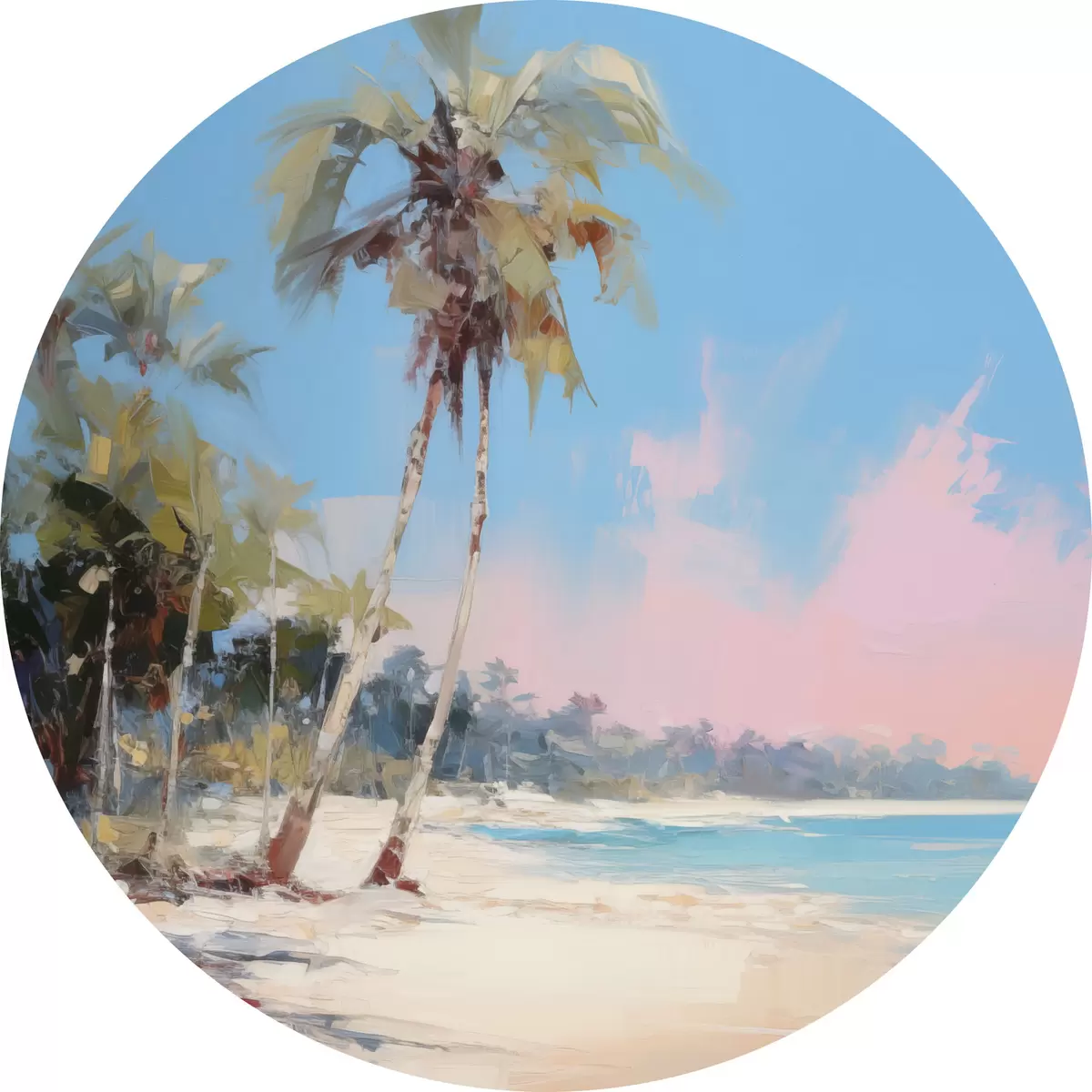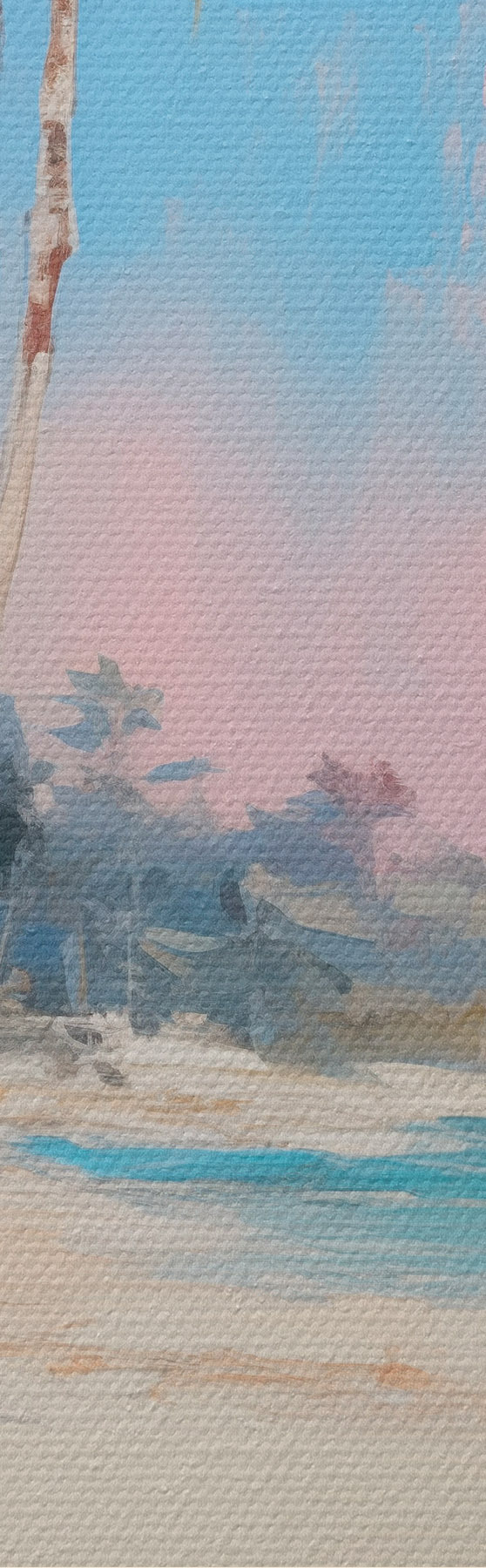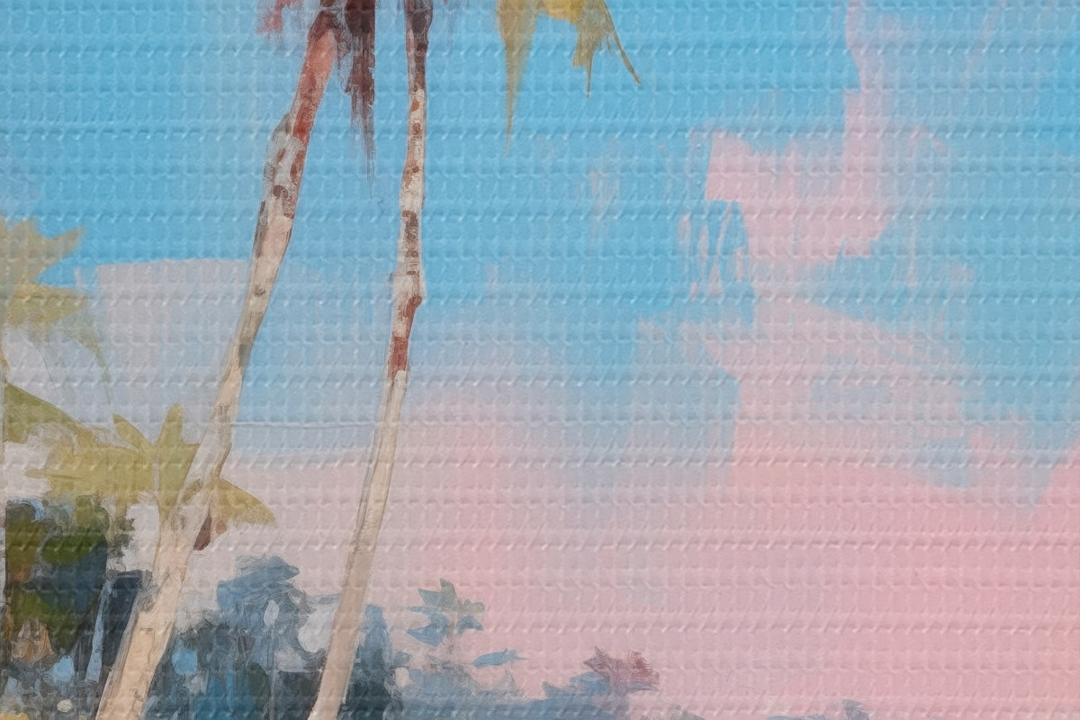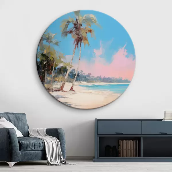 Pilt Abstraktne troopiline rand valge liiva ja palmipuudega, sinine taevas valge pilvedega Nr r46285