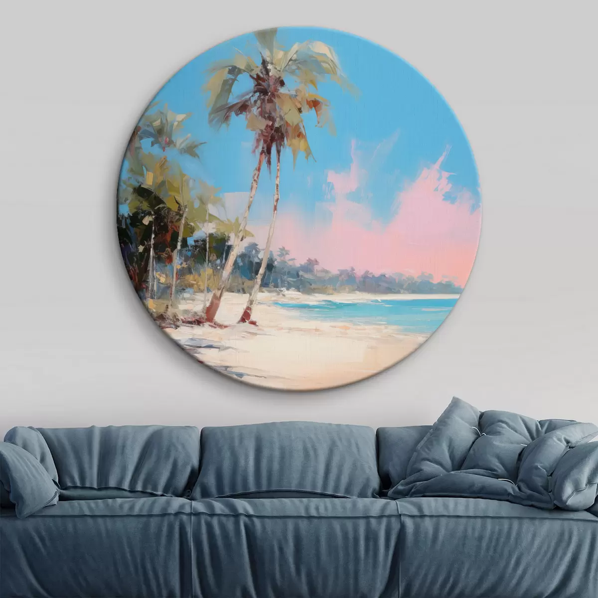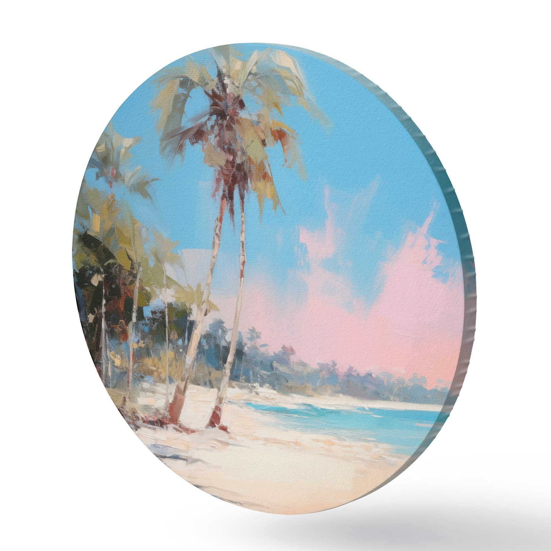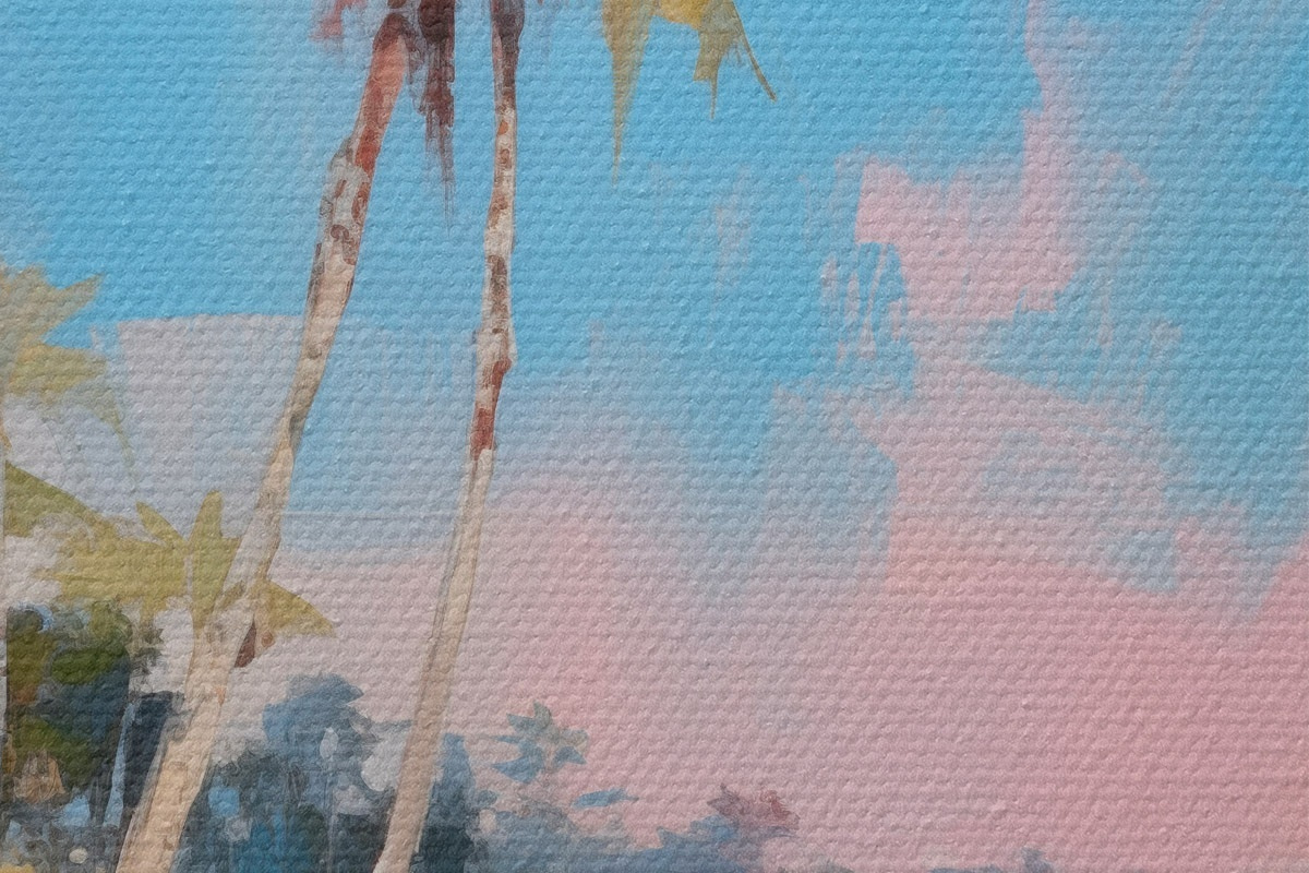 Pilt Abstraktne troopiline rand valge liiva ja palmipuudega, sinine taevas valge pilvedega Nr r46285