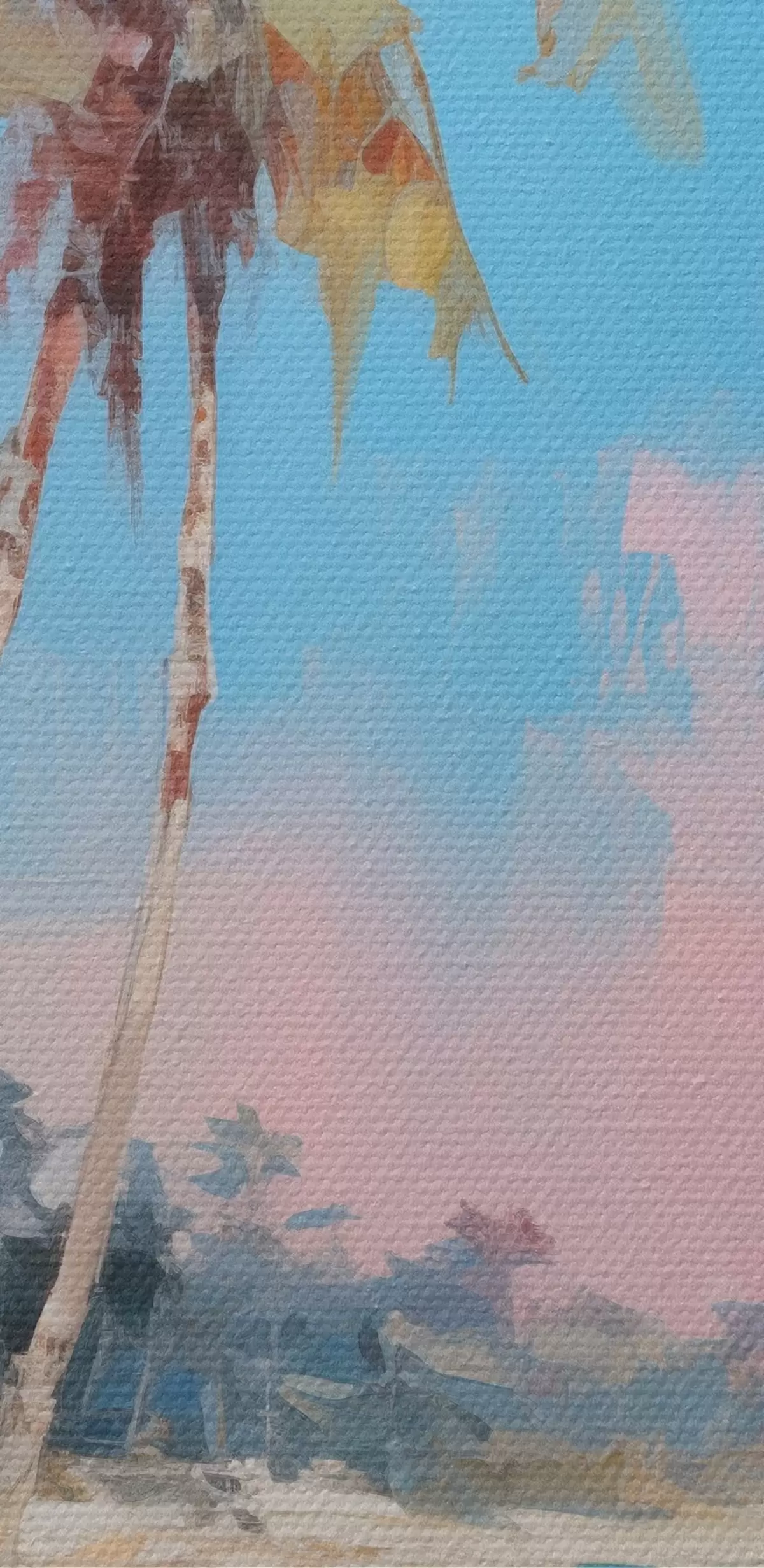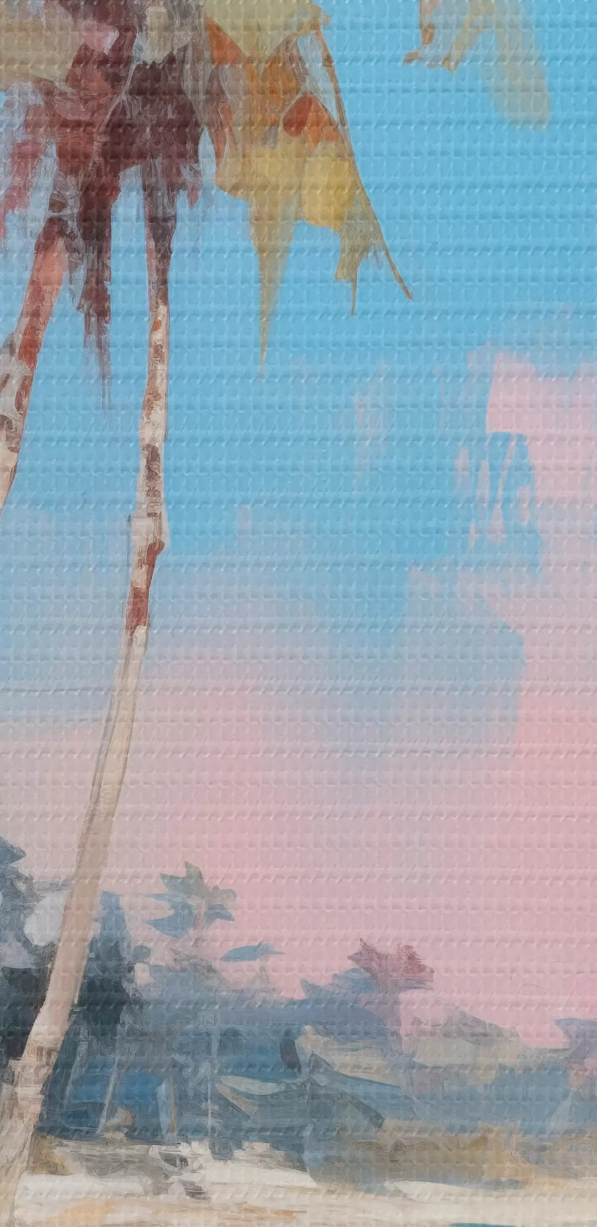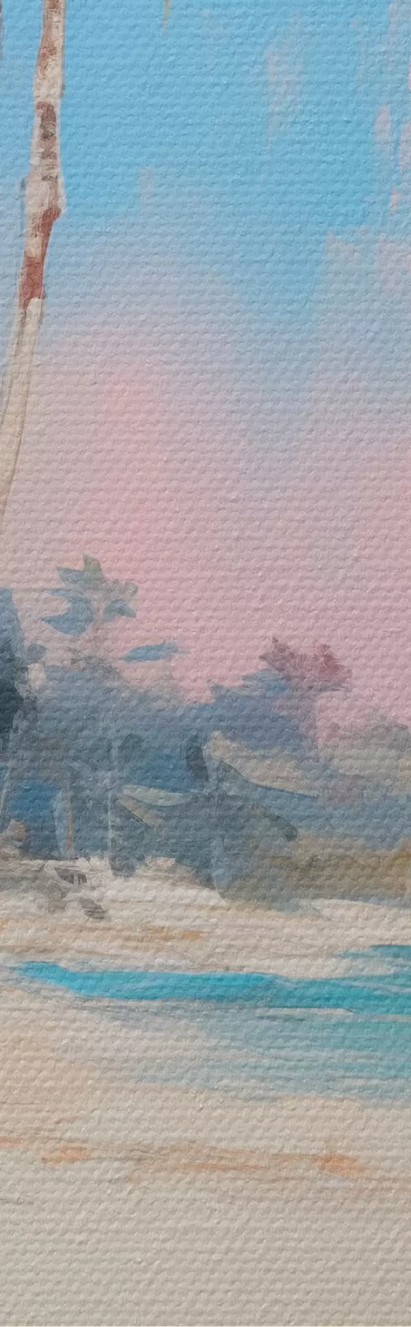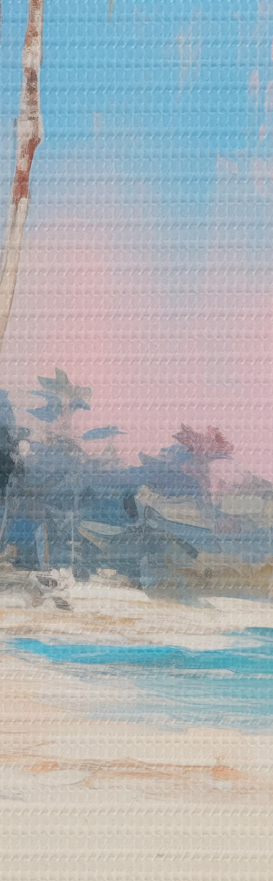 Selle lõuendi peenike niidipunus meenutab professionaalse kunstniku lõuendi pinda.