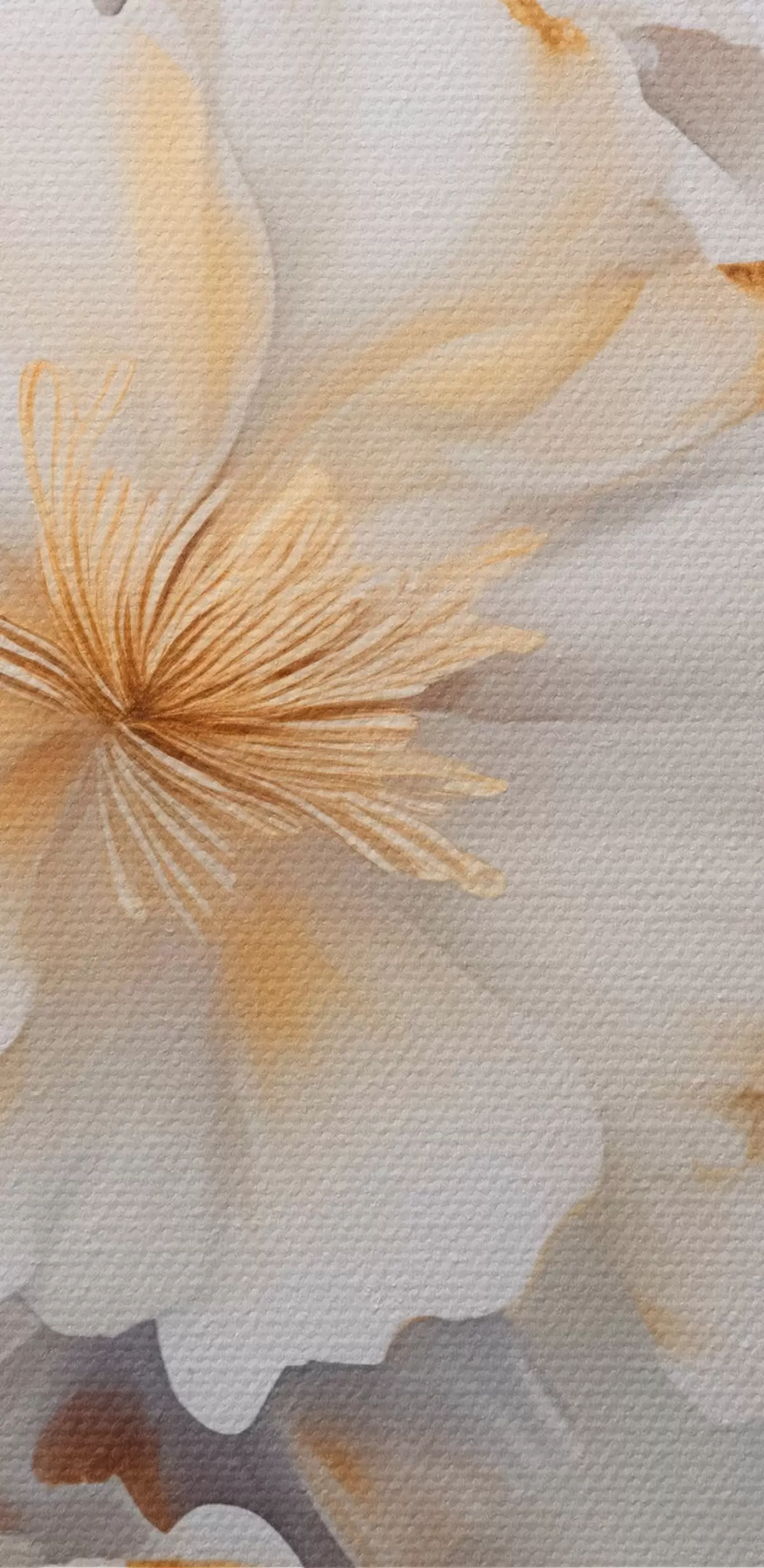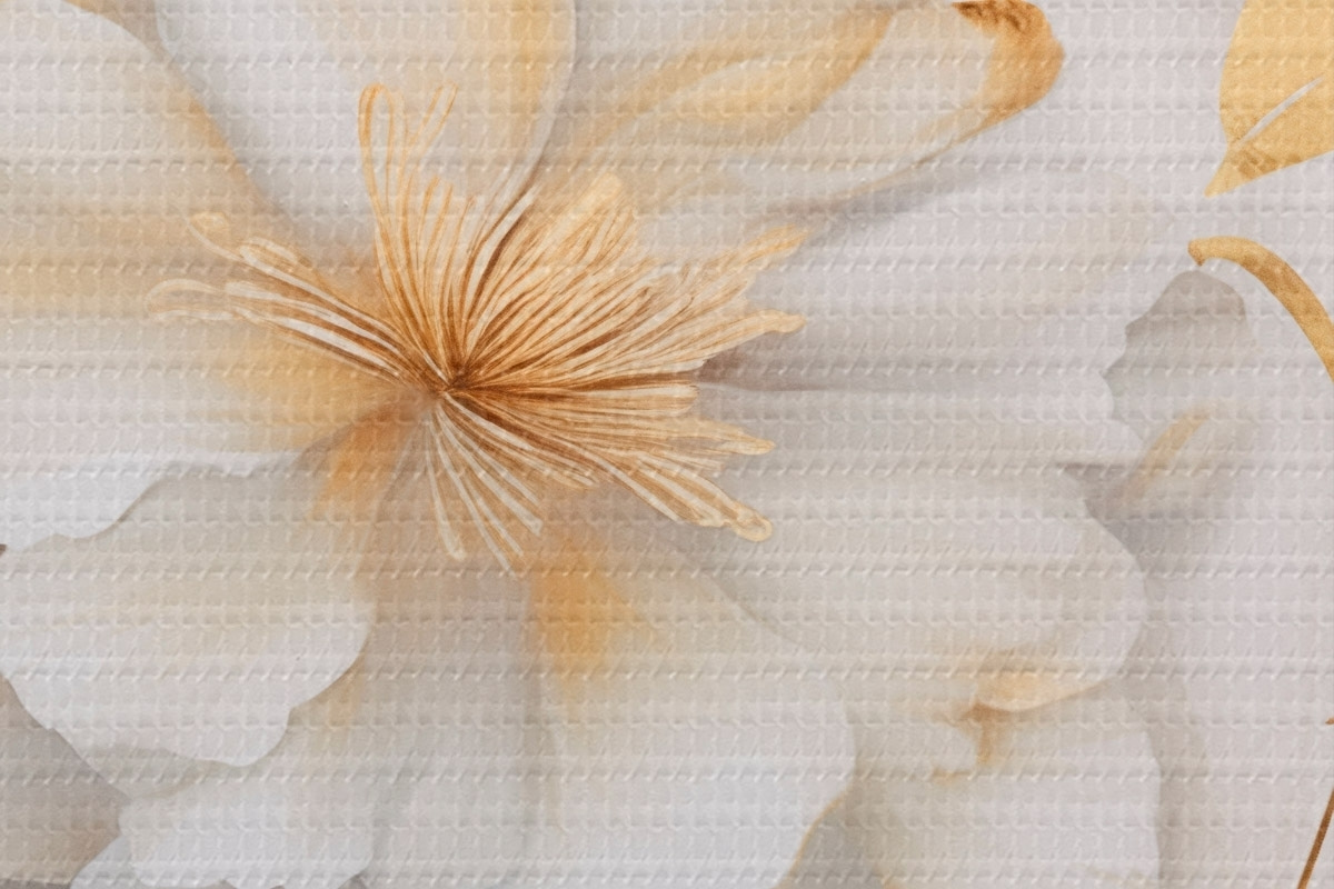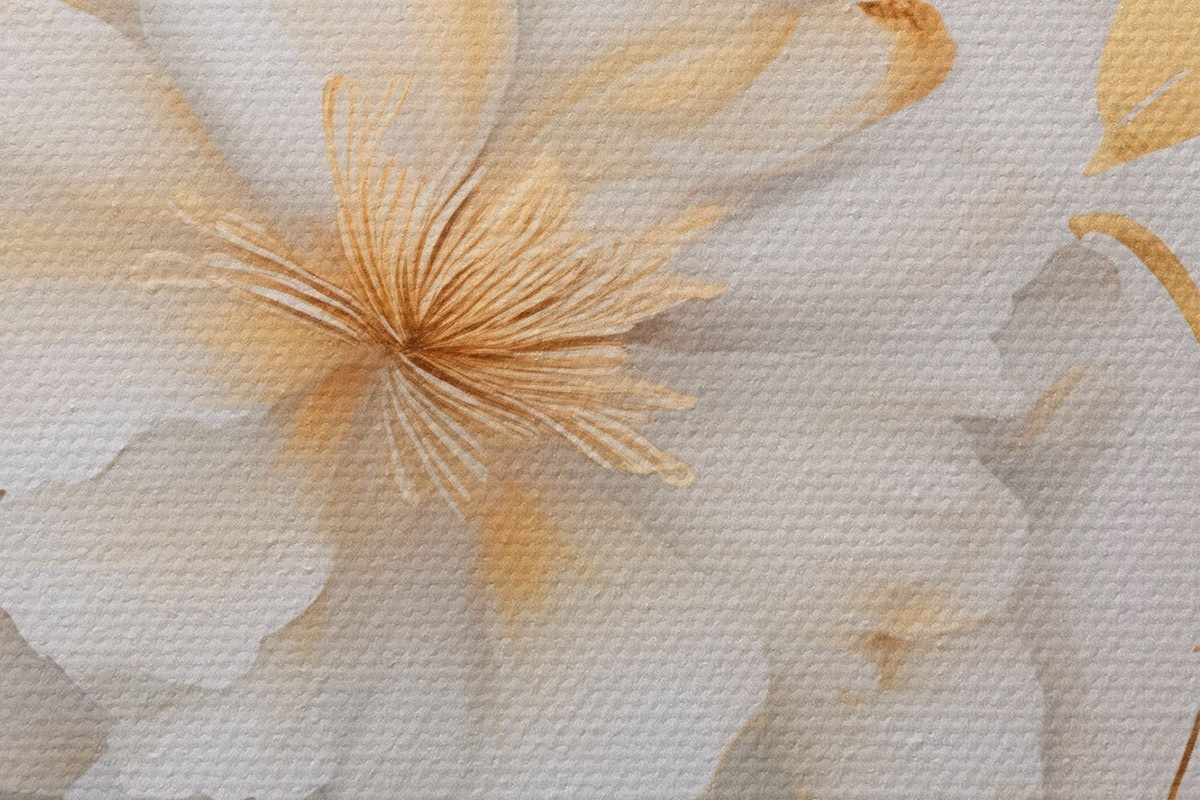 Pilt Valged lilled kollaste detailidega, õielehed peene varjundiga, hele taust peene marmoriefektiga Nr r46292