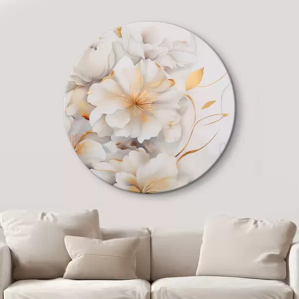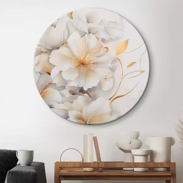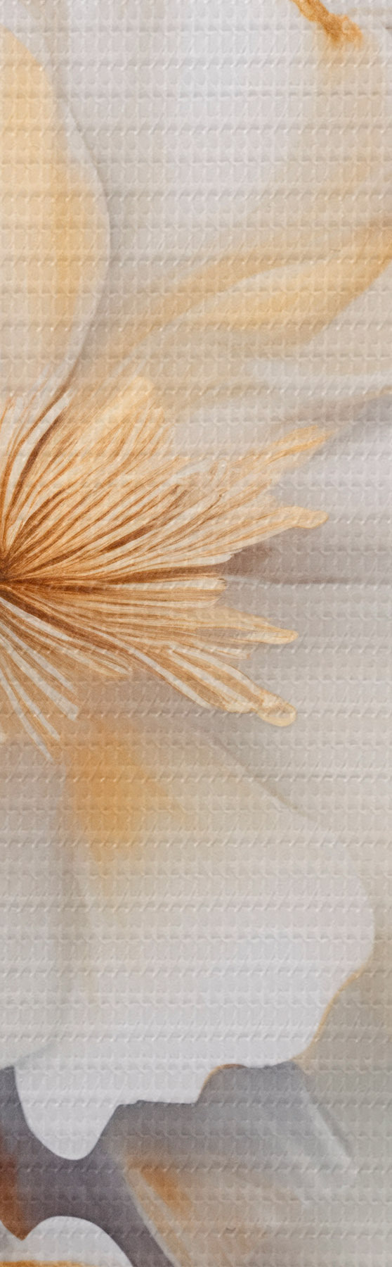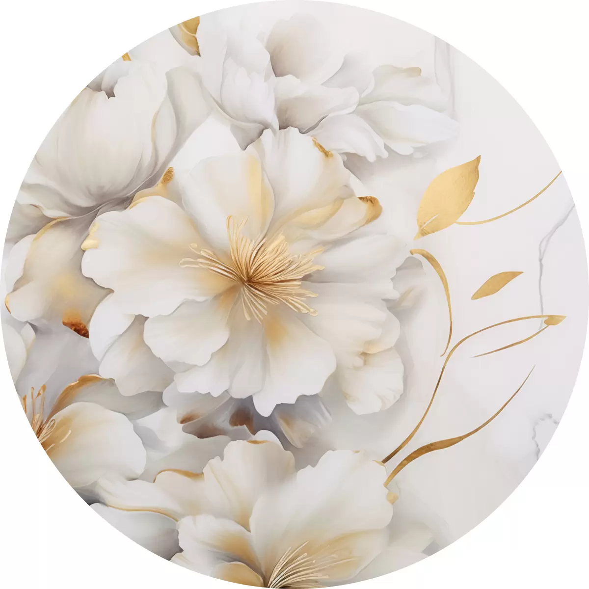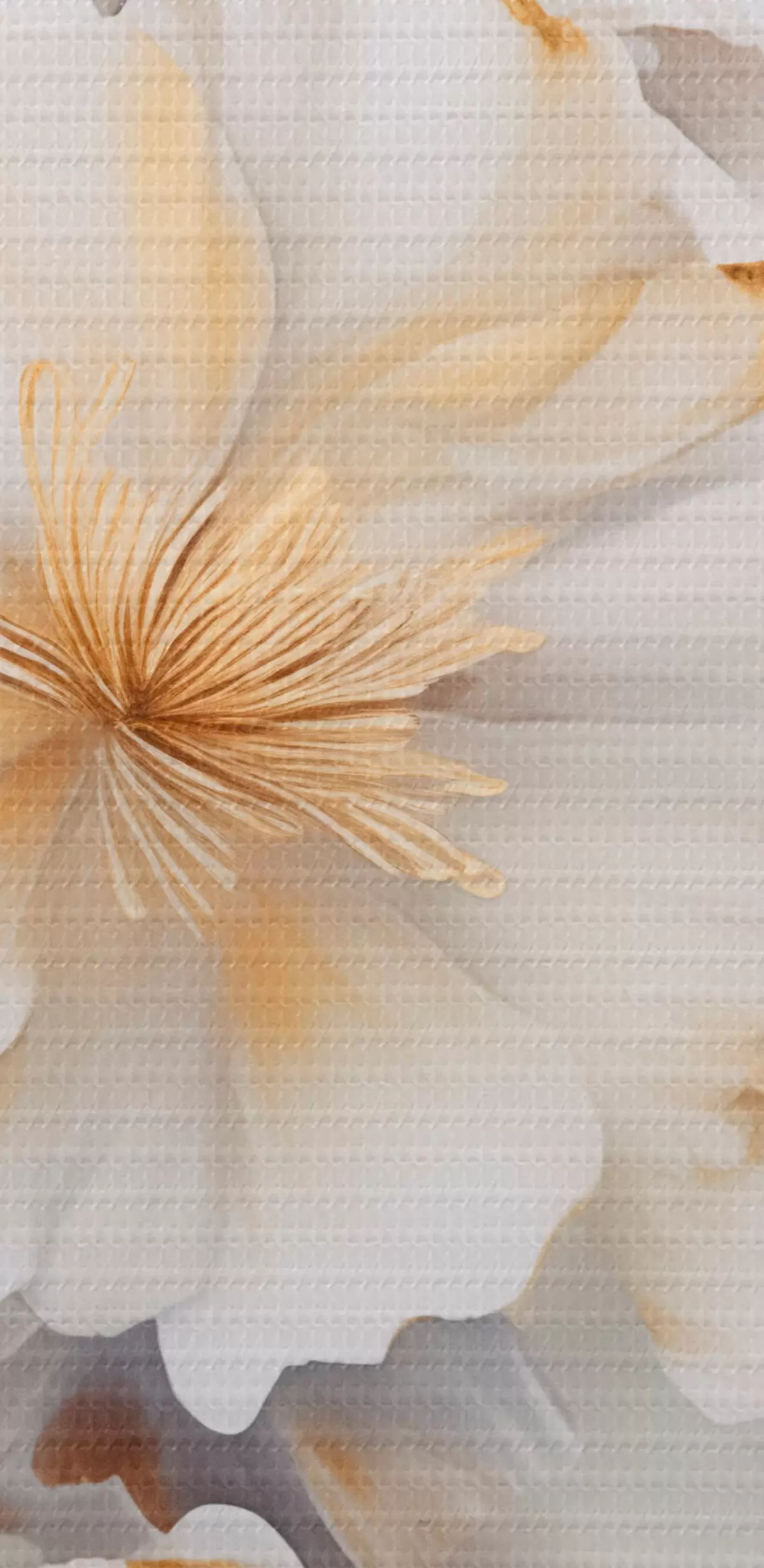 Pilt Valged lilled kollaste detailidega, õielehed peene varjundiga, hele taust peene marmoriefektiga Nr r46292