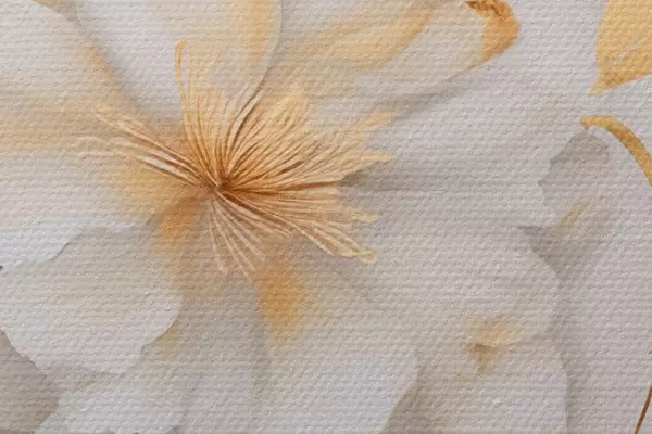 Pilt Valged lilled kollaste detailidega, õielehed peene varjundiga, hele taust peene marmoriefektiga Nr r46292
