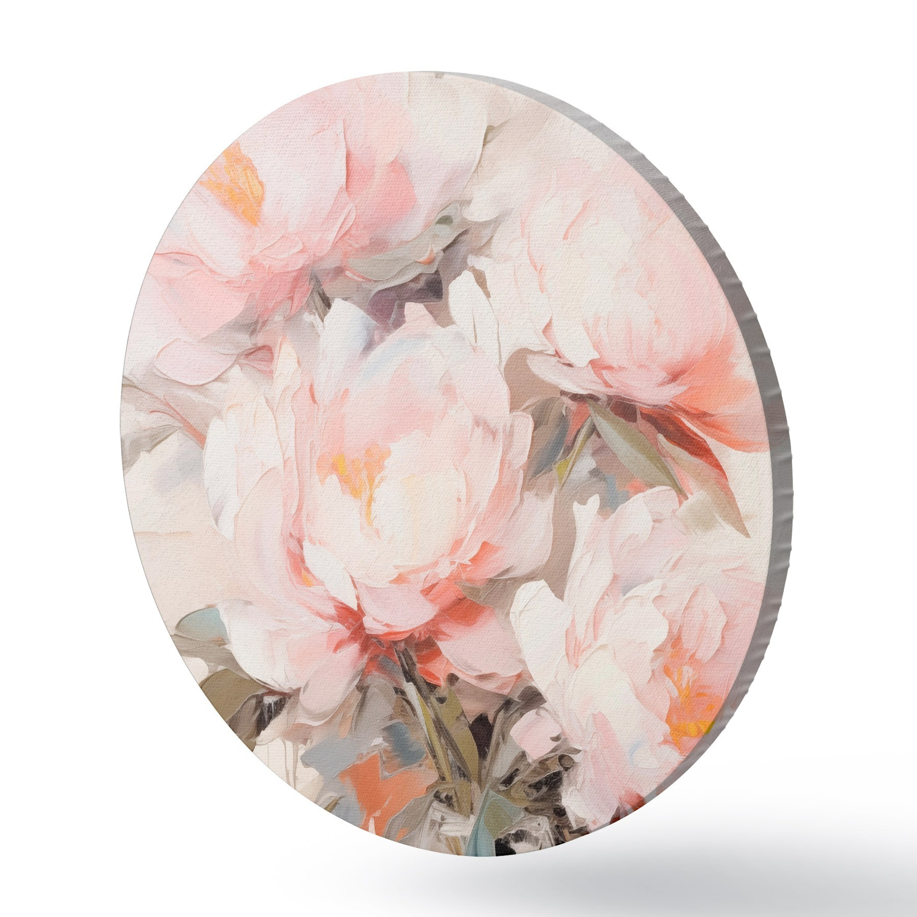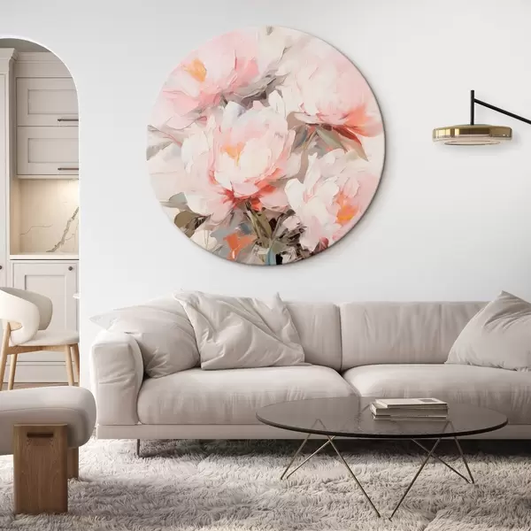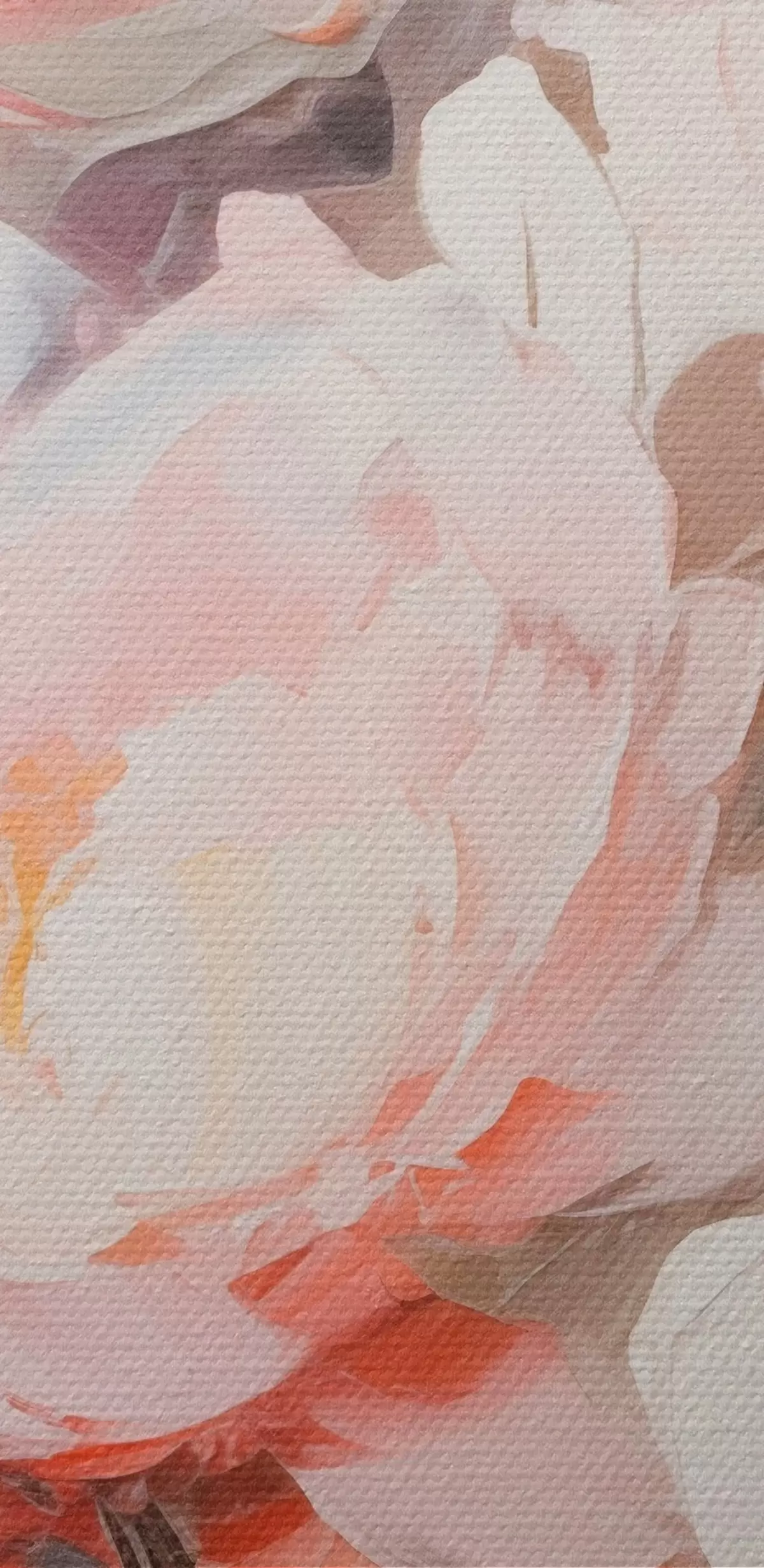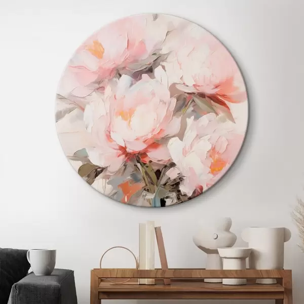 Pilt Roosa ja valge pioonide kimp klaasvaasis, pehmed pintslitõmbed, pastelltoonid, neutraalne taust Nr r46295