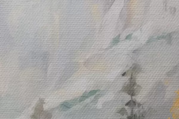 Selle lõuendi peenike niidipunus meenutab professionaalse kunstniku lõuendi pinda.