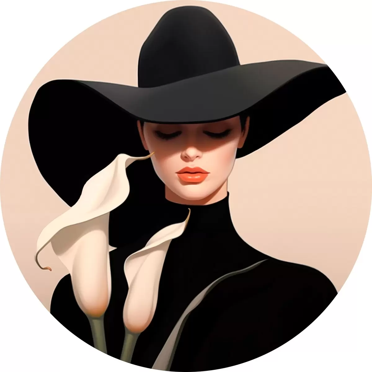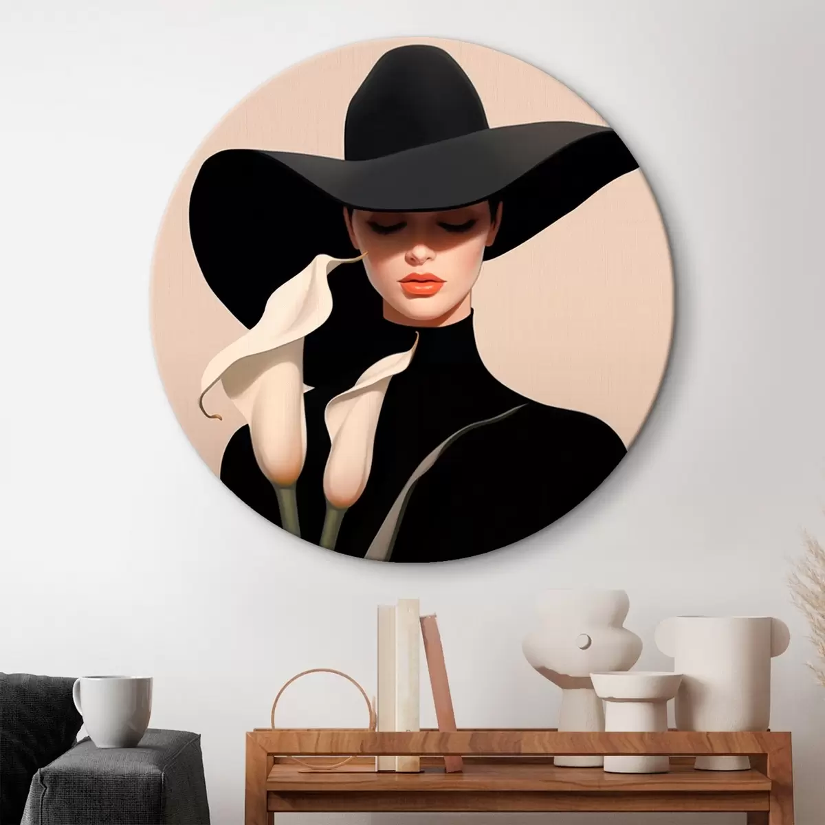 Ümmargused maalid Tüdruk kübaraga ja kaladega r46420