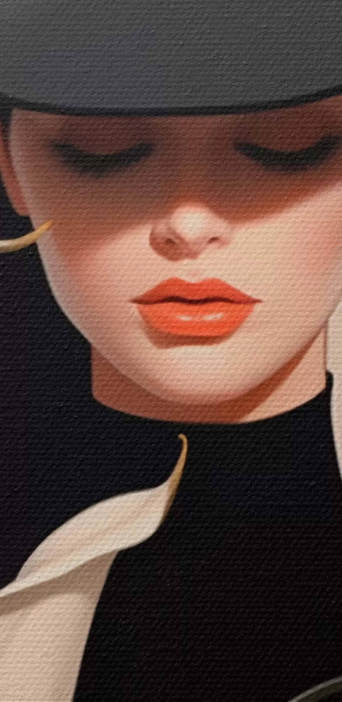 Selle lõuendi peenike niidipunus meenutab professionaalse kunstniku lõuendi pinda.