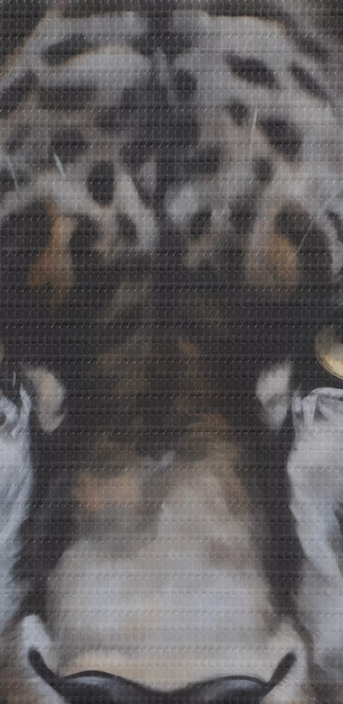 Selle lõuendi peenike niidipunus meenutab professionaalse kunstniku lõuendi pinda.