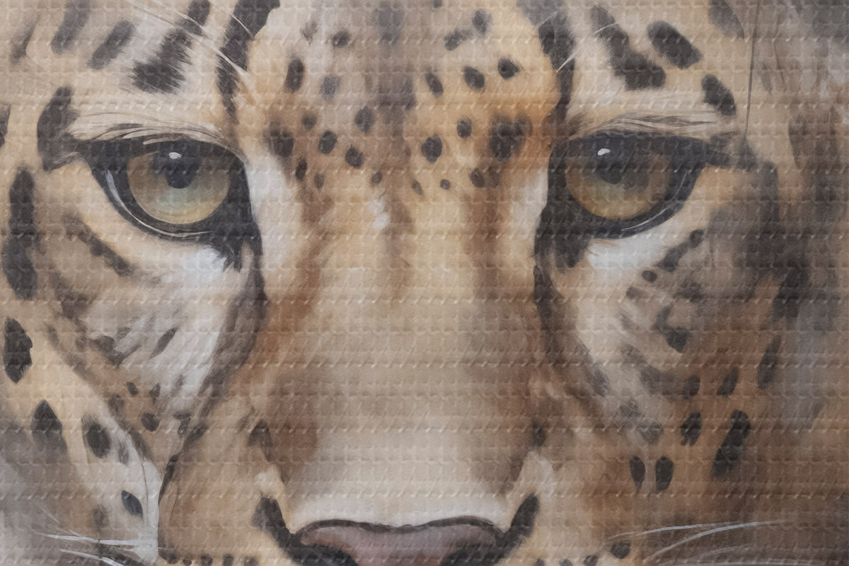 Selle lõuendi peenike niidipunus meenutab professionaalse kunstniku lõuendi pinda.