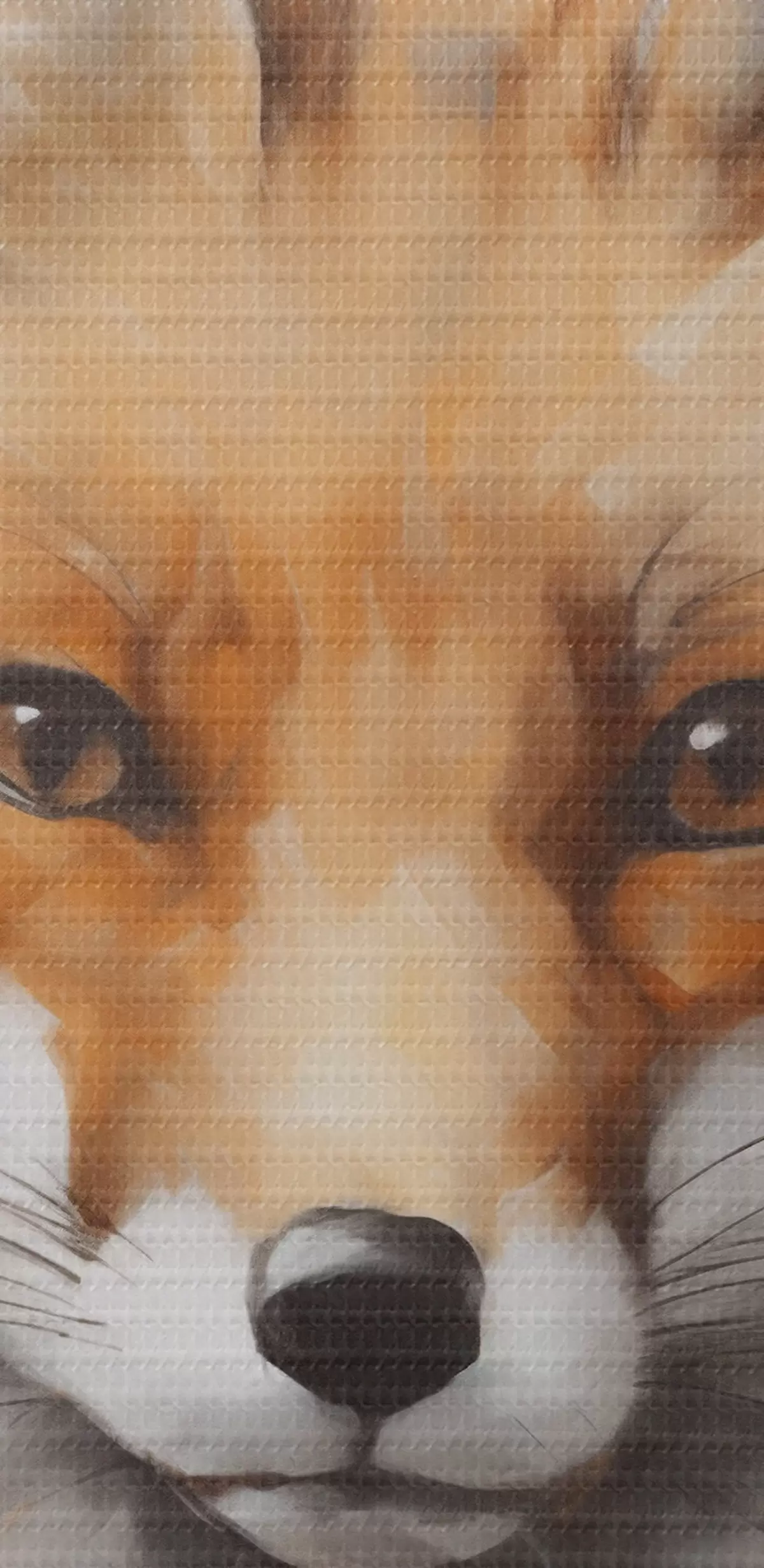 Selle lõuendi peenike niidipunus meenutab professionaalse kunstniku lõuendi pinda.