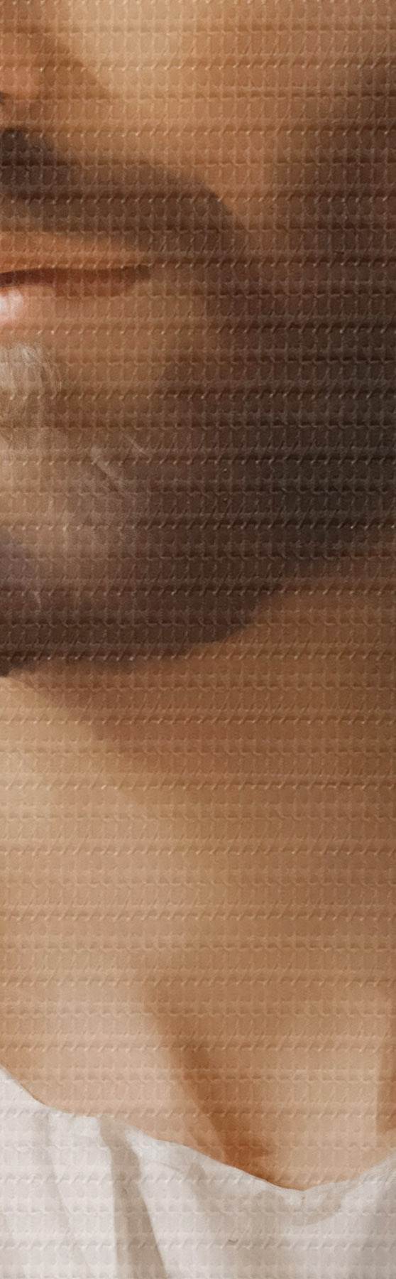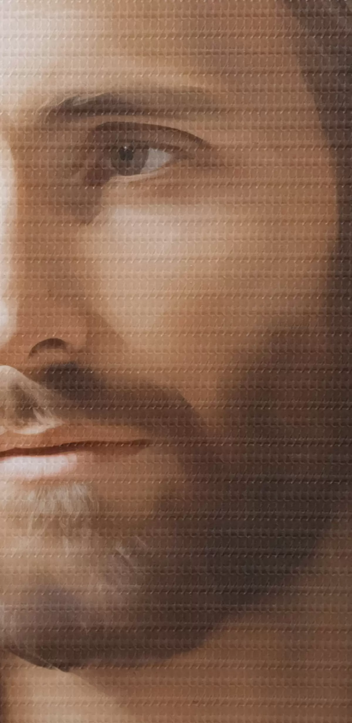 Selle lõuendi peenike niidipunus meenutab professionaalse kunstniku lõuendi pinda.
