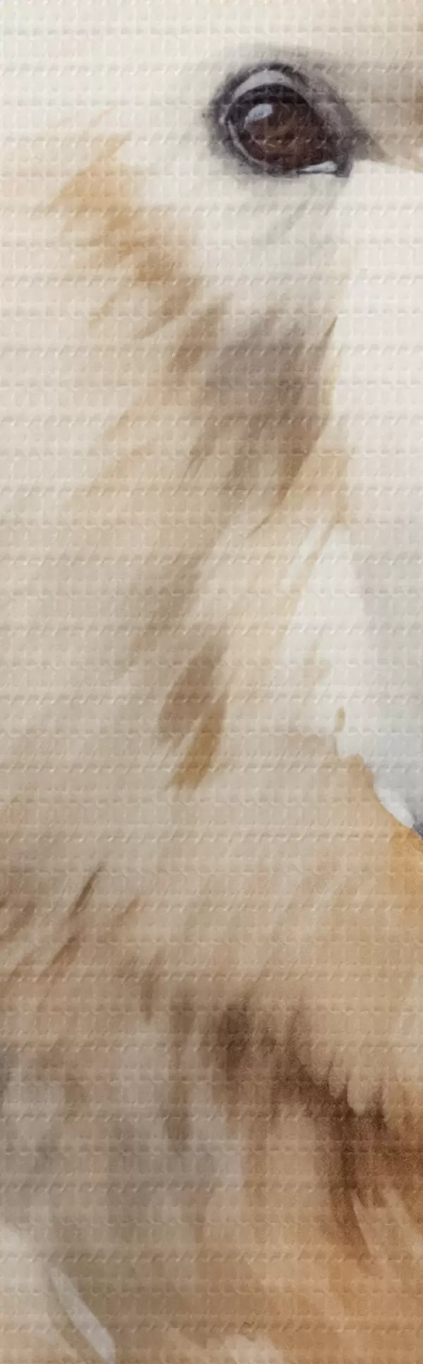 Selle lõuendi peenike niidipunus meenutab professionaalse kunstniku lõuendi pinda.