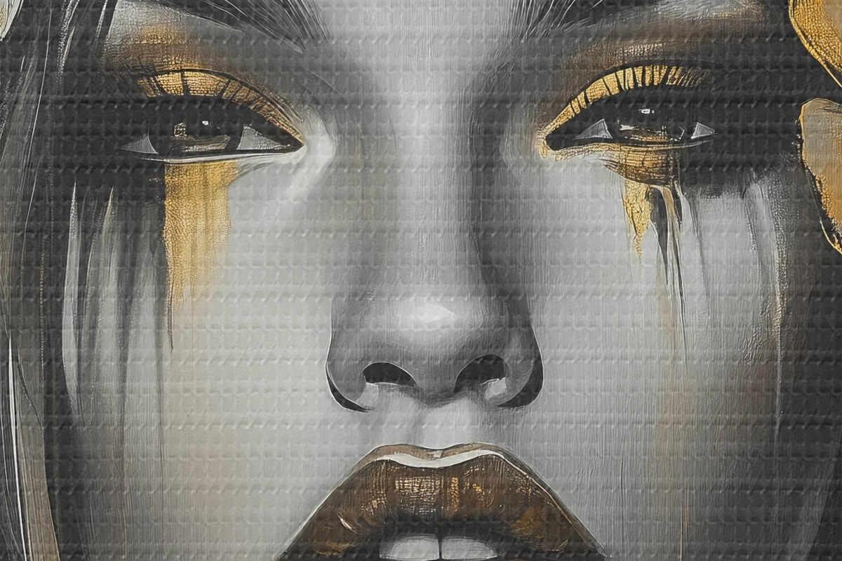 Selle lõuendi peenike niidipunus meenutab professionaalse kunstniku lõuendi pinda.