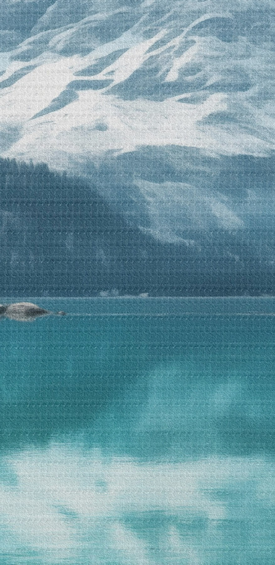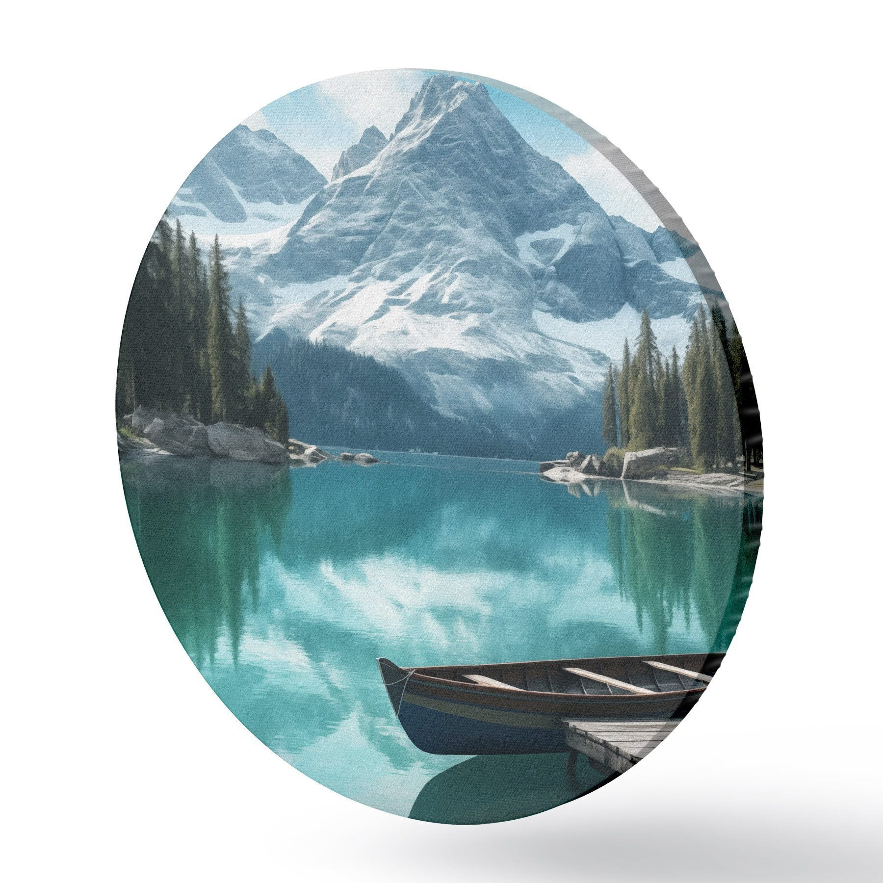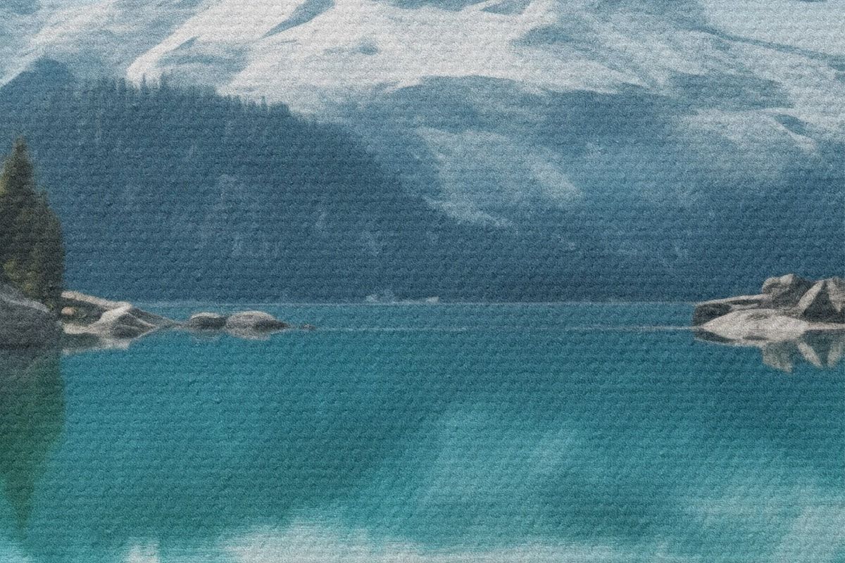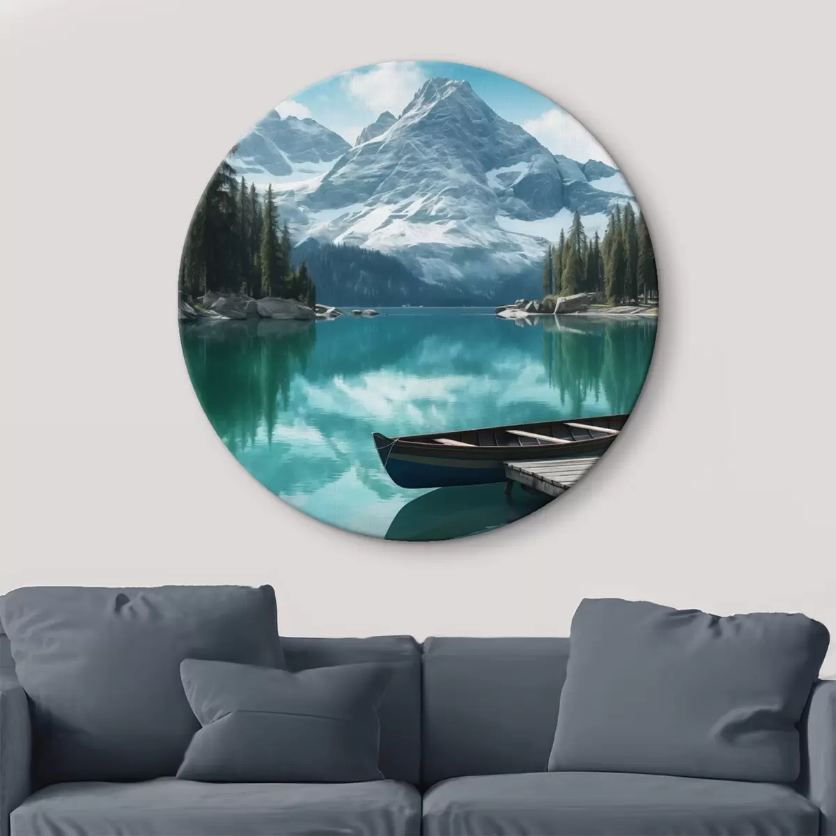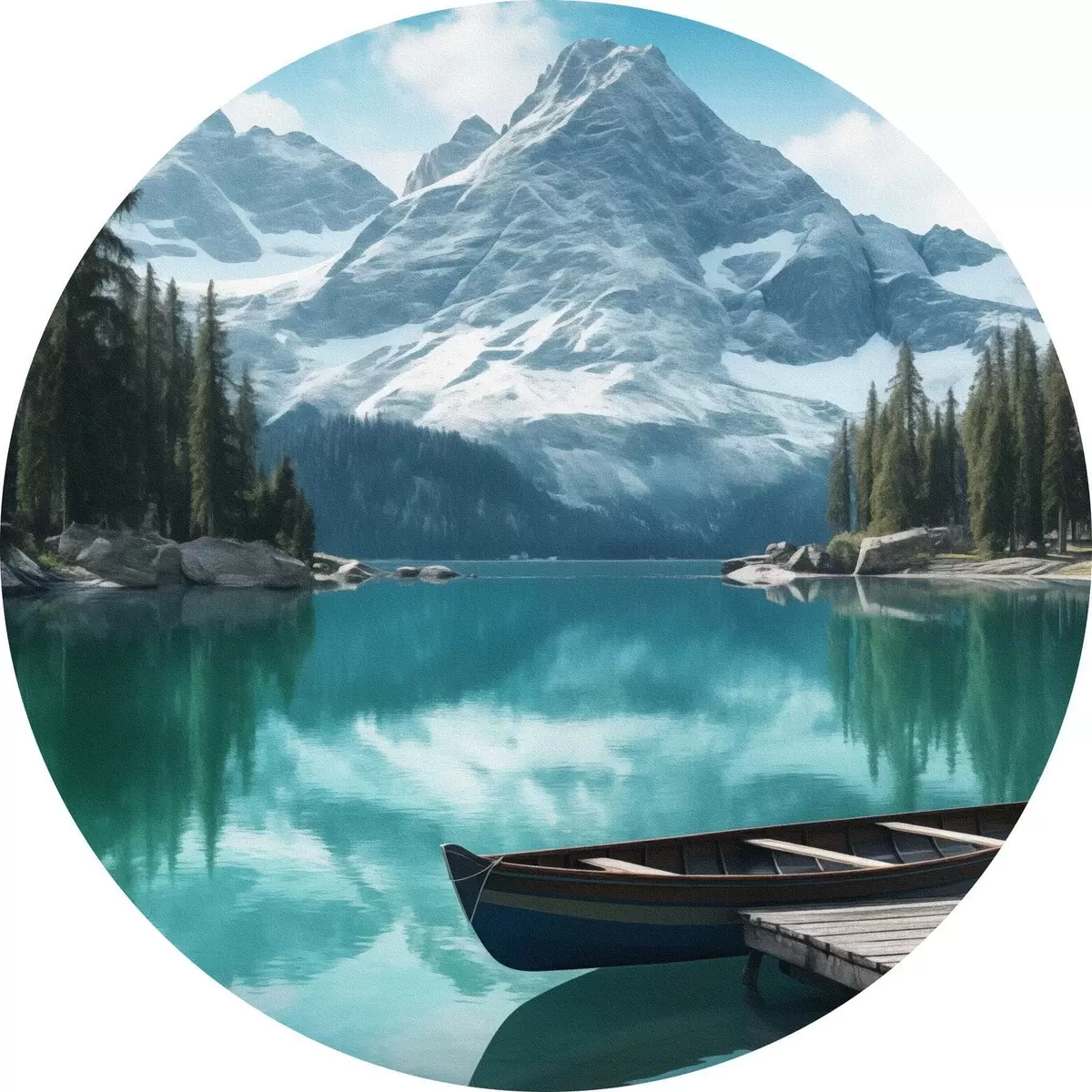 Pilt Alpi järv kanuuga ja lumiste mäetippudega Nr r46481