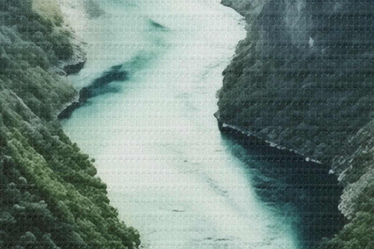 Pilt Kitsas kuristik, millest ülevalt voolab türkiissinine vesi Nr r46522