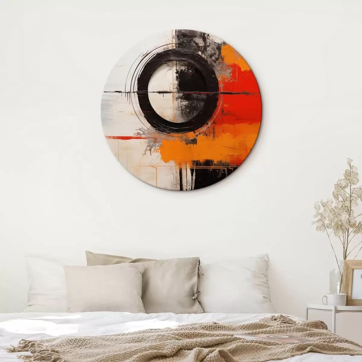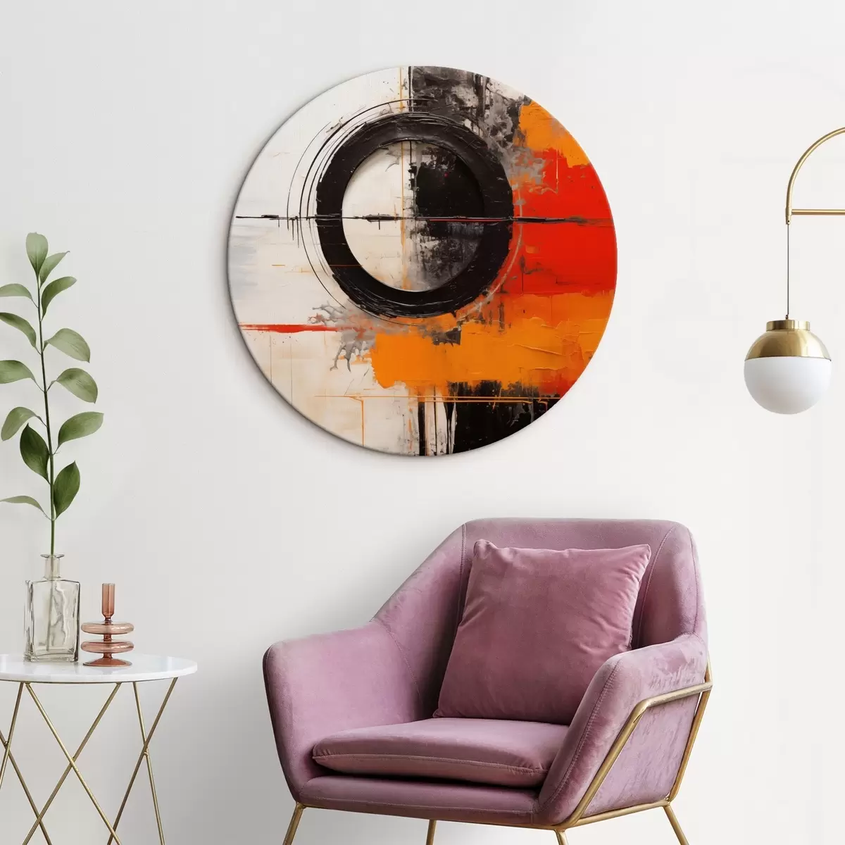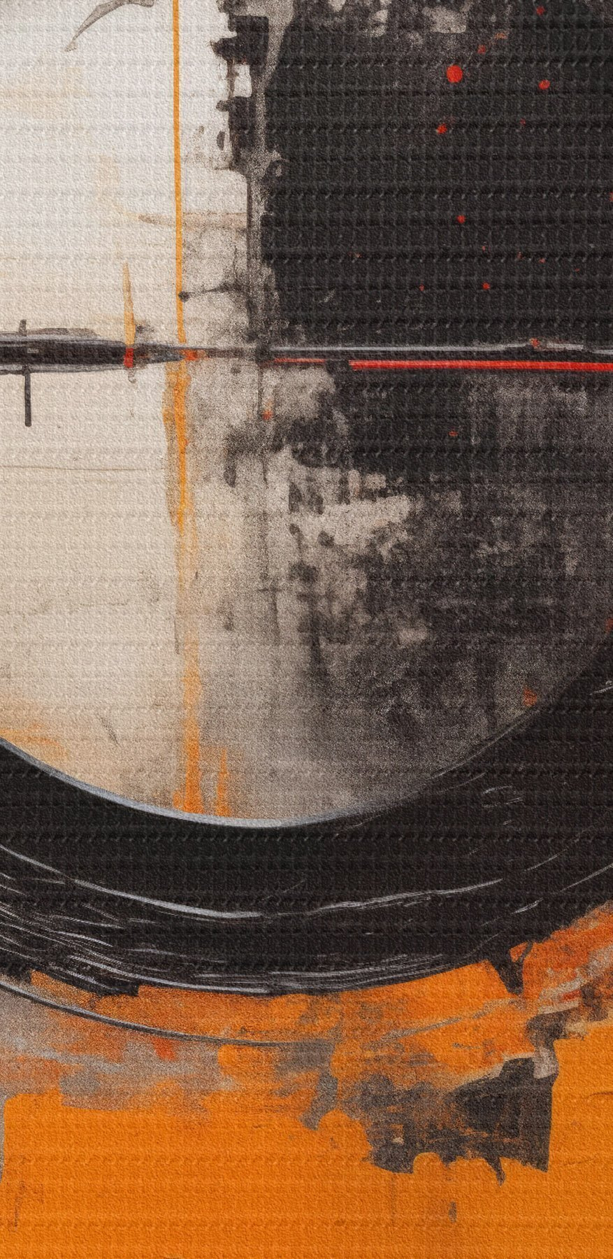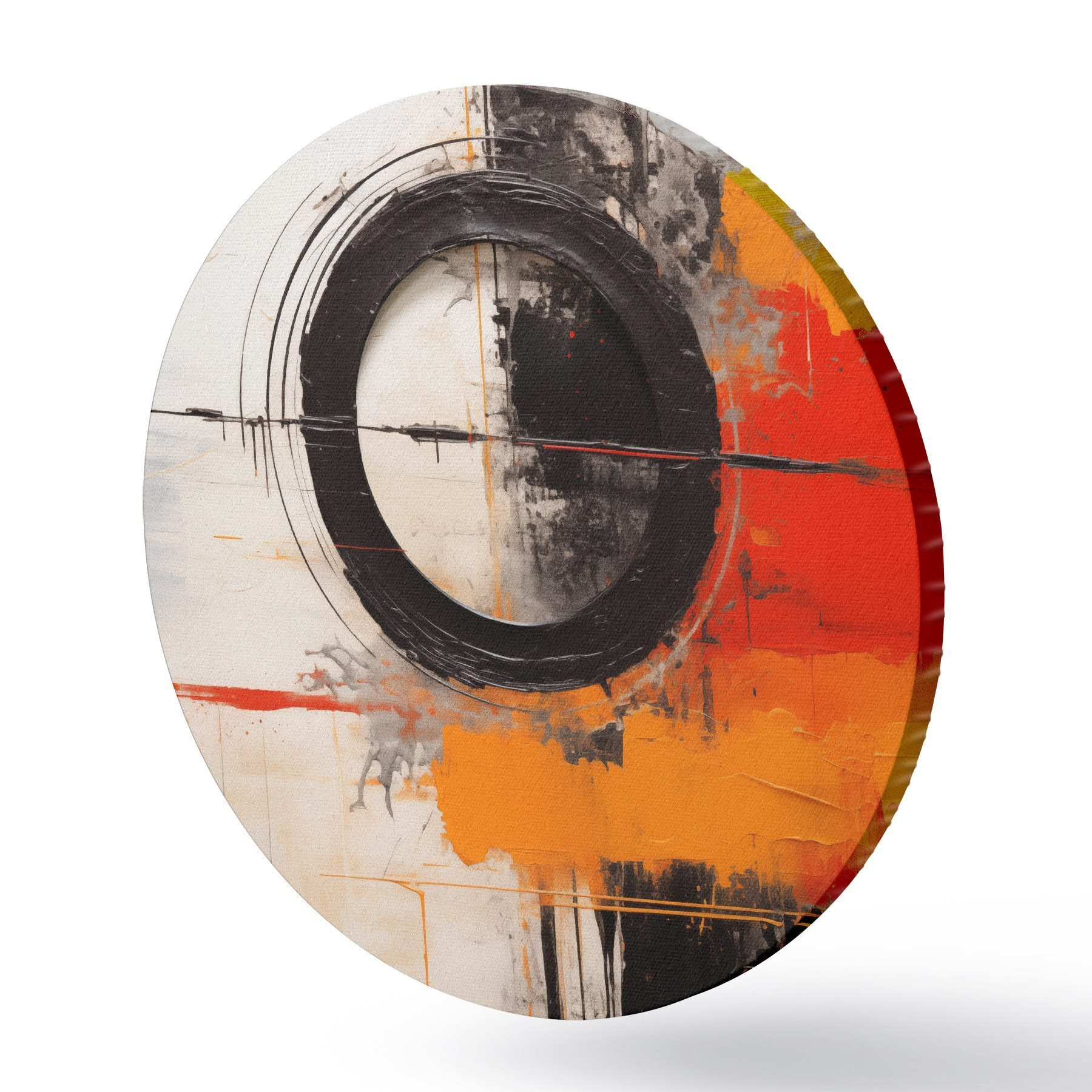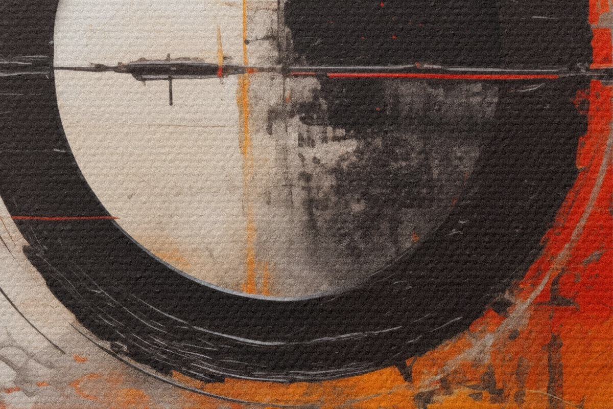 Pilt Must ring valgel taustal, oranžid jooned ja pritsmed Nr r46549