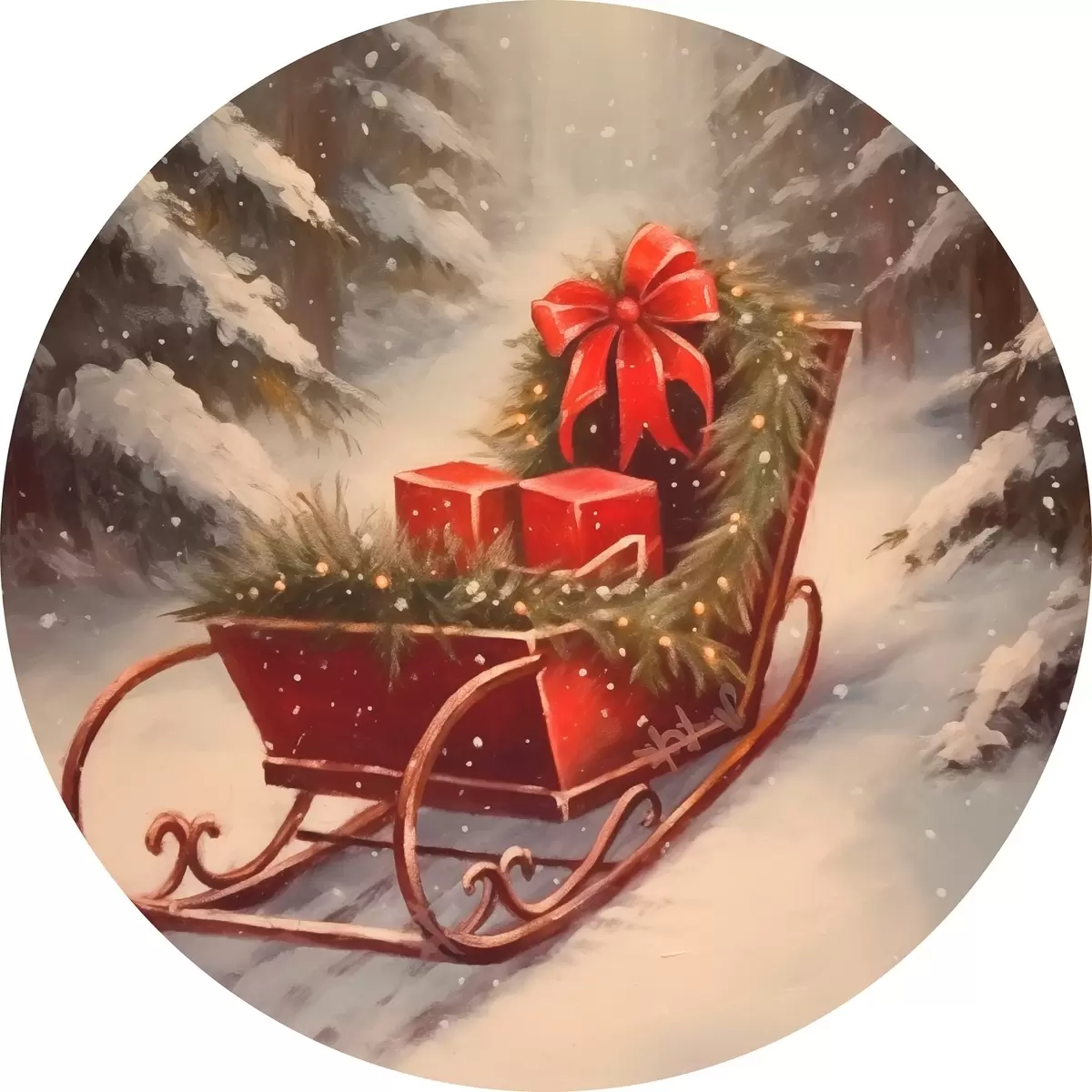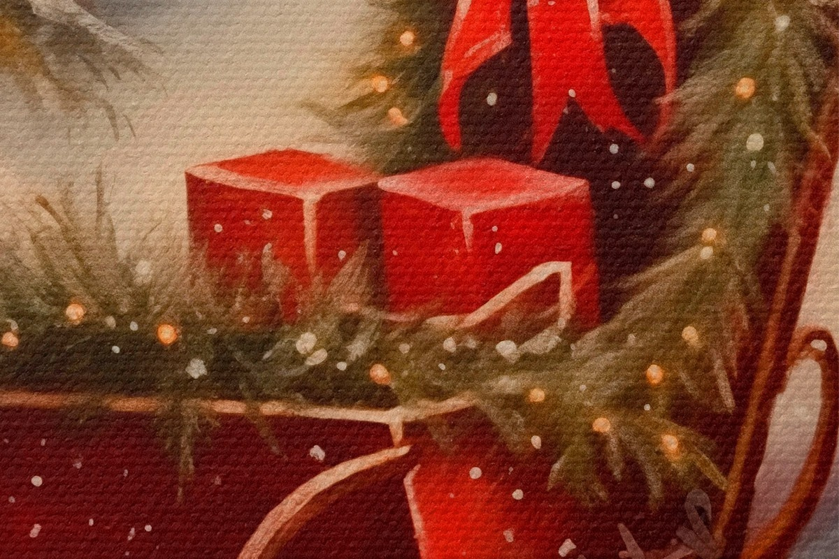 Pilt Jõulud kelk kingitustega lumises metsas Nr r46630