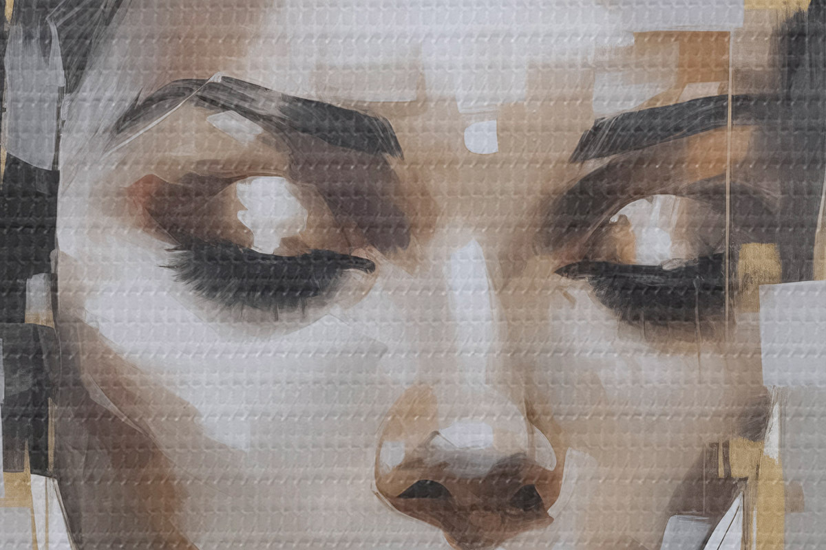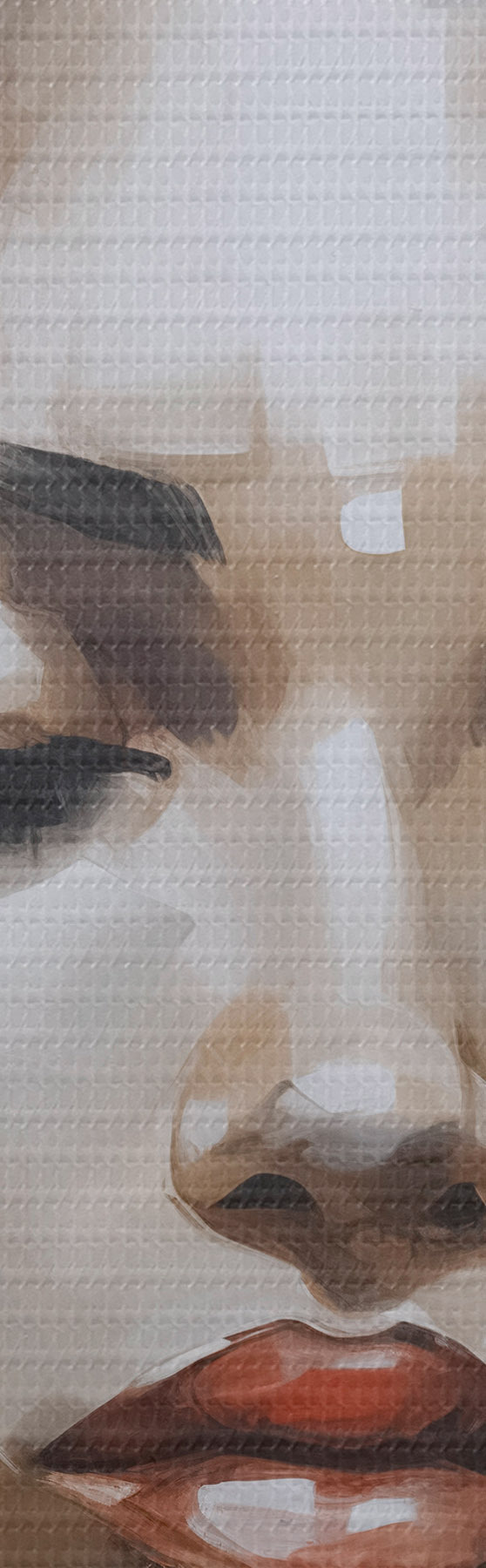 Selle lõuendi peenike niidipunus meenutab professionaalse kunstniku lõuendi pinda.