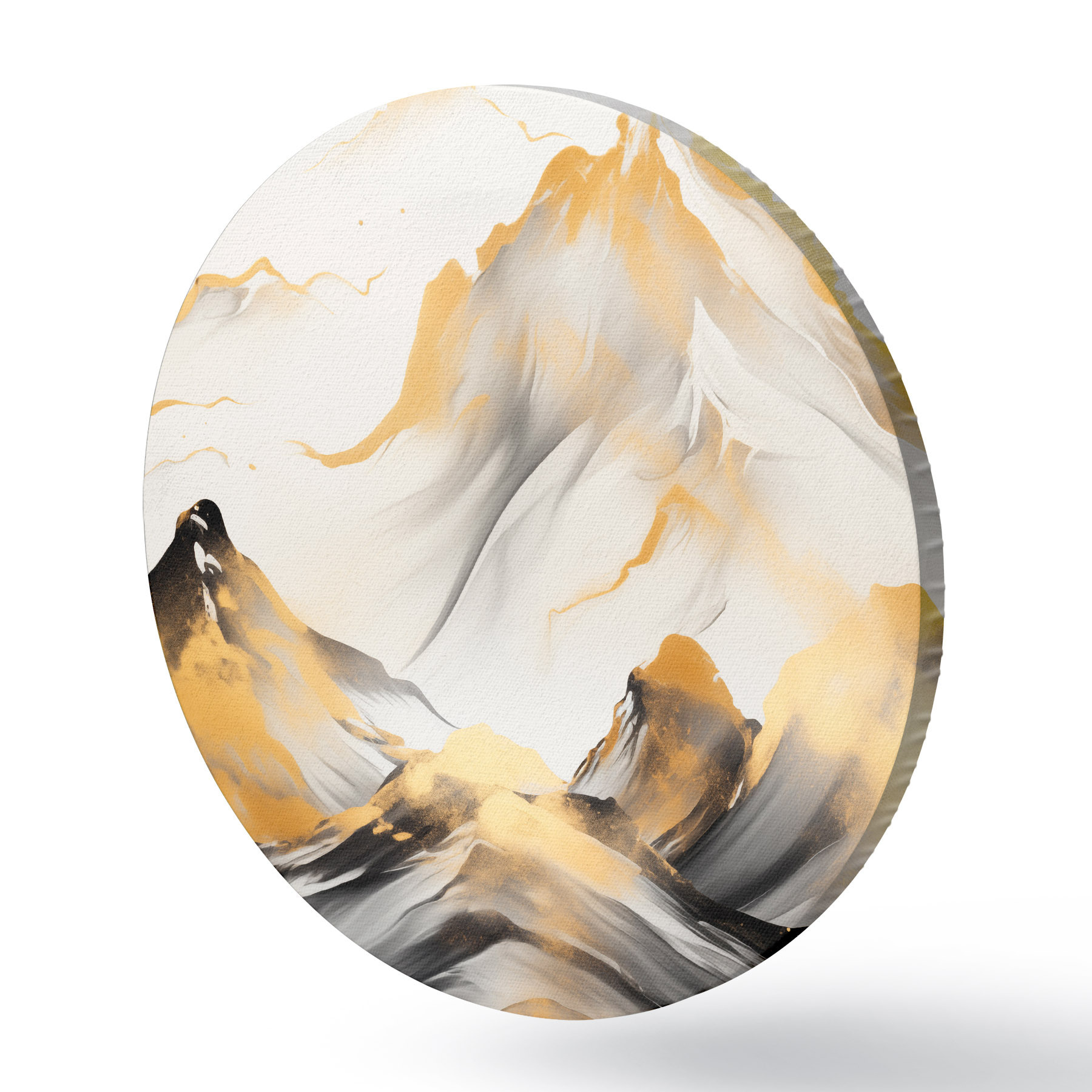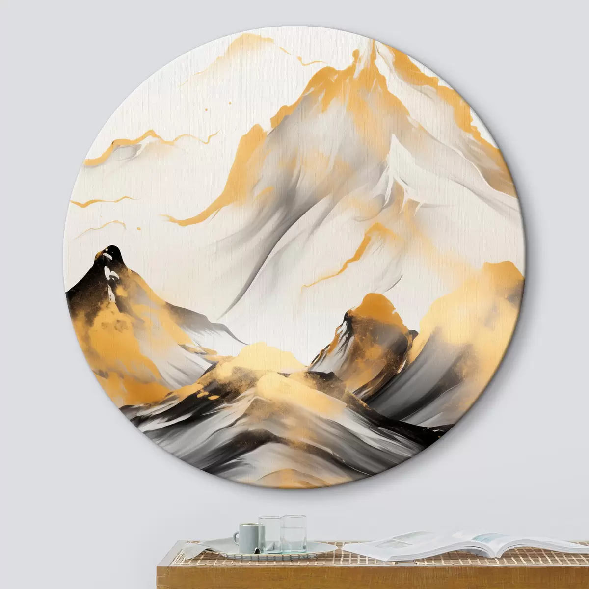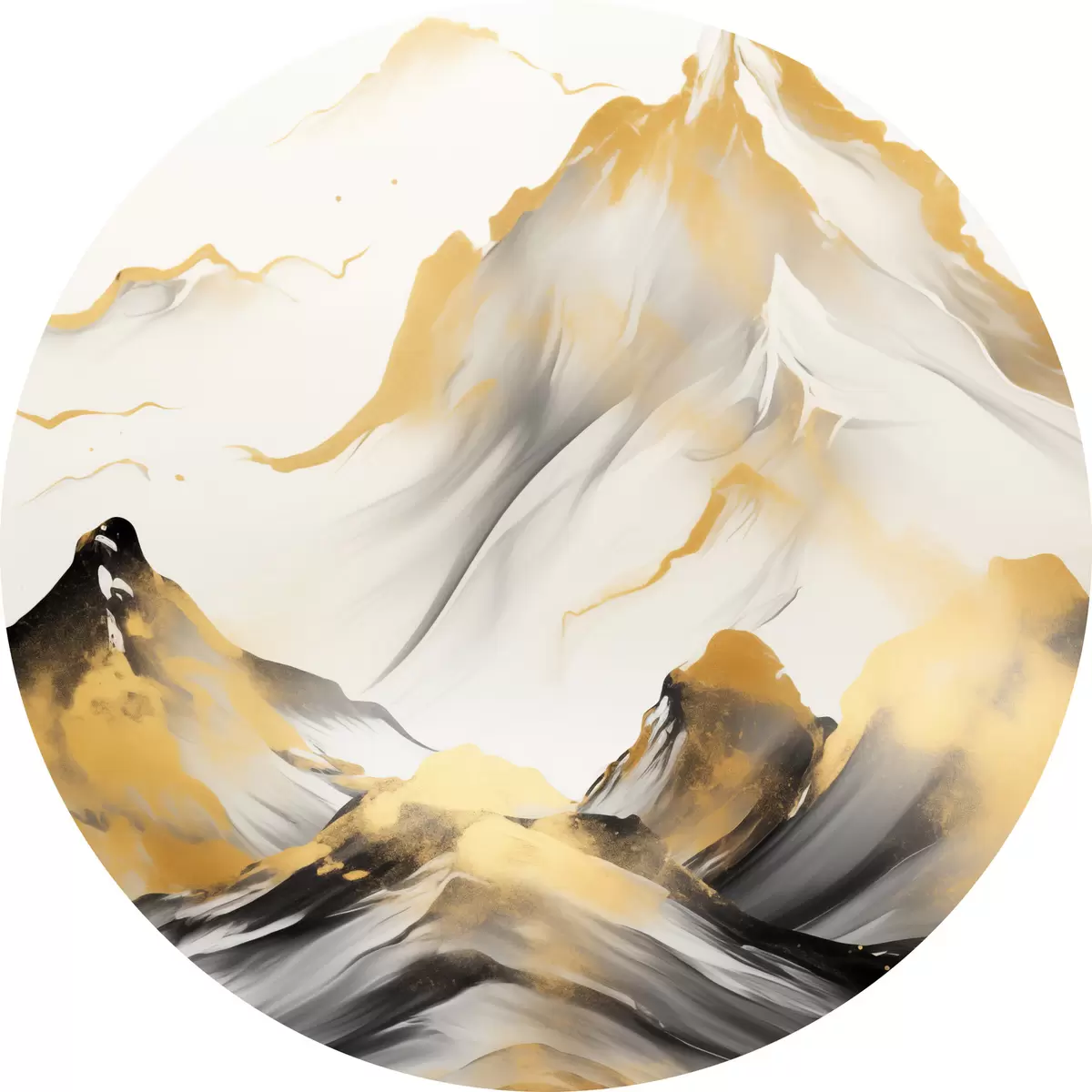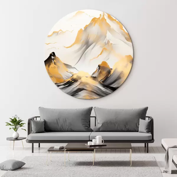 Pilt Tekstuuriga kollased ja mustad mäed lumiste tippudega, tušimaalistiilis, minimalistlik mäestik Nr r46683
