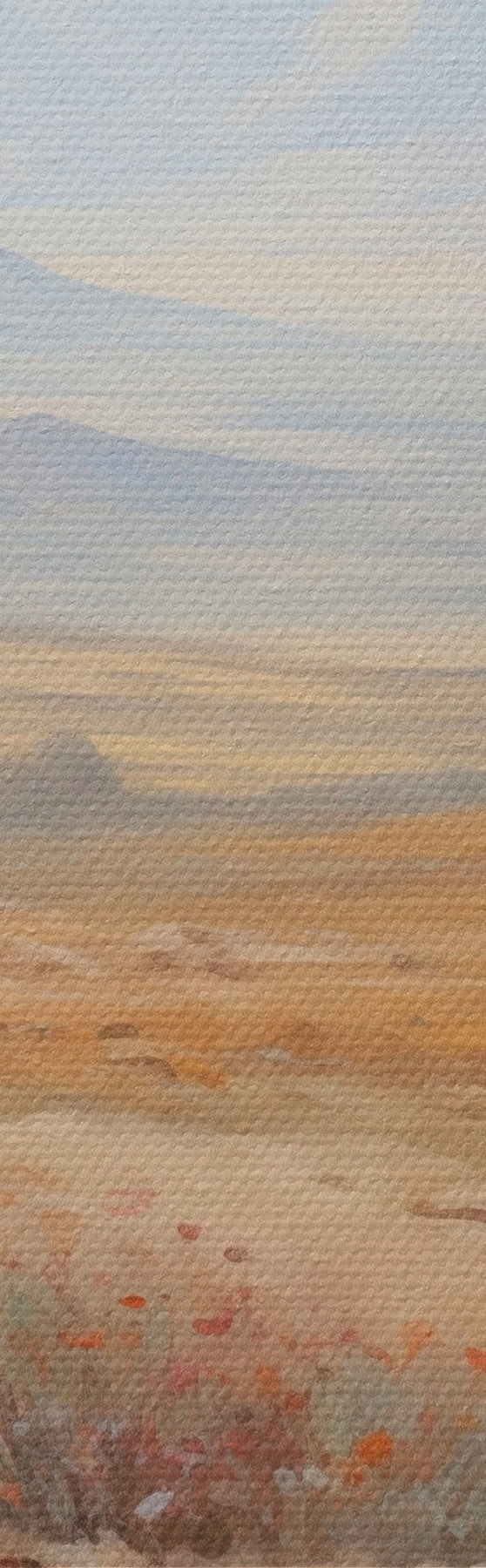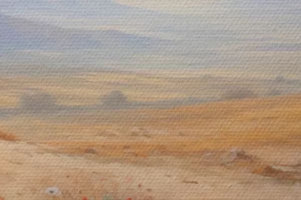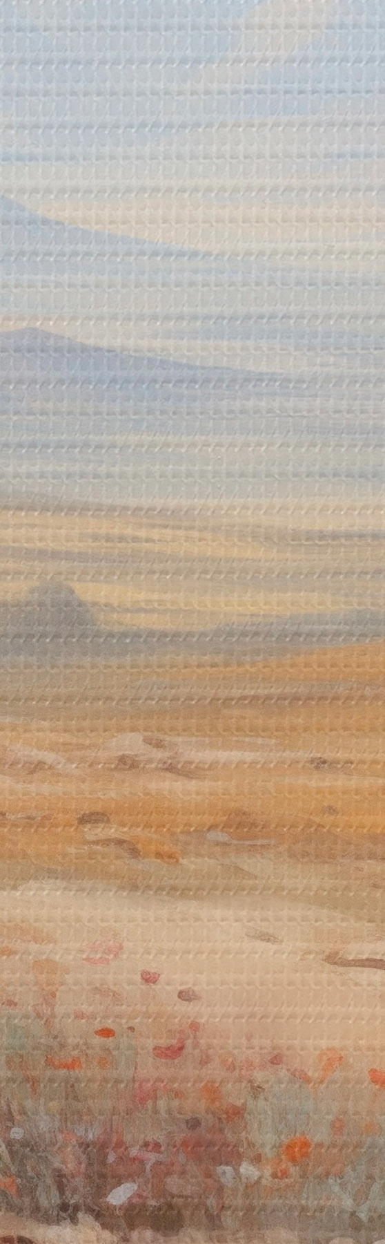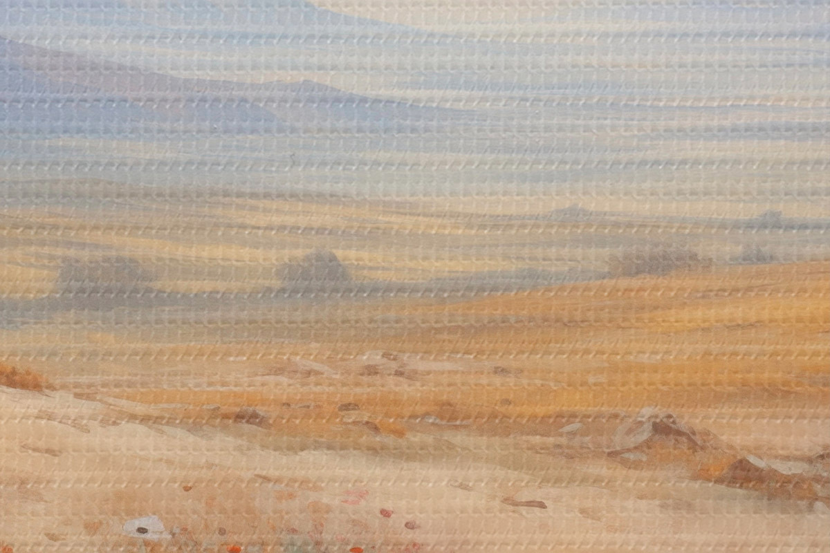 Selle lõuendi peenike niidipunus meenutab professionaalse kunstniku lõuendi pinda.