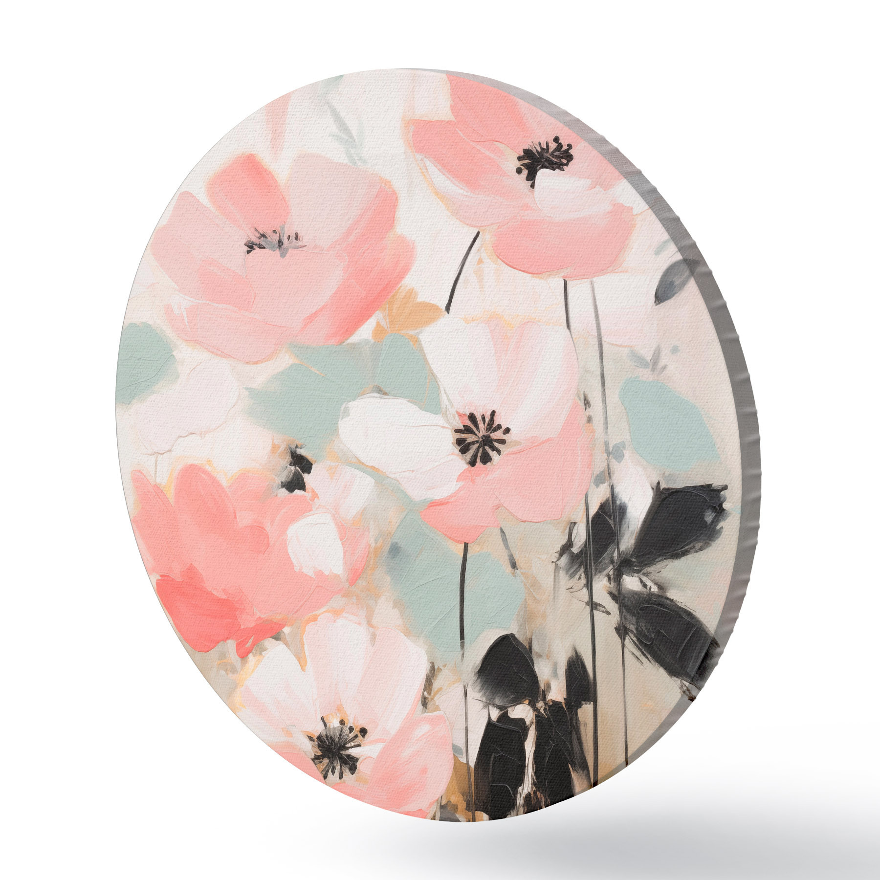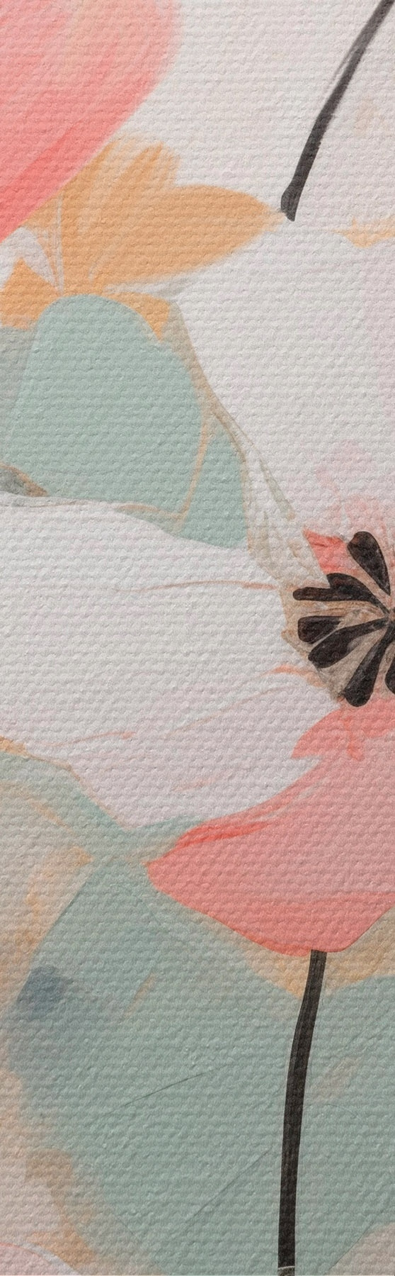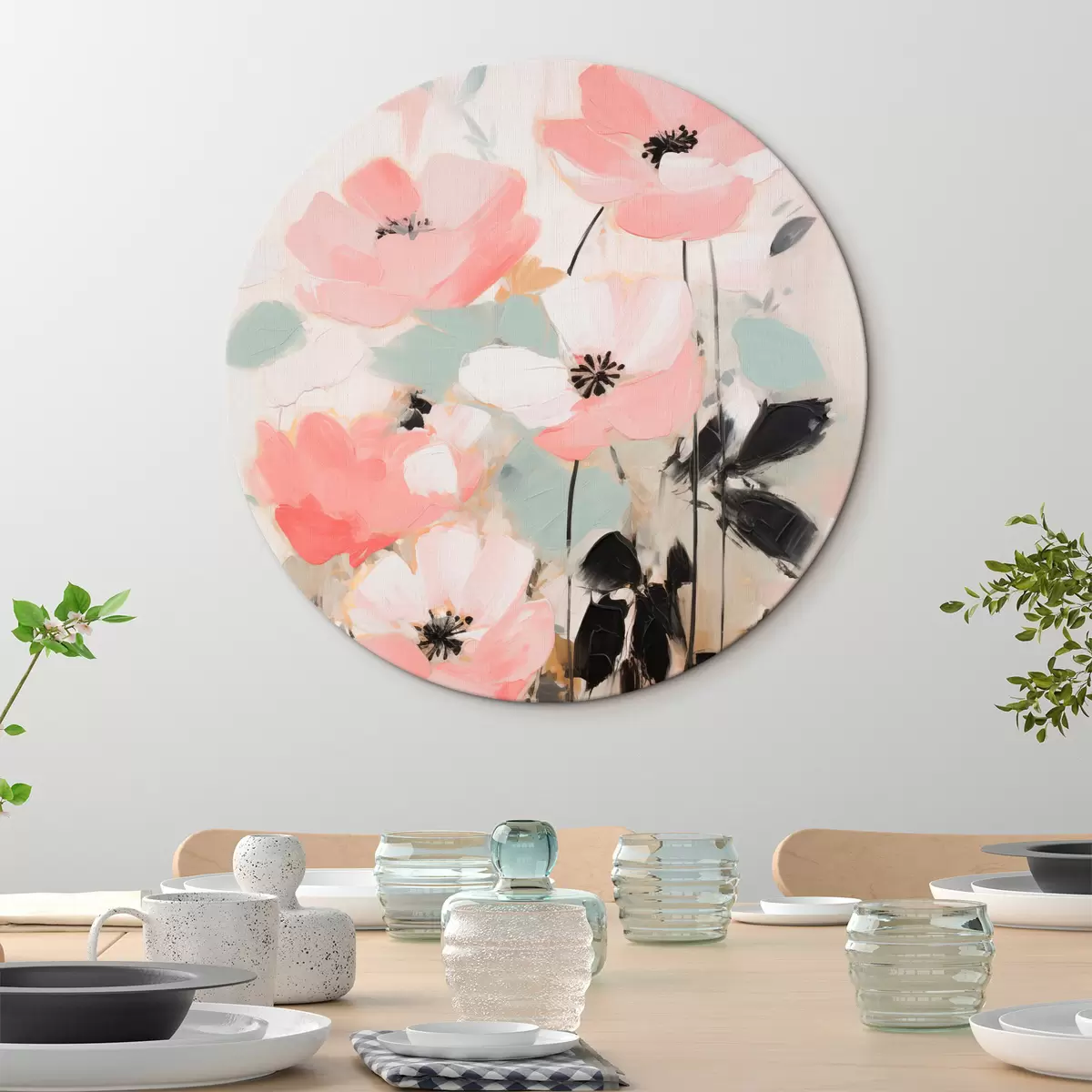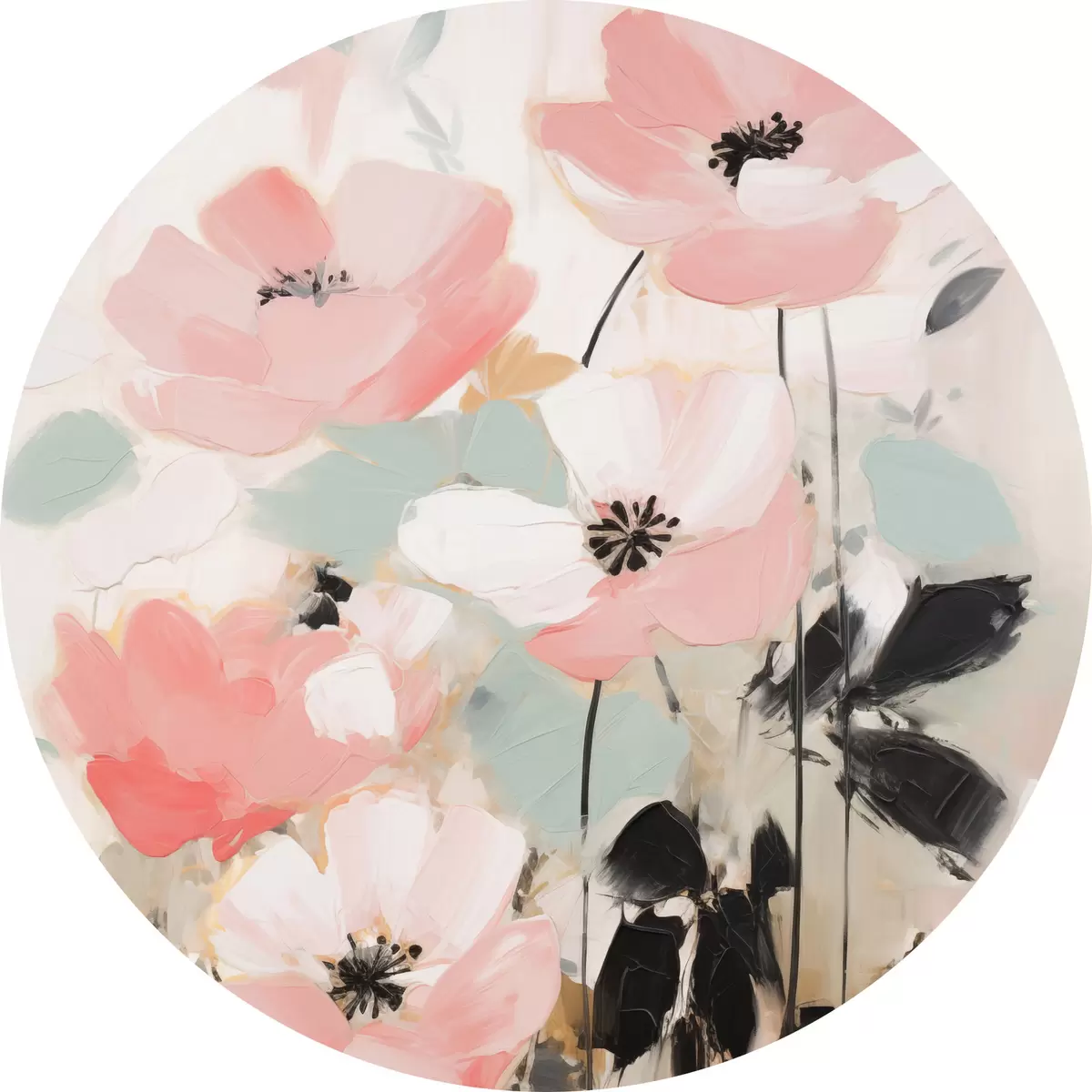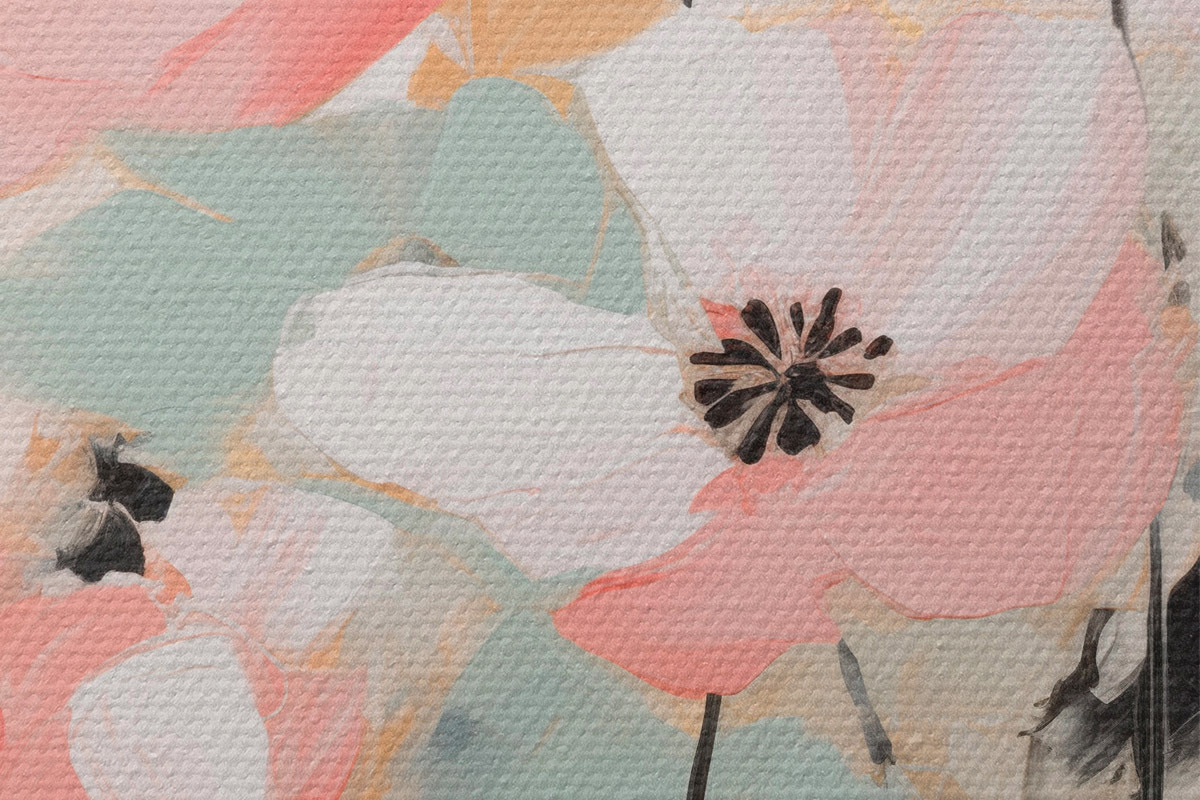 Pilt Roosad ja mustad lilled lehtedega, pehmed pastelltoonid, abstraktne lillekompositsioon, minimalistlik kunst Nr r46688