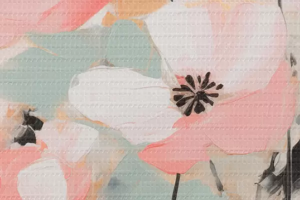 Pilt Roosad ja mustad lilled lehtedega, pehmed pastelltoonid, abstraktne lillekompositsioon, minimalistlik kunst Nr r46688