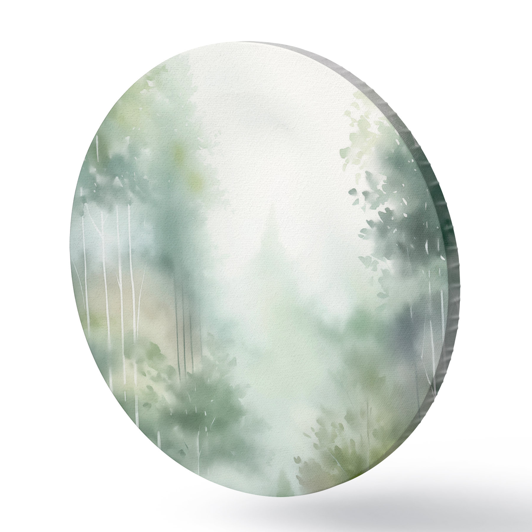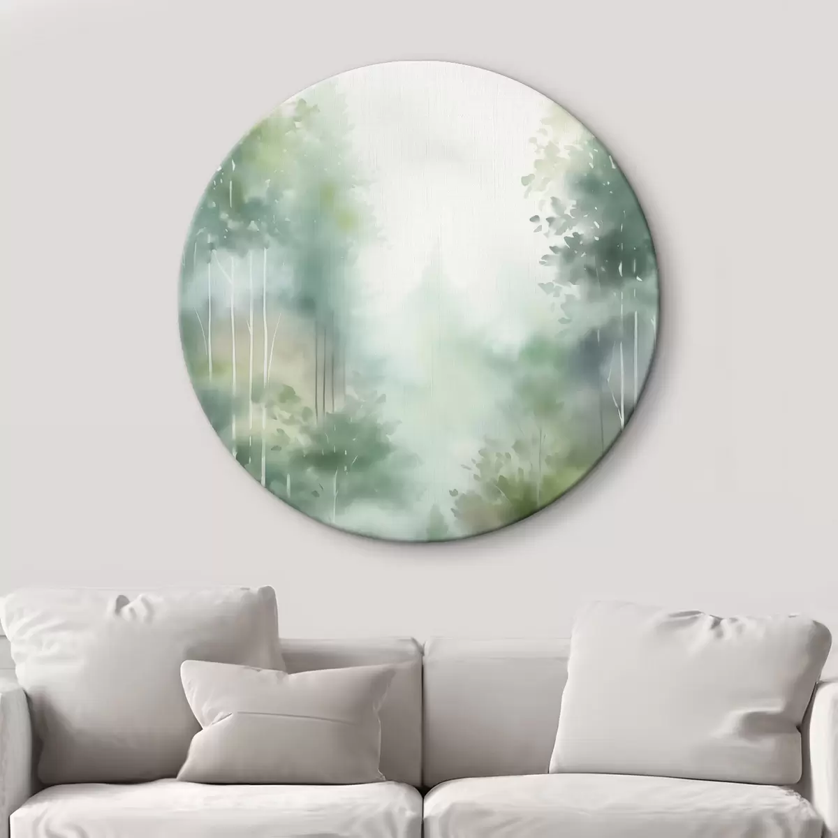 Pilt Akvarellmaal, mis kujutab abstraktset metsa kõrgetega puude ja rohelise lehestikuga, pehmed, summutatud värvid Nr r46689