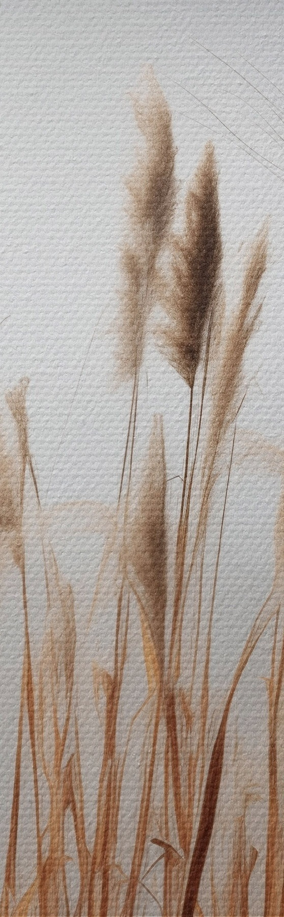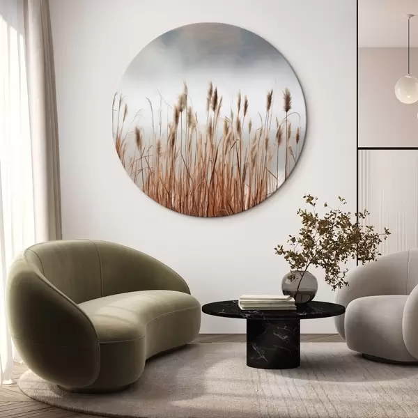 Pilt Veekogus kasvavad kõrged pillirood, vesi peegeldab pilliroogu, udune taust, pehme valgus, loodusvaade Nr r46696