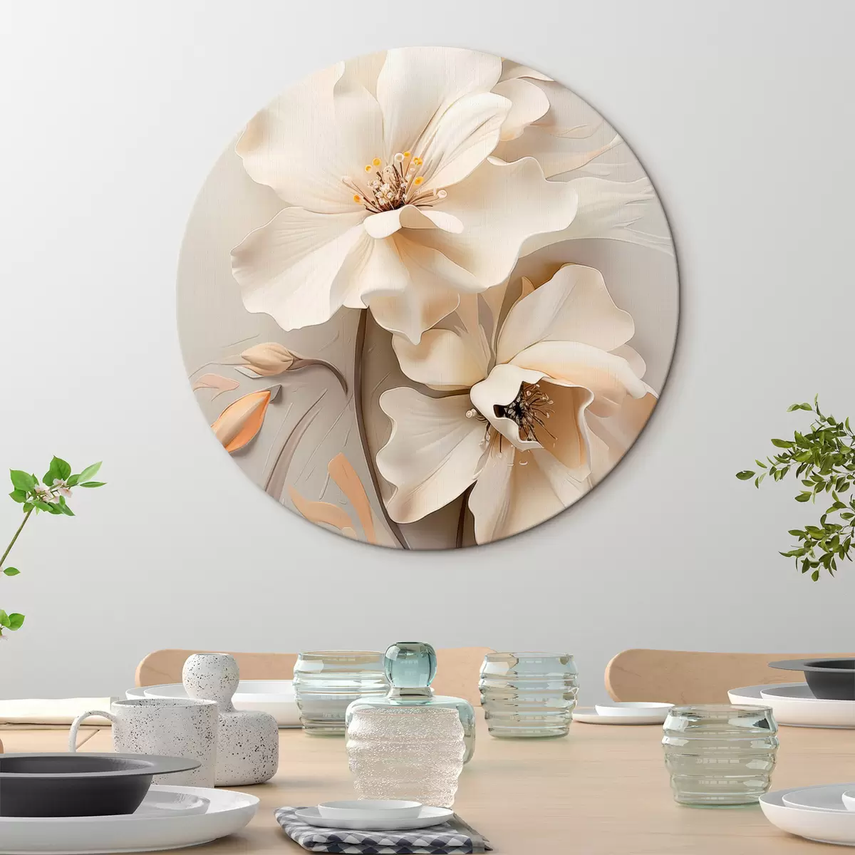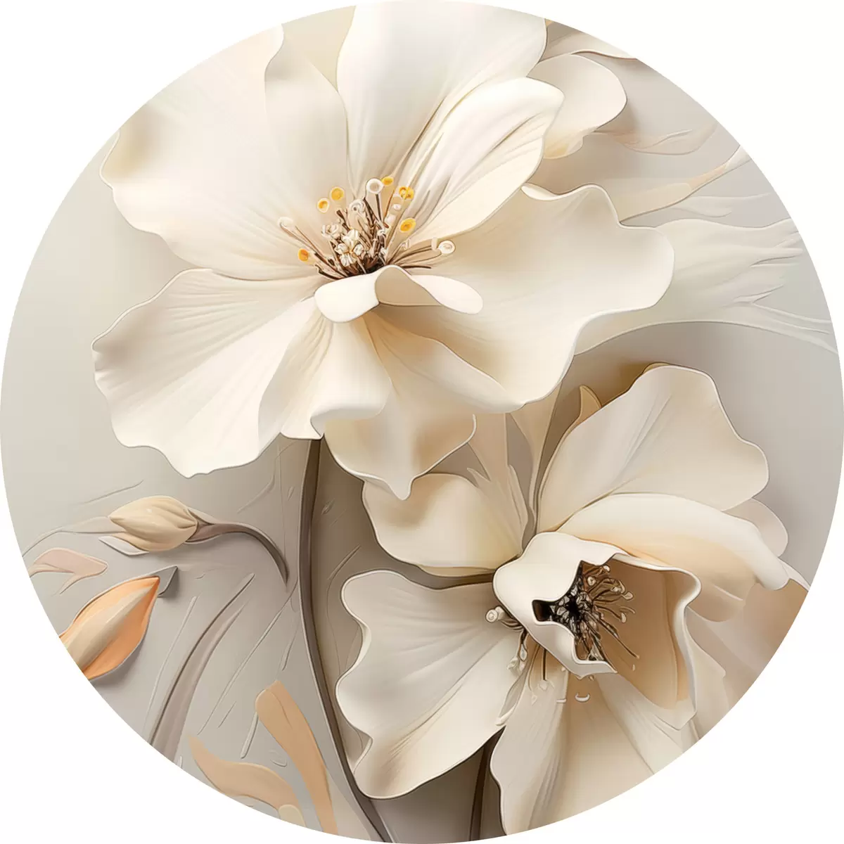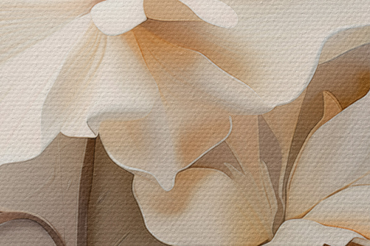 Pilt Valged lilled, õrnade varjudega kroonlehed, helebeež taust, elegantne kompositsioon, minimalistlik stiil Nr r46700